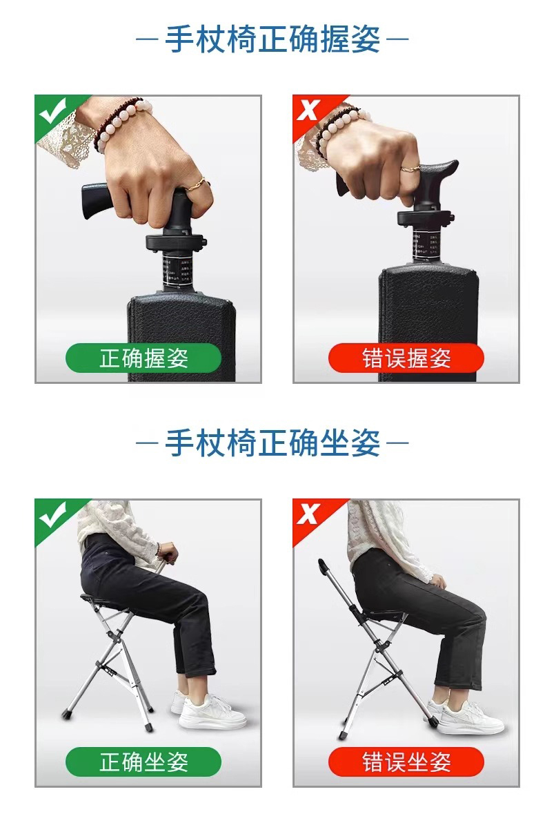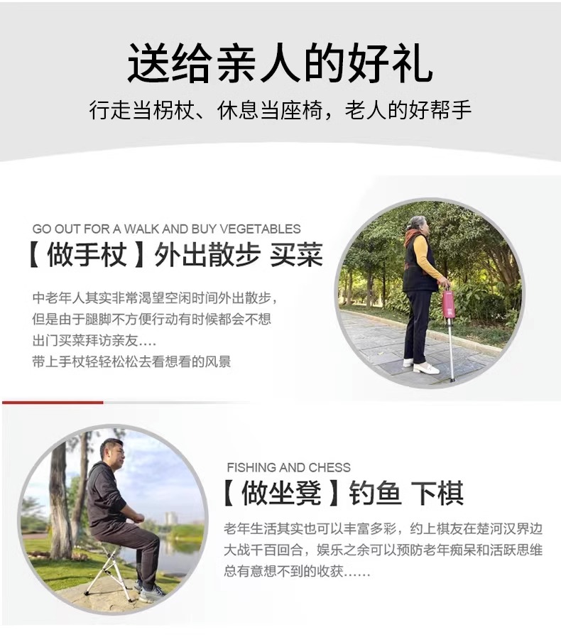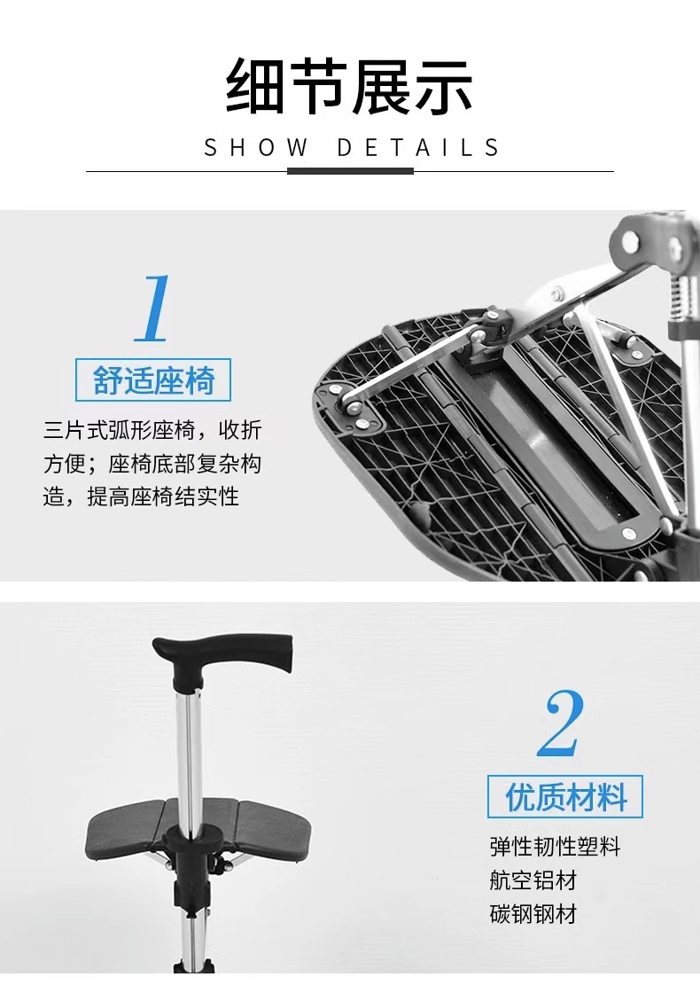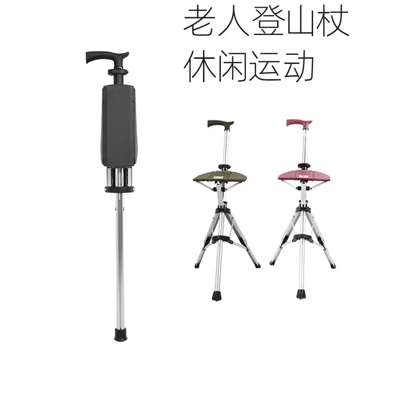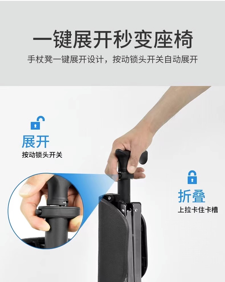 柺杖椅老人多功能超輕摺疊可攜式帶凳可坐老年柺杖凳防滑助步器