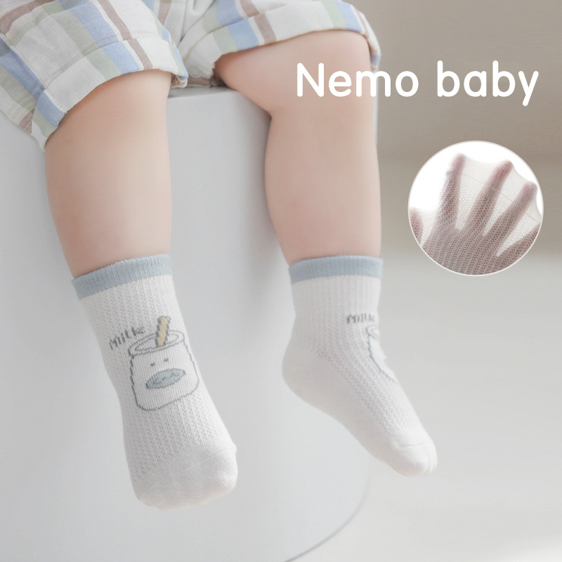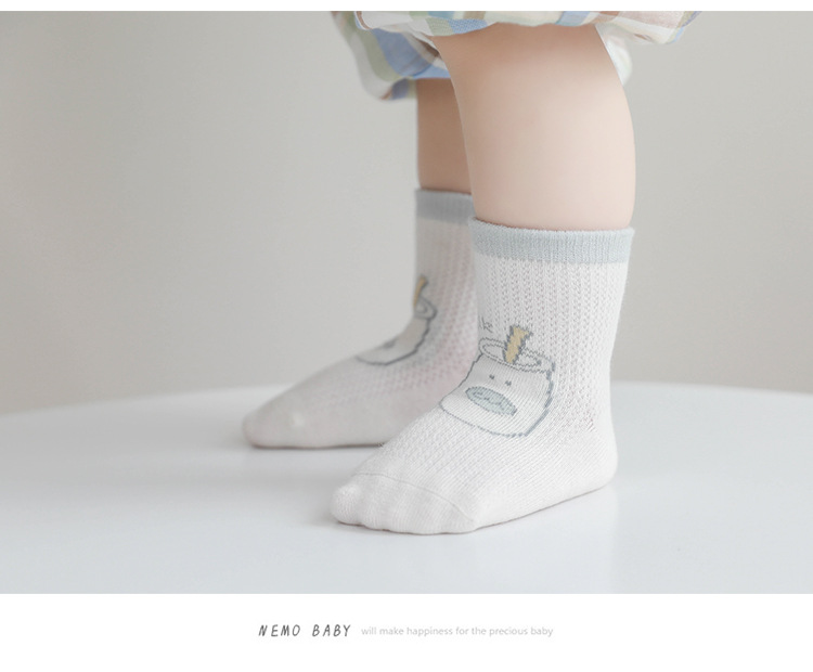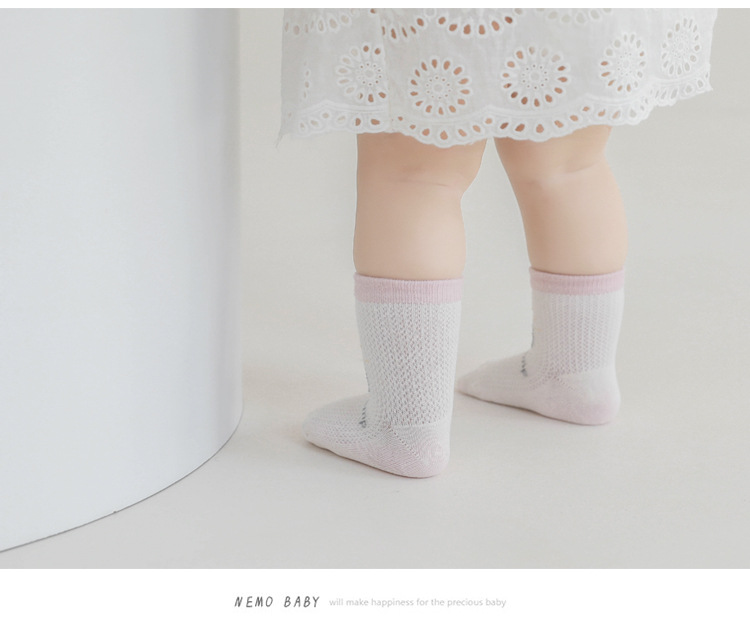 2022年夏季新款女宝宝袜子超薄网眼新生儿棉袜可爱卡通儿童中筒袜
