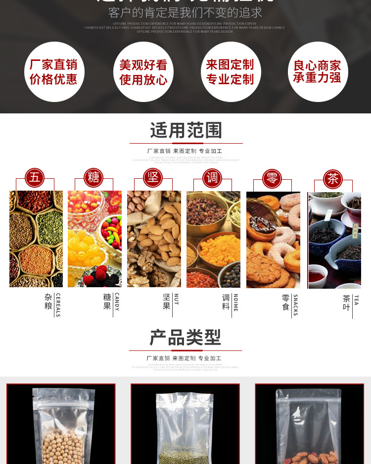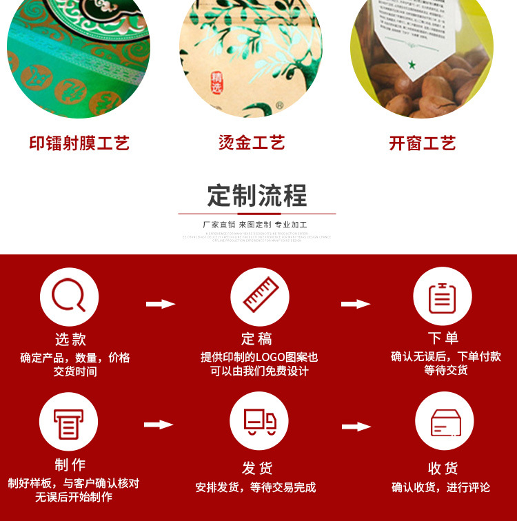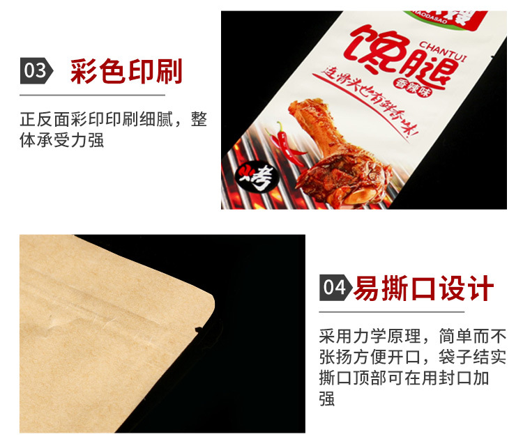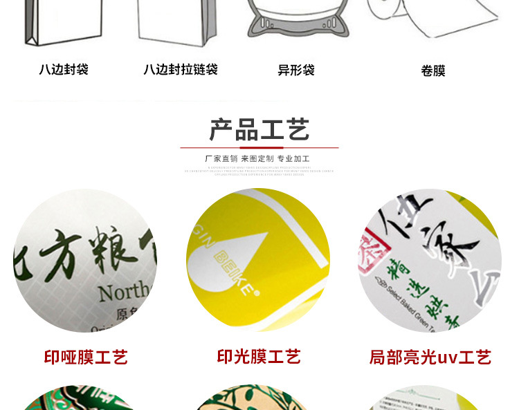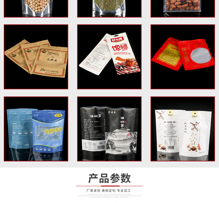 【产品定做】:可定做各种规格的食品包装袋,