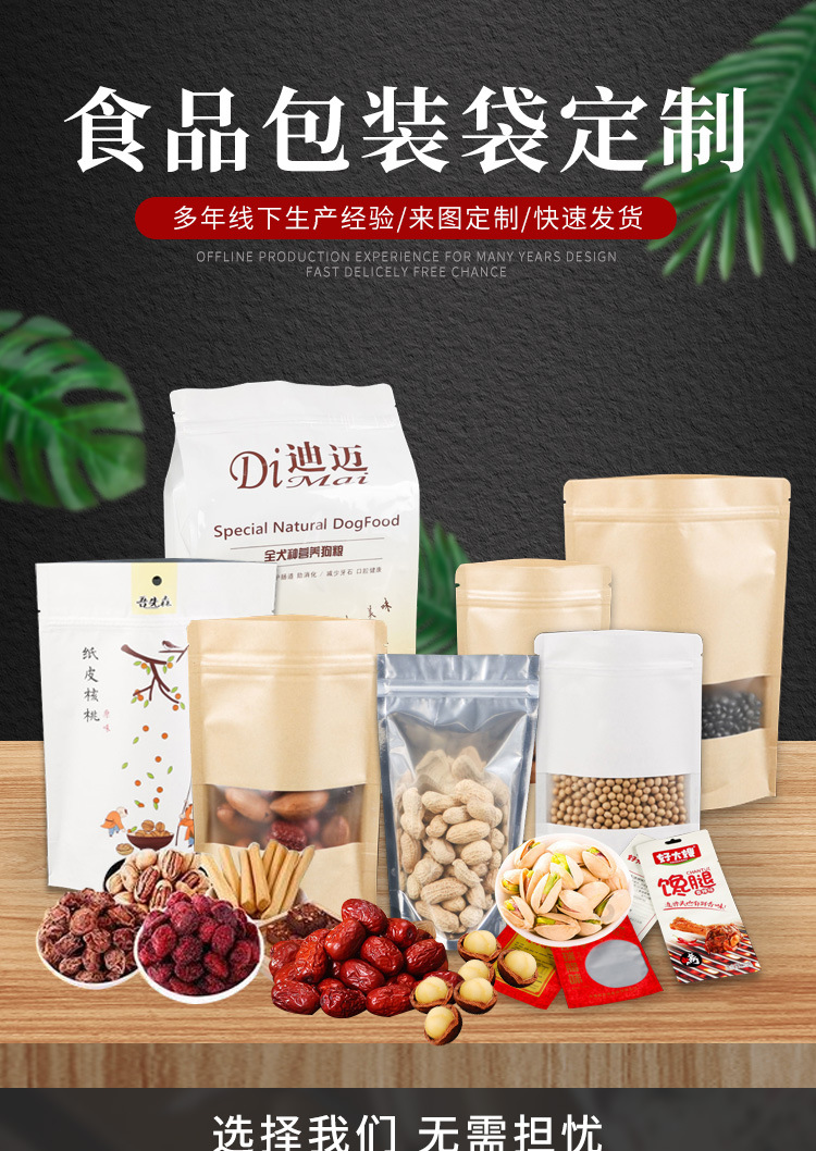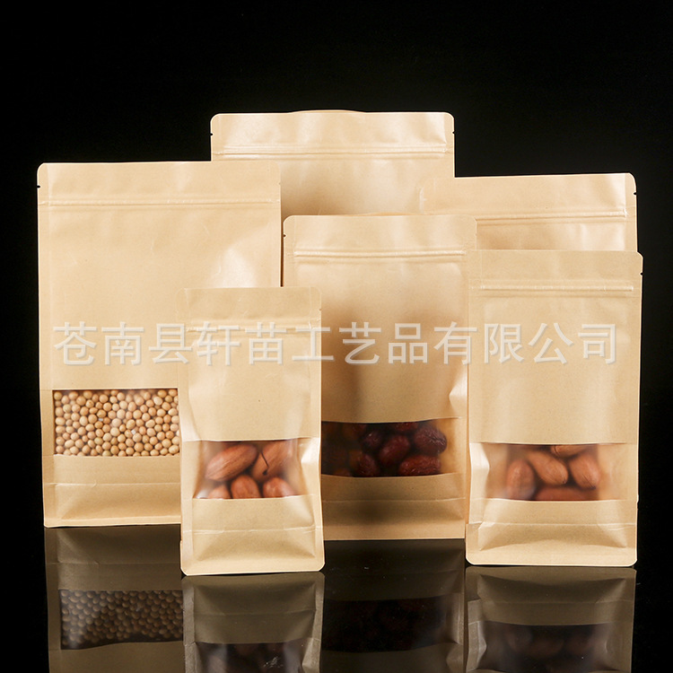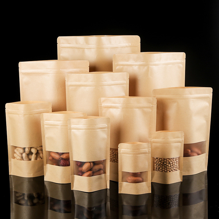 哑光磨砂牛皮纸袋开窗自立自封休闲食品袋密封防水防潮茶叶包装袋