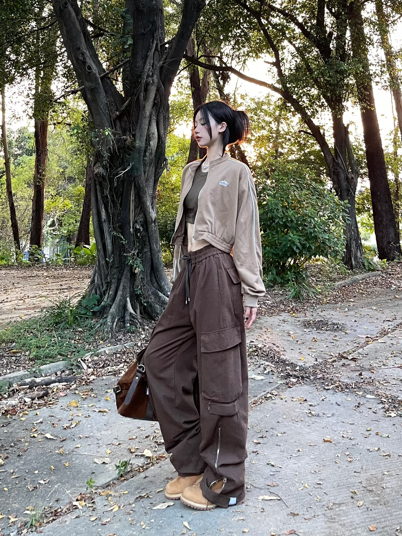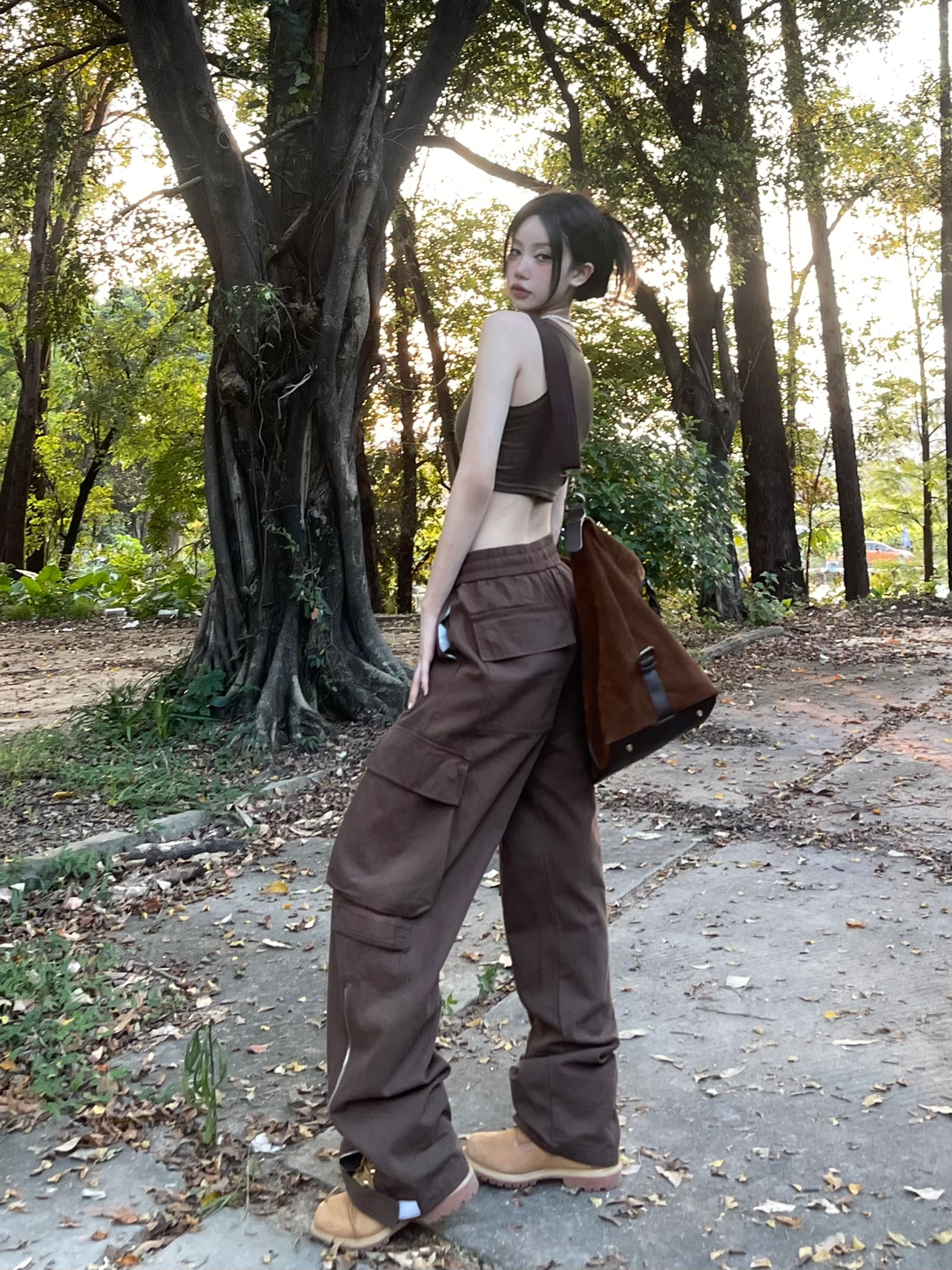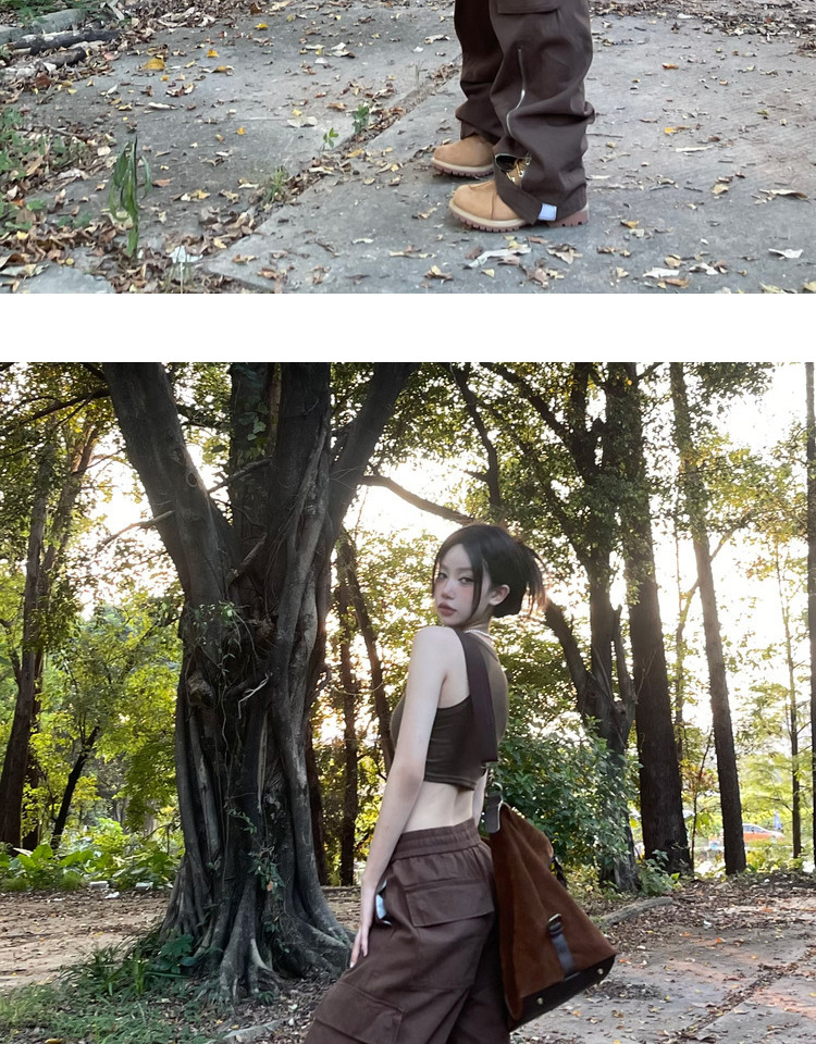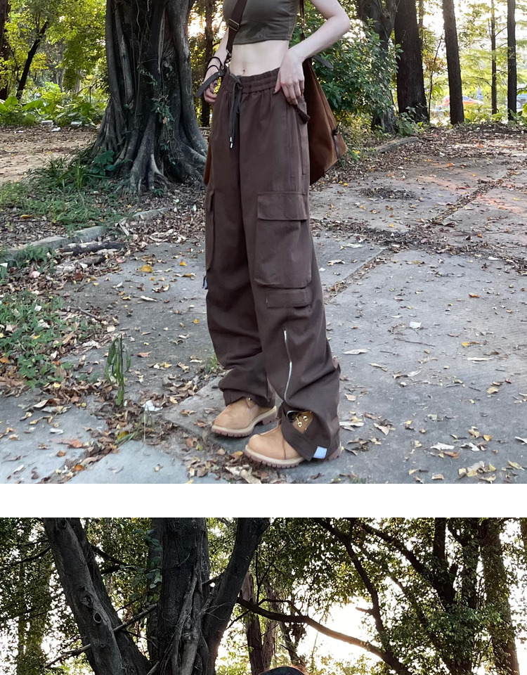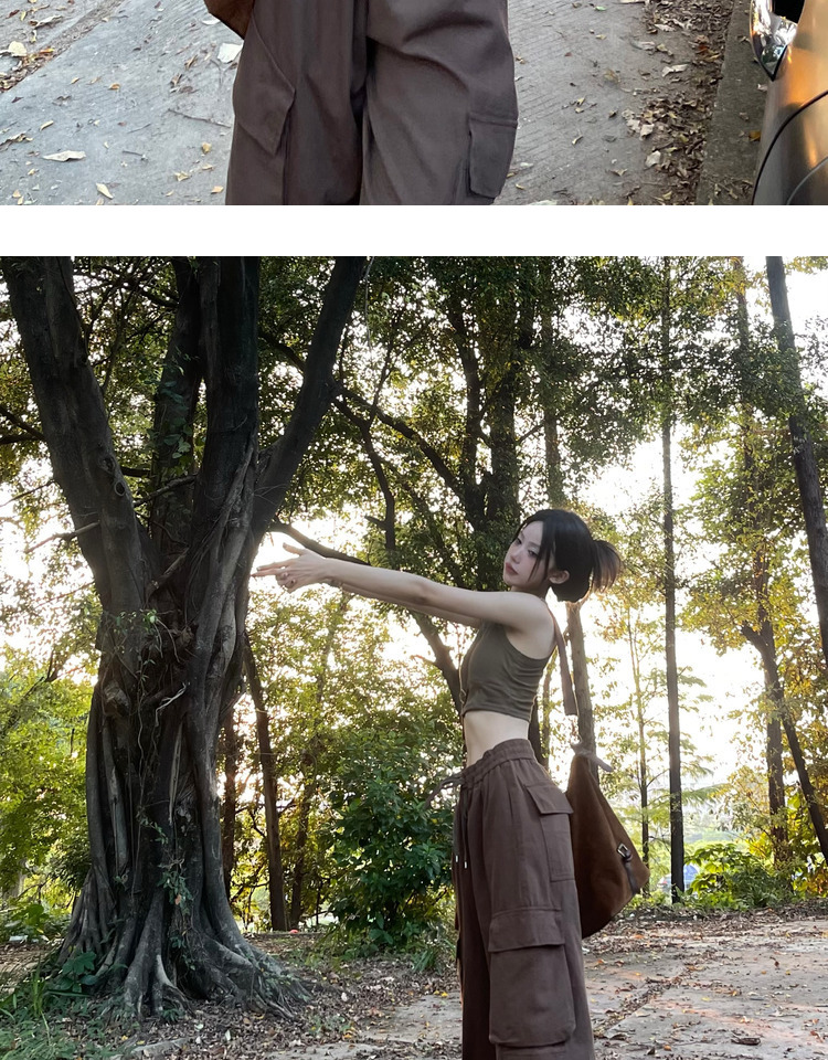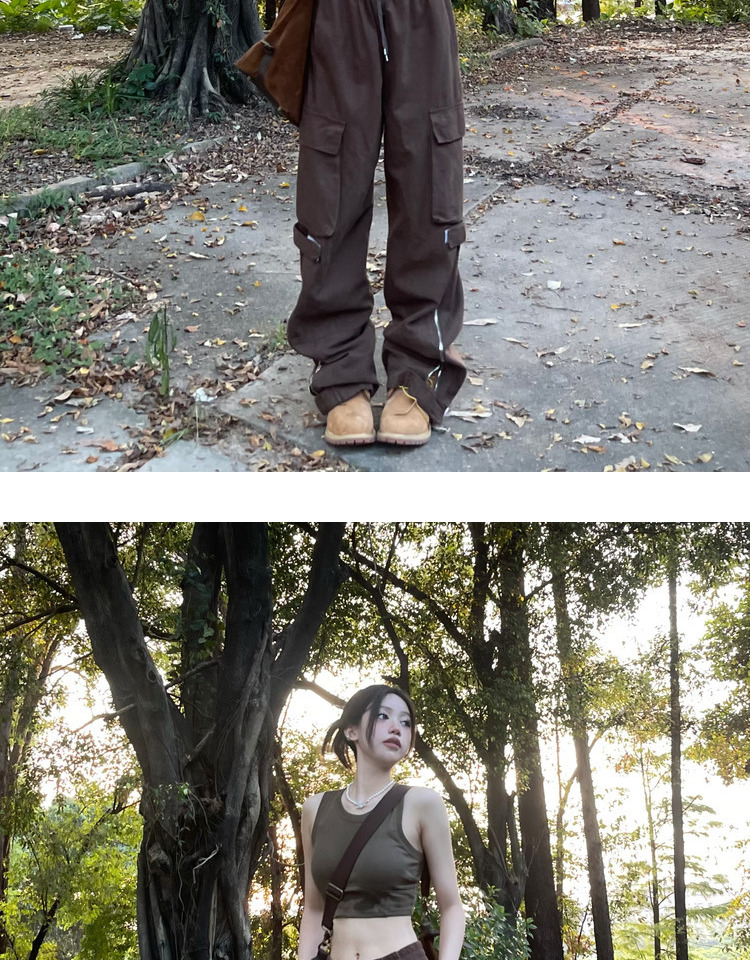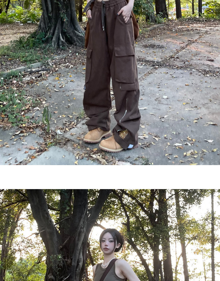 ZZHenL美式vibe風寬鬆2023新品工裝褲多口袋褲腰可調節設計感百搭