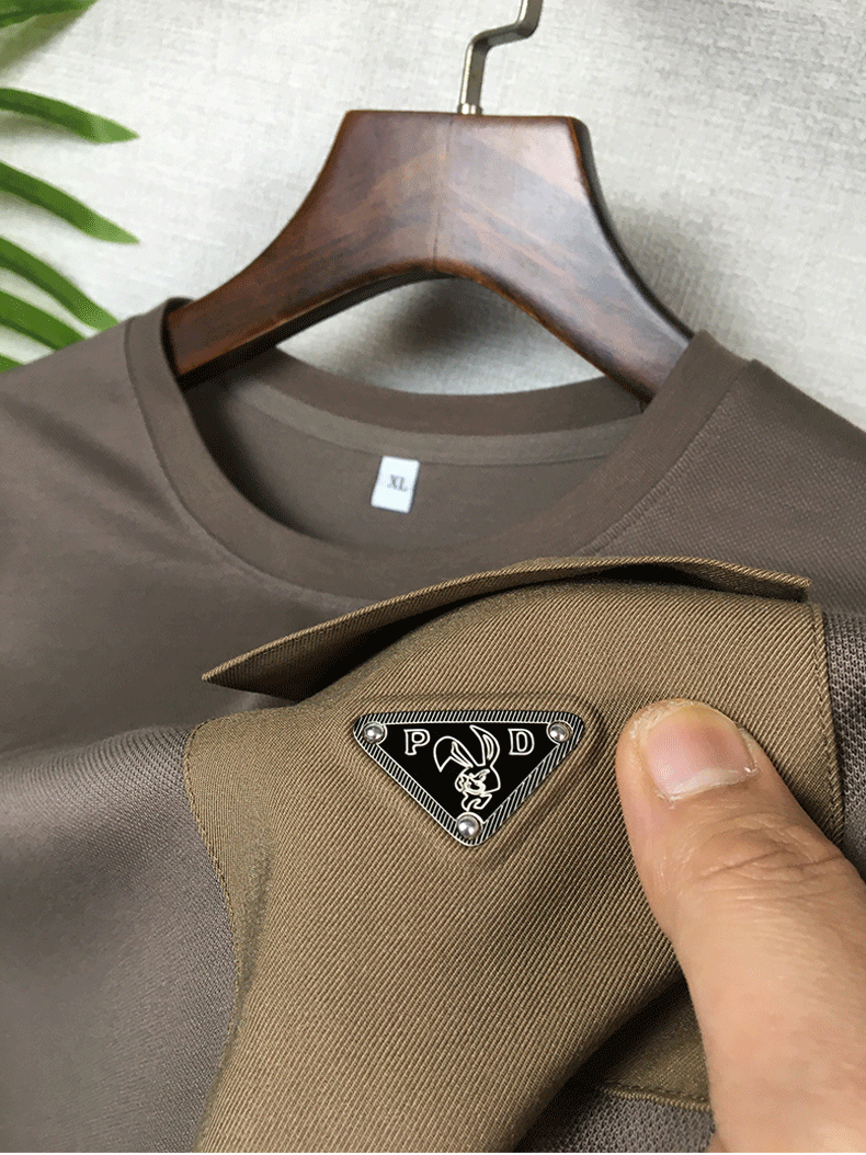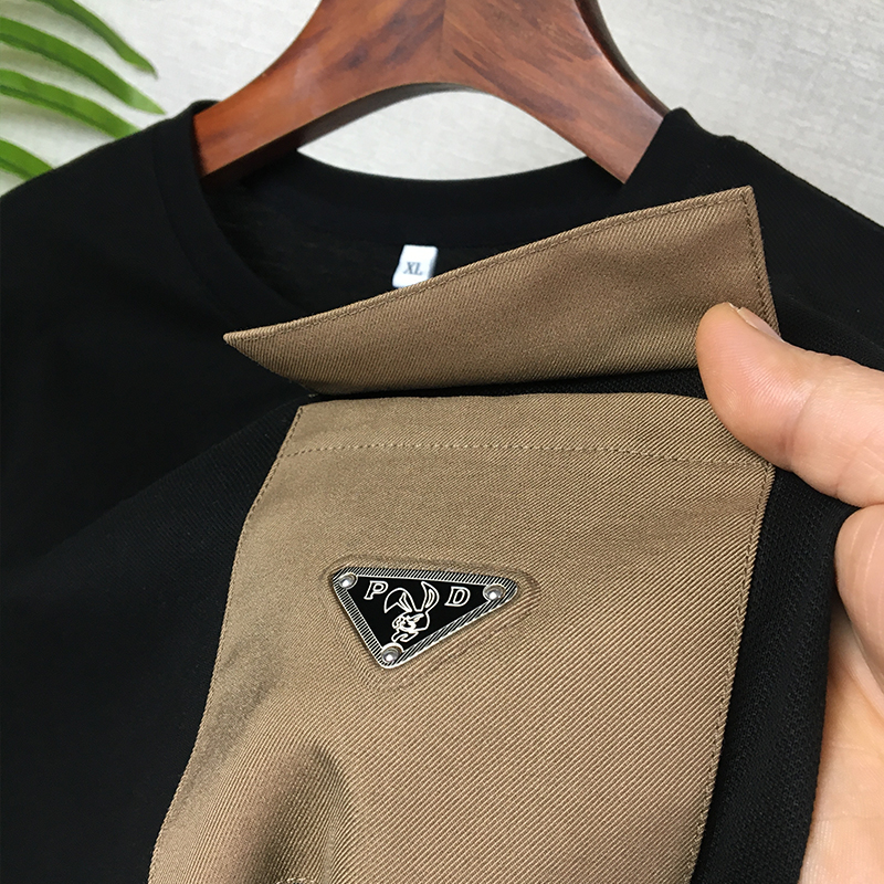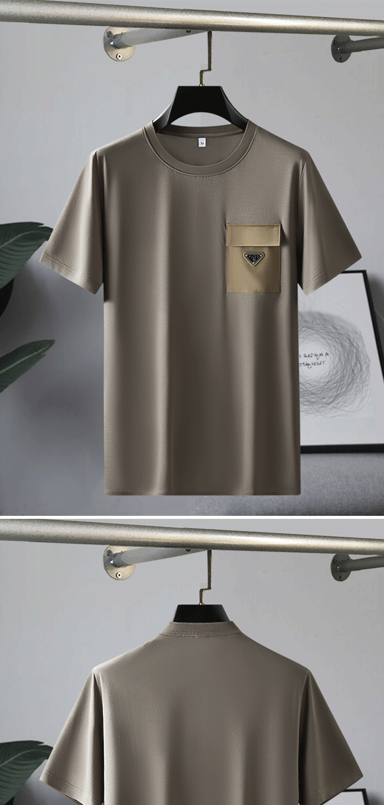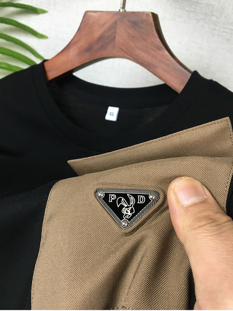 口袋開叉美式短袖t恤男寬鬆加肥加大碼胖子圓領絲光棉半袖T恤夏