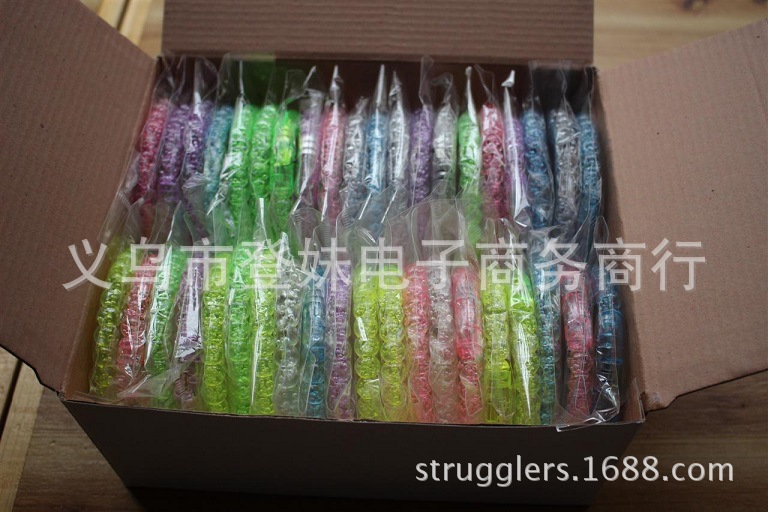 此款手环与其他的手环的大的差别就是在,他的手环是由透明的压克力棒做成的,透明度好,并且灯光红蓝双色的.手镯直径是:8.5CM,管径是:1cm.连接处可以打开男士女士皆可佩带,颜色随机混发。