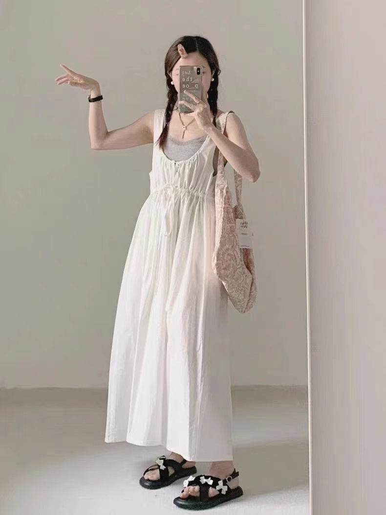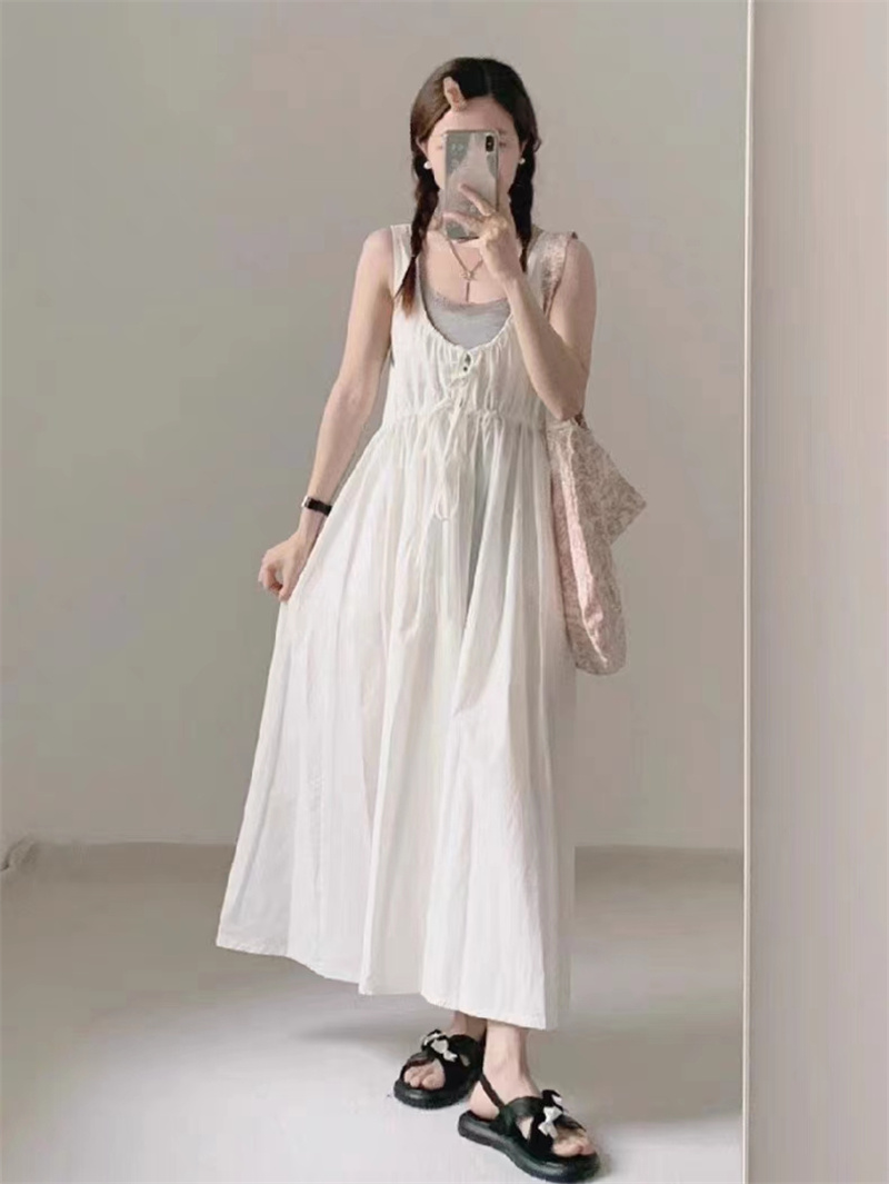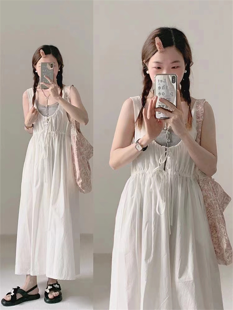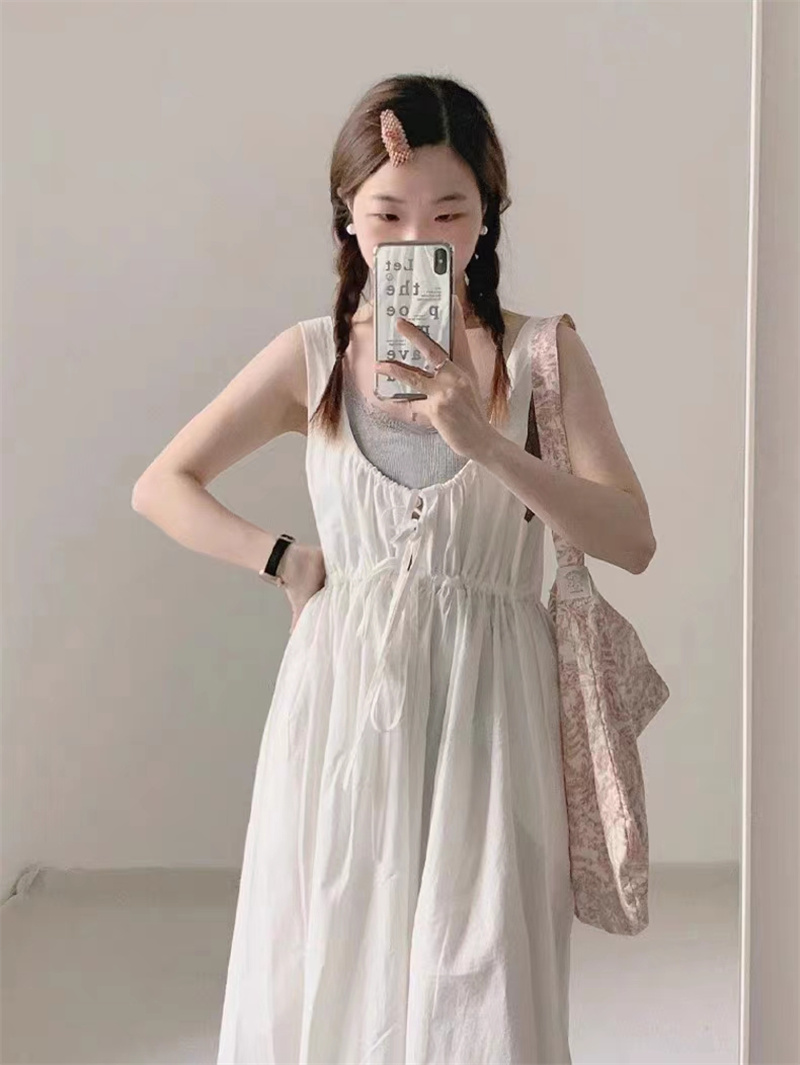 顏色分類 灰色內搭吊帶 白色背心裙【獨特洋裝超好看/白色連衣裙/無袖洋裝/繫帶收腰顯瘦洋裝】 白色背心裙+內搭吊帶【高級感穿搭小個子/沙灘裙/顯瘦洋裝/顯瘦洋裝】