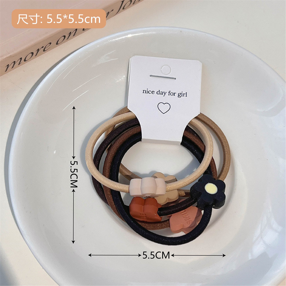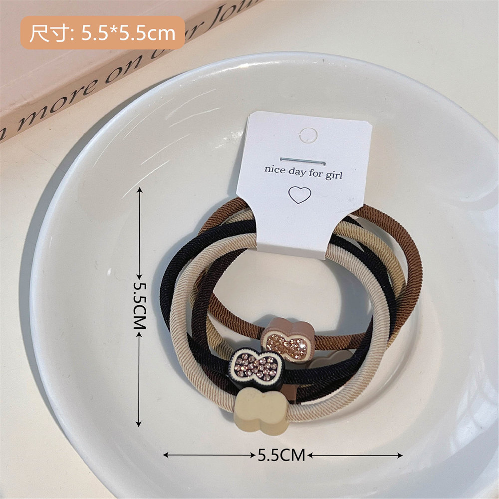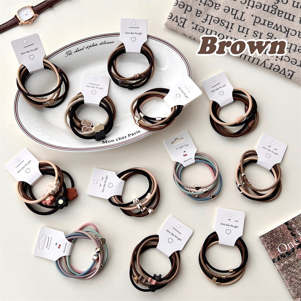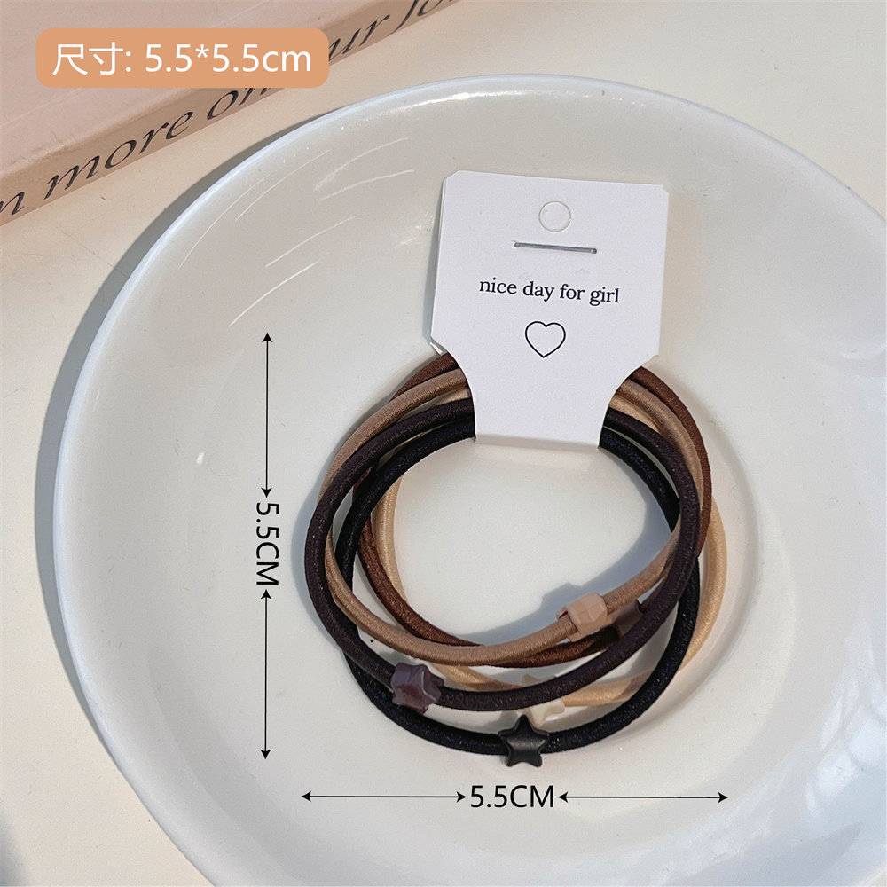 5件套奶棕色系发圈套装时尚扎头发橡皮筋莫兰迪简约基础发绳发饰