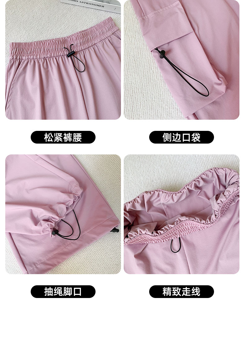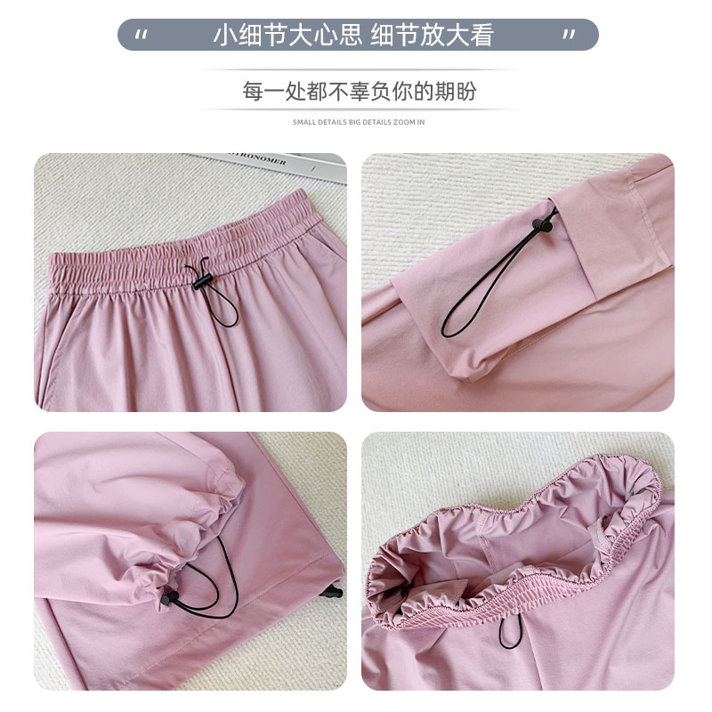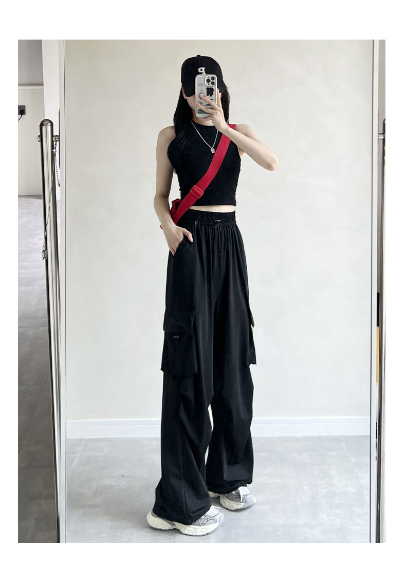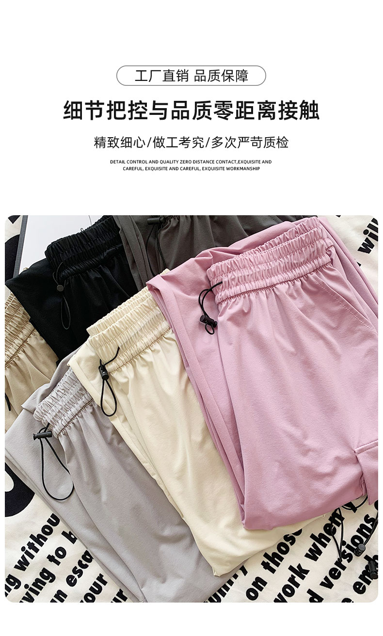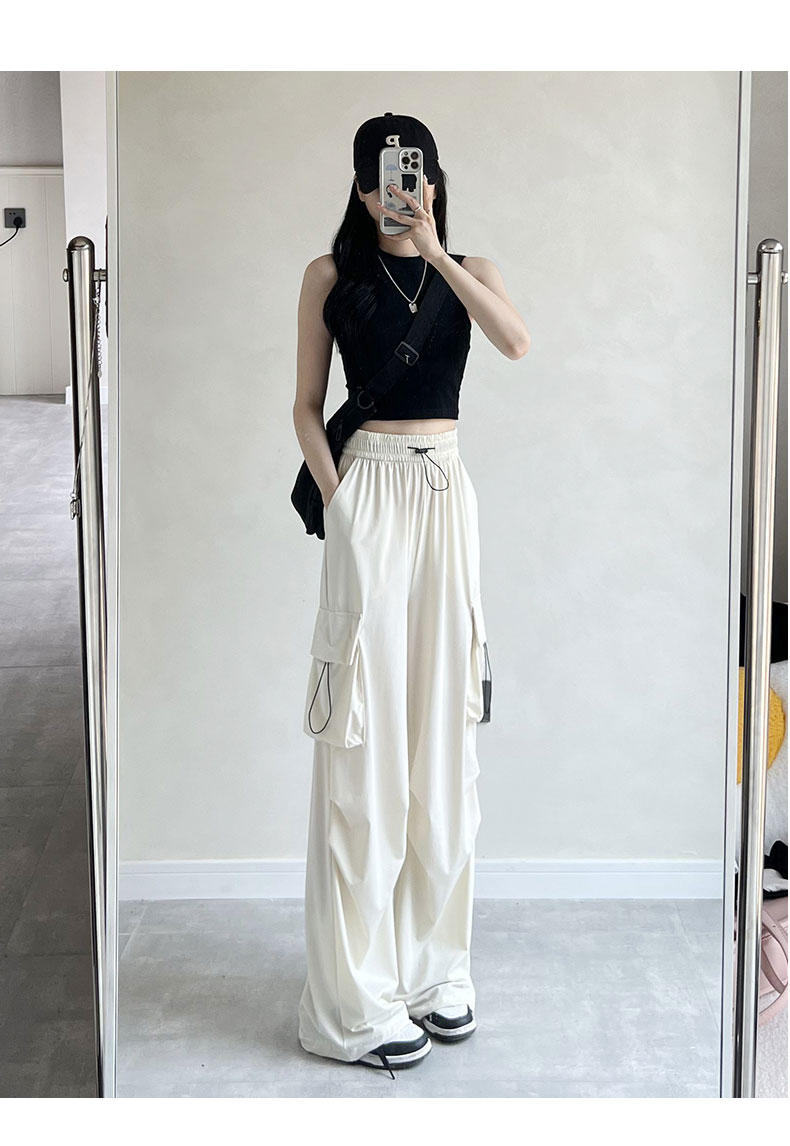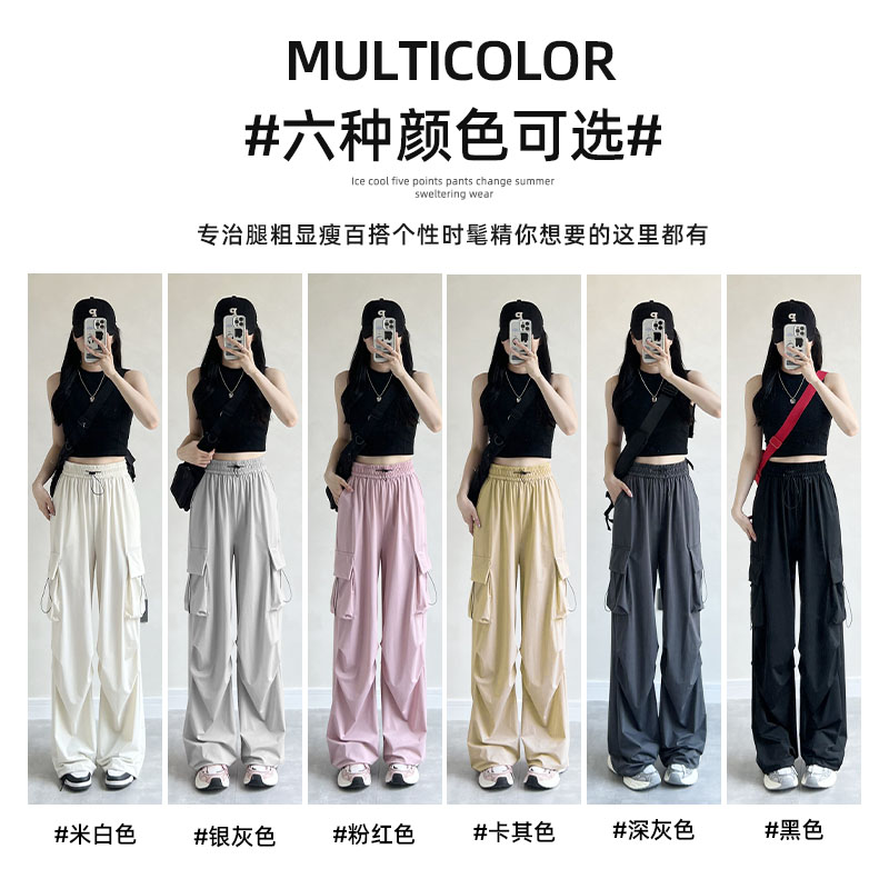 灰色工裝褲女夏季2023新款高腰降落傘褲休閒寬褲速乾美式運動褲