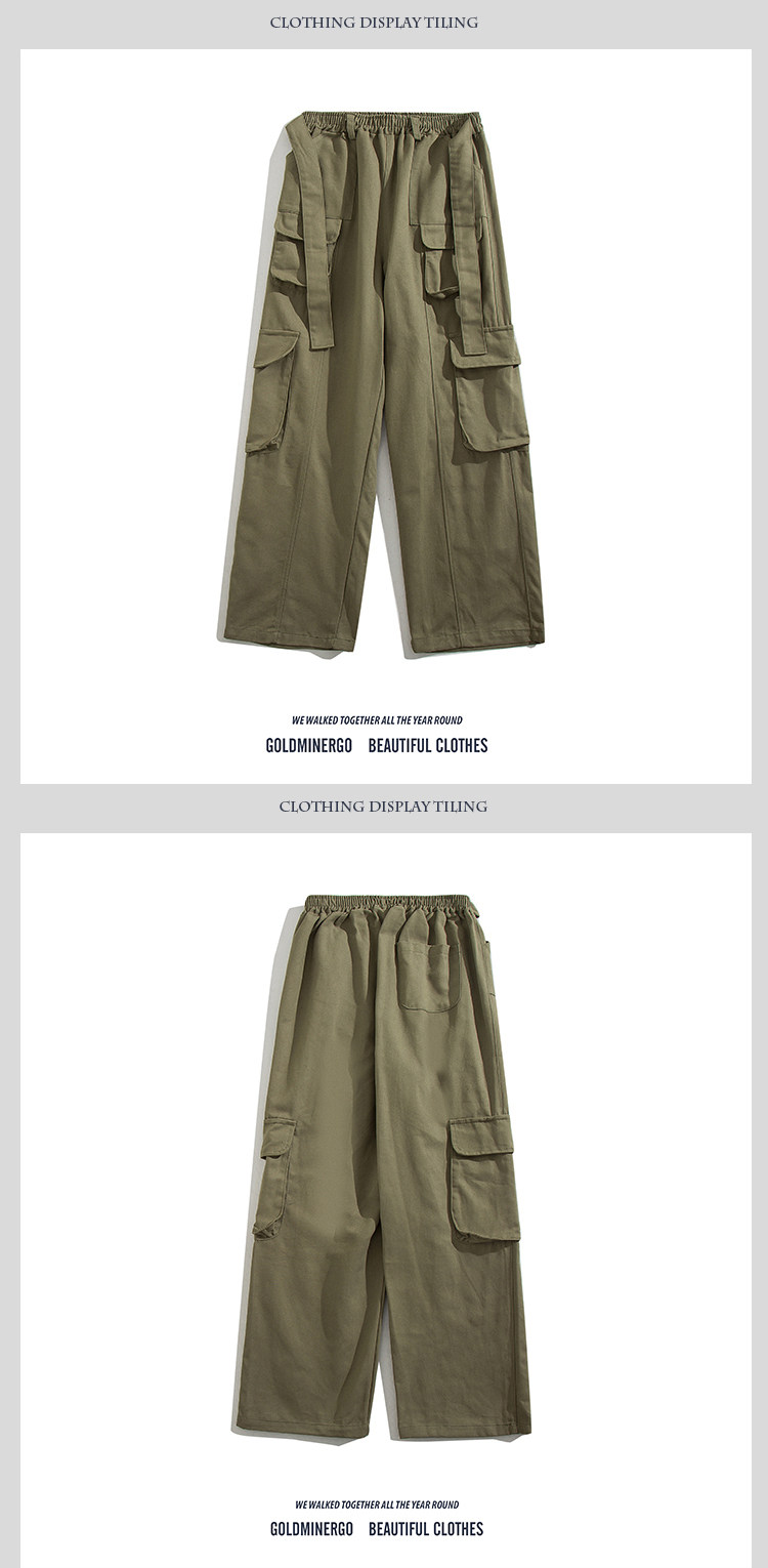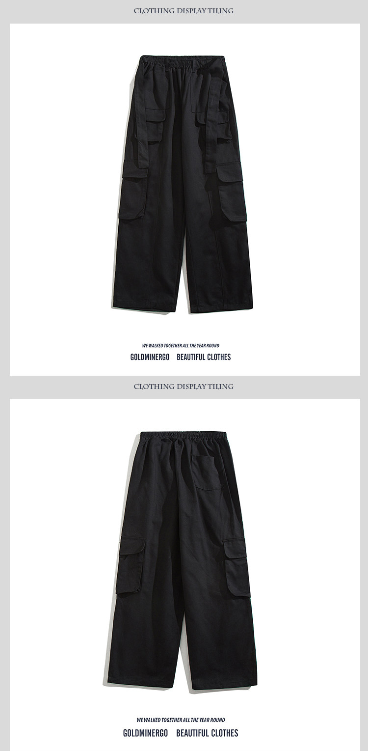 美式復古工裝褲男潮牌寬鬆多口袋闊腿拖地褲嘻哈hiphop運動長褲子