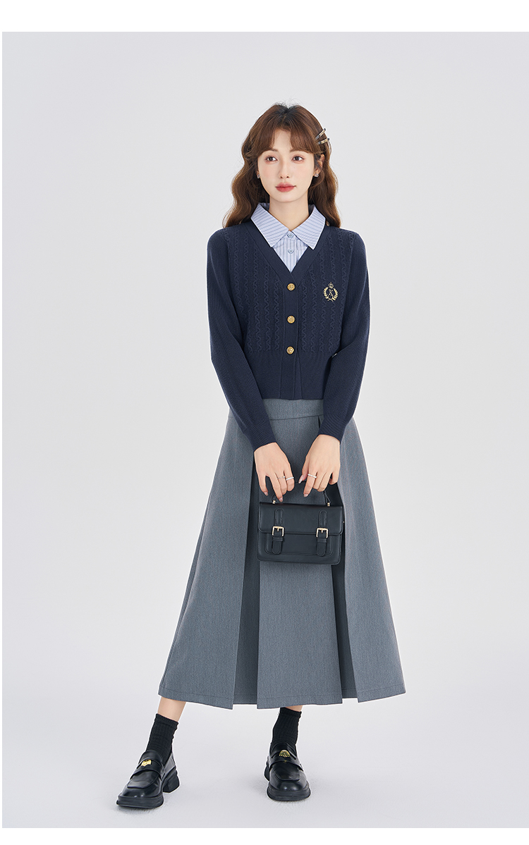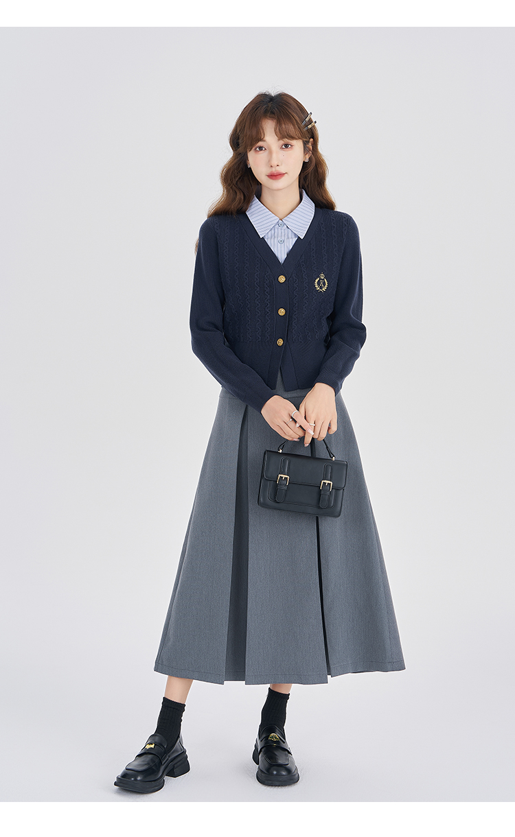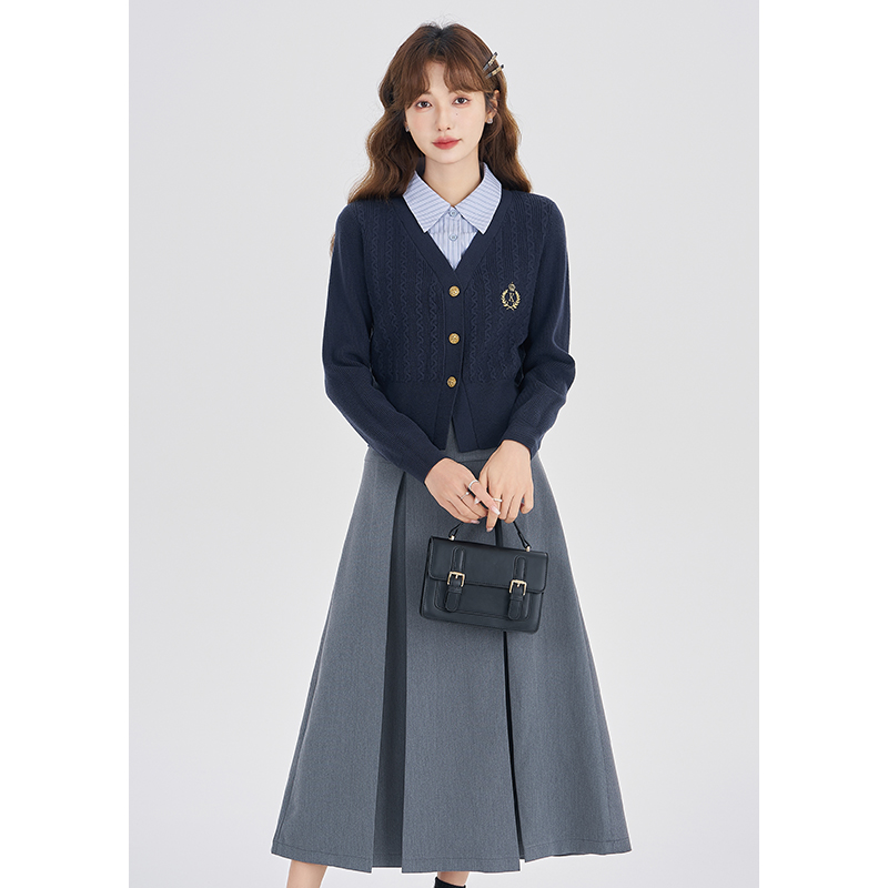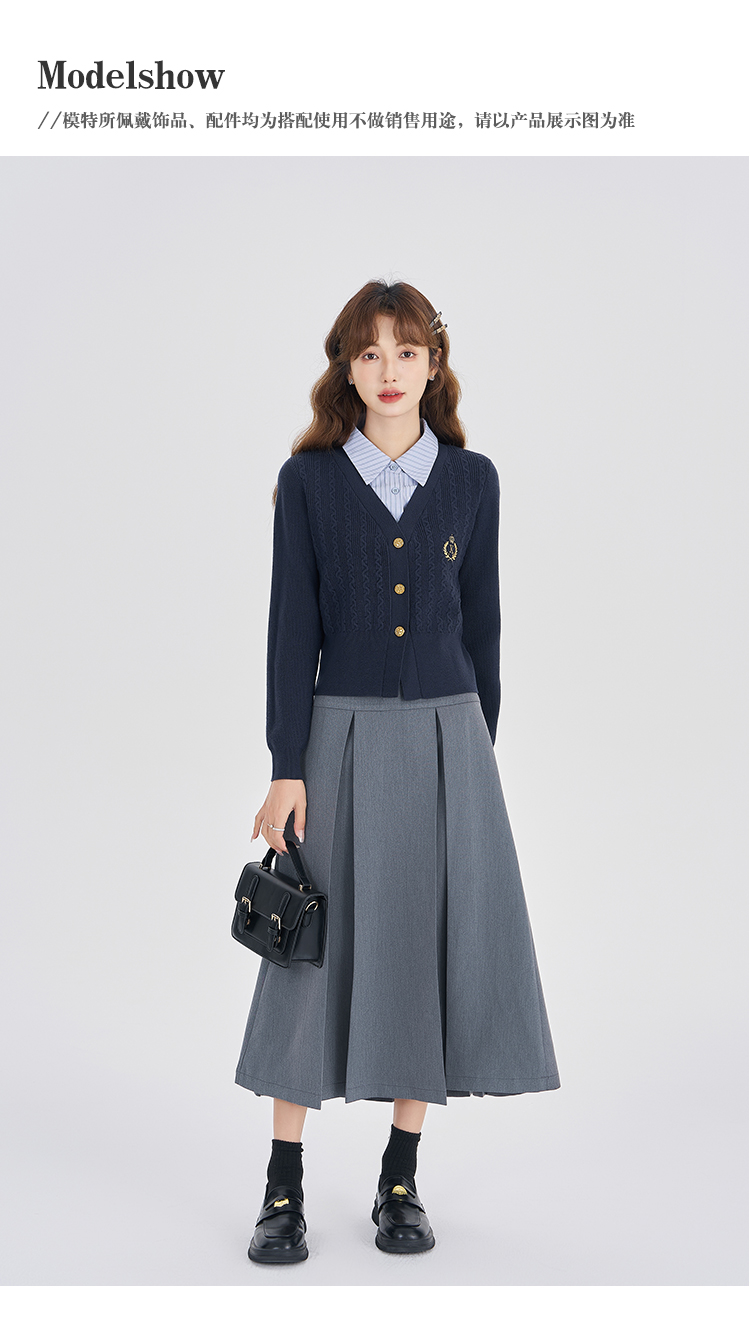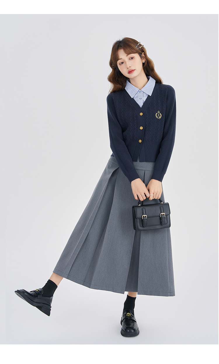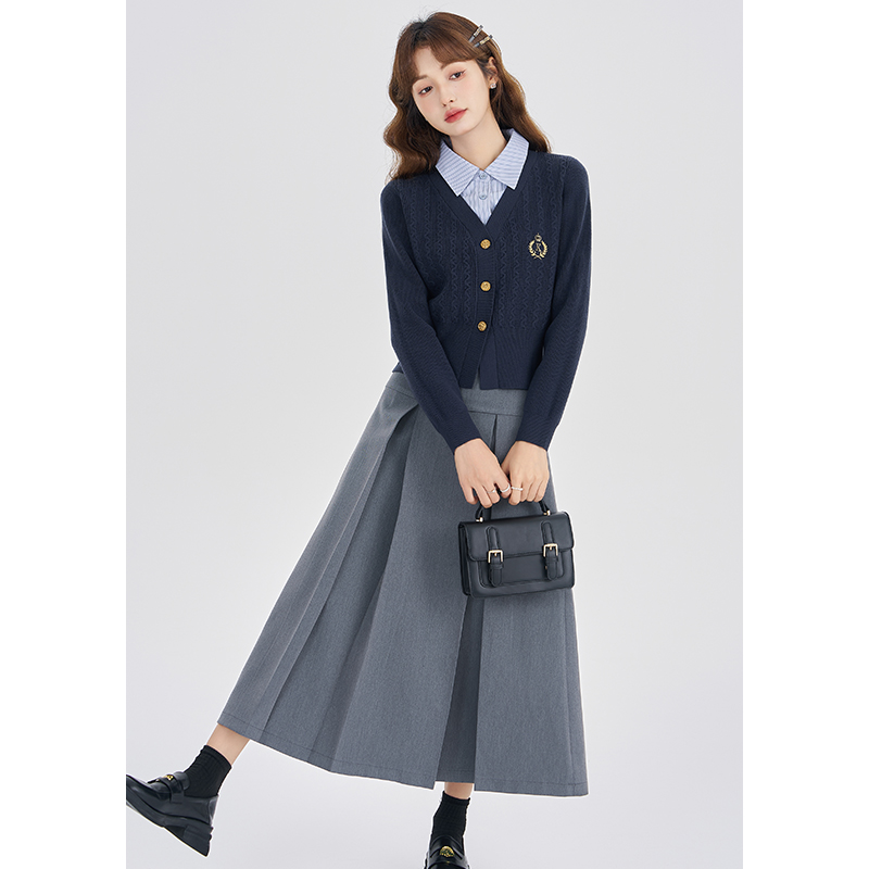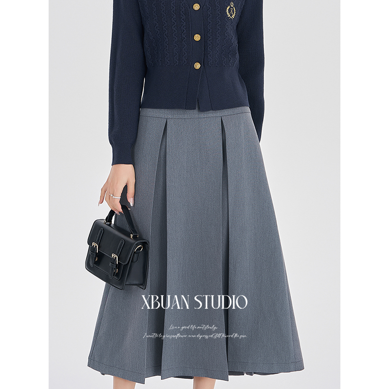 夏不晚XBUAN高腰顯瘦垂感a字半身裙女秋2023新款灰色西裝裙百褶裙