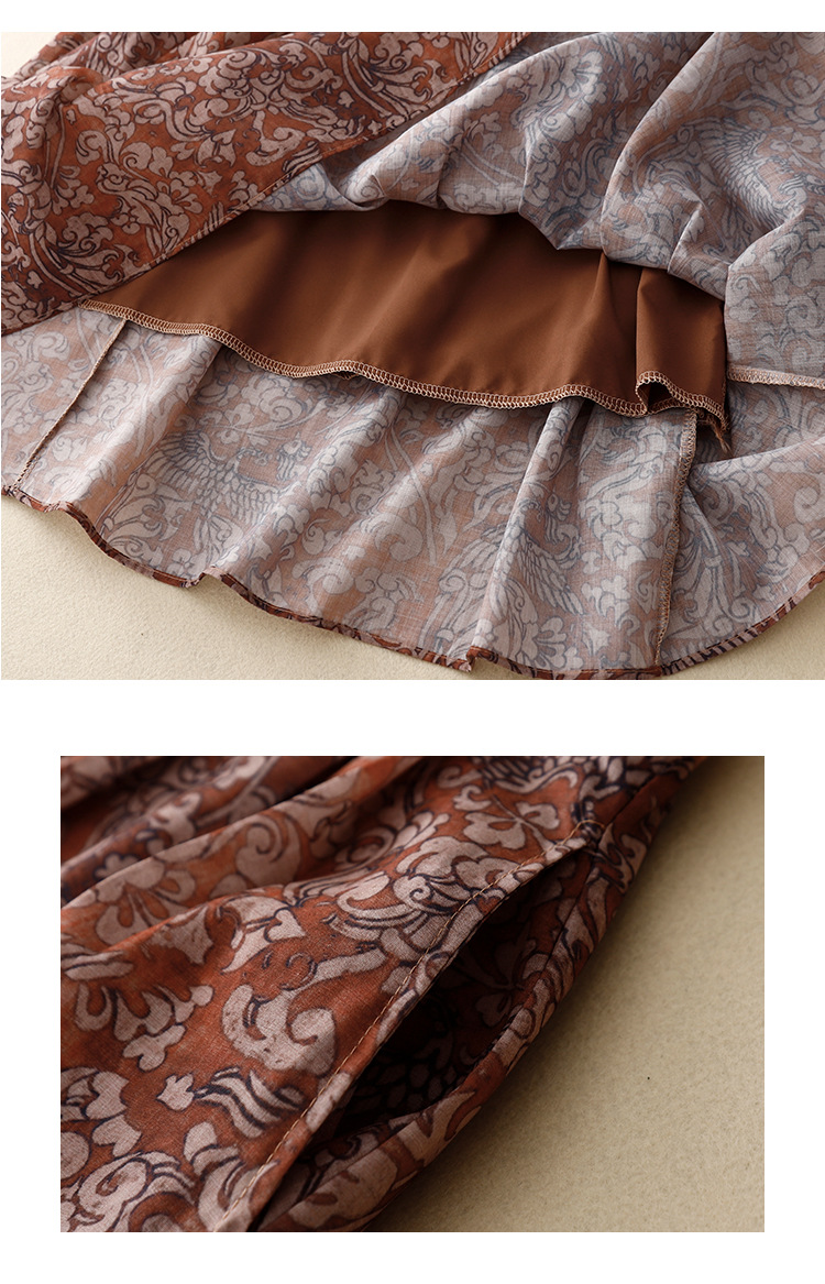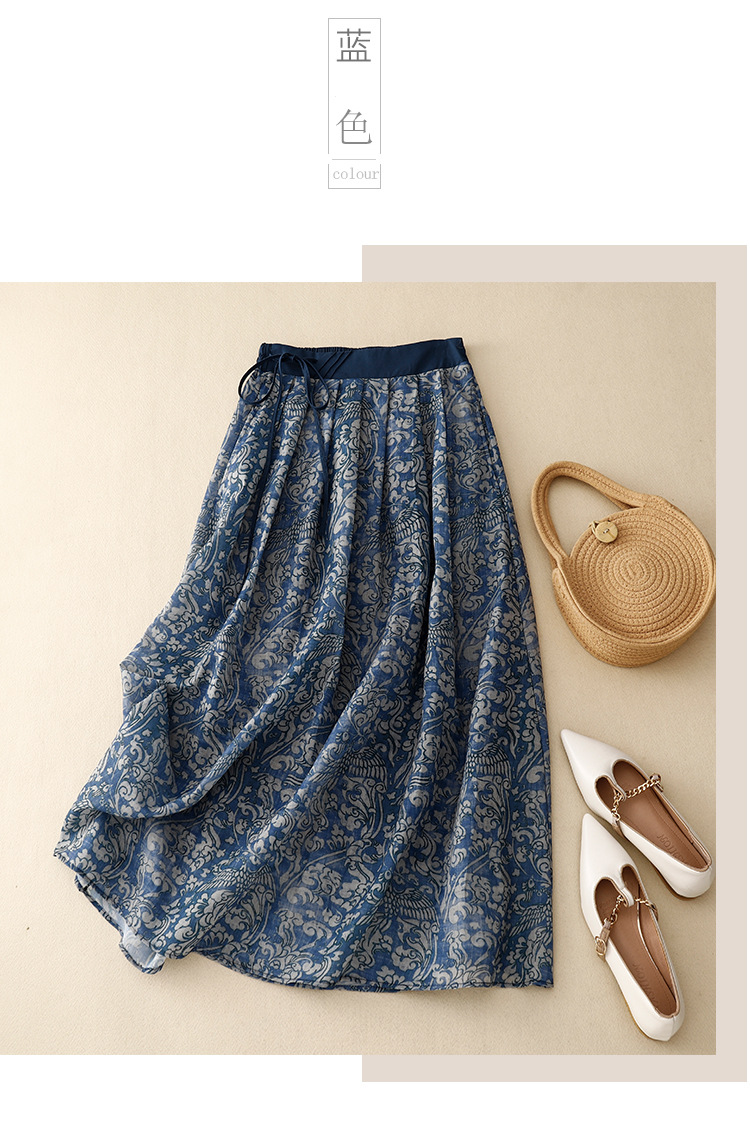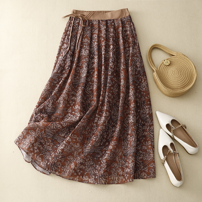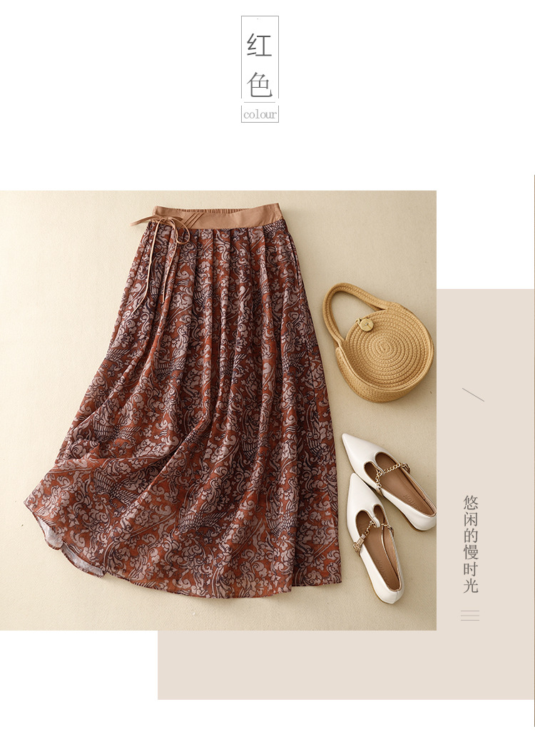 实拍2023夏季新款碎花高腰中长款A字裙文艺复古半身裙女