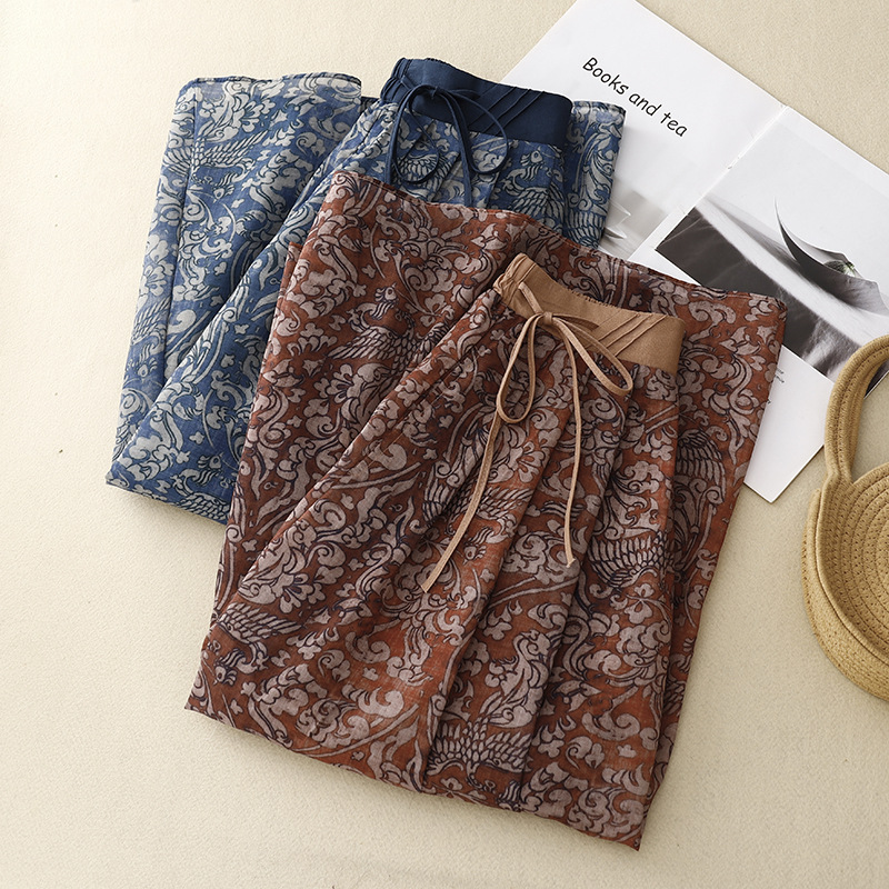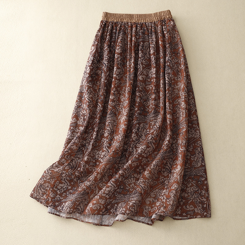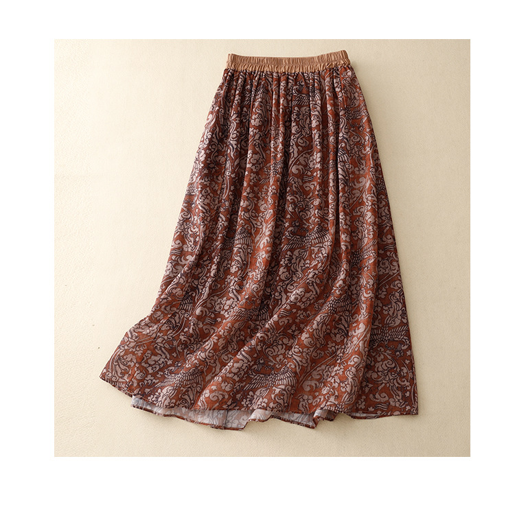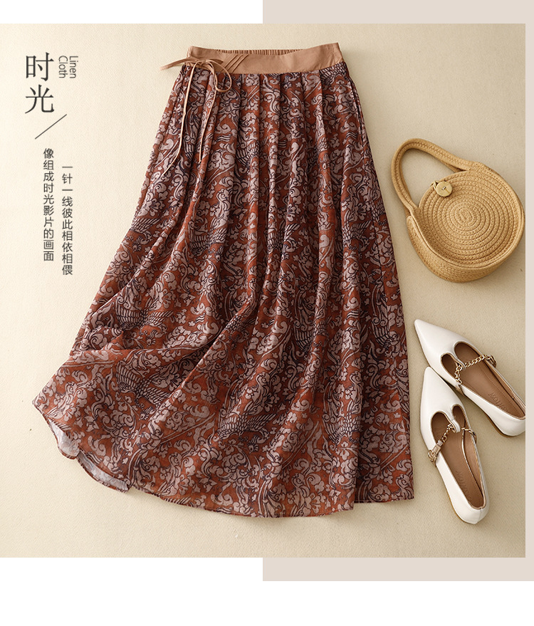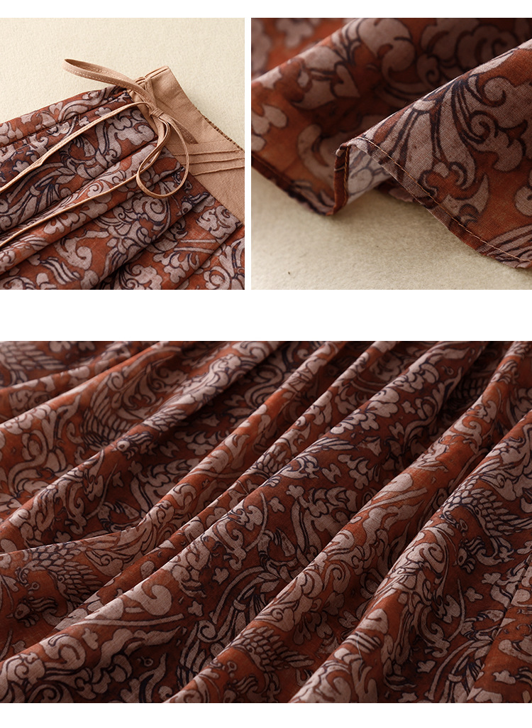 实拍2023夏季新款碎花高腰中长款A字裙文艺复古半身裙女