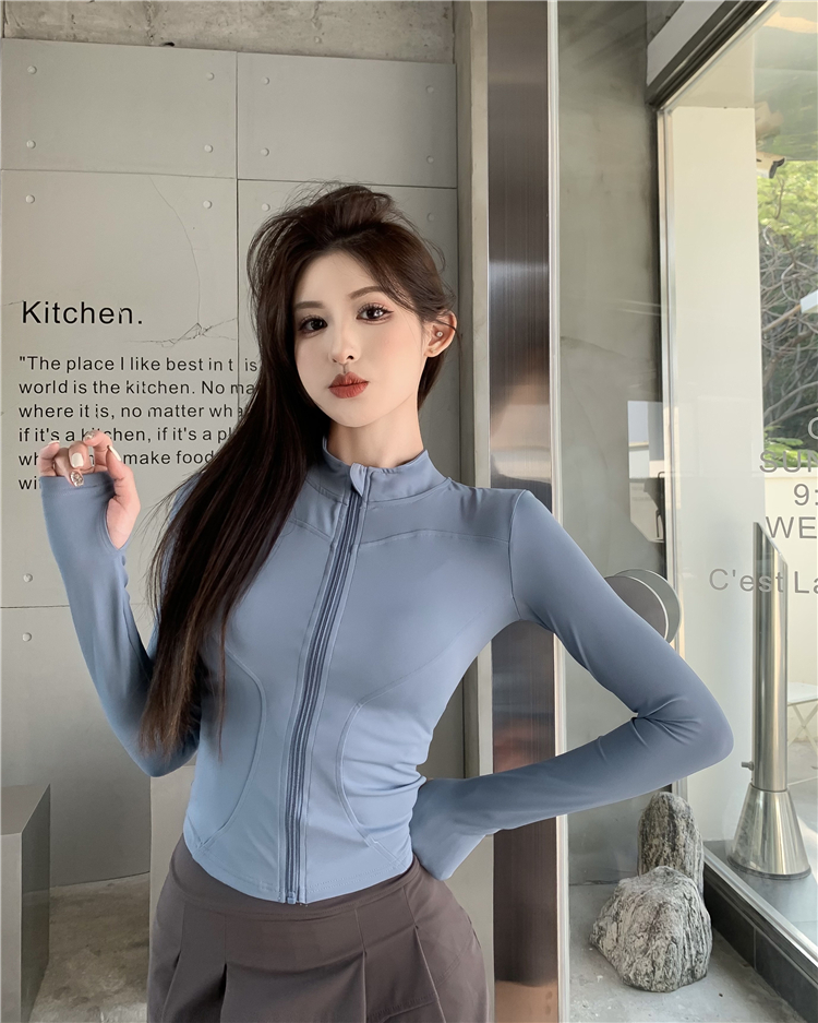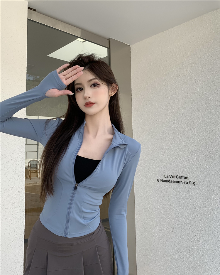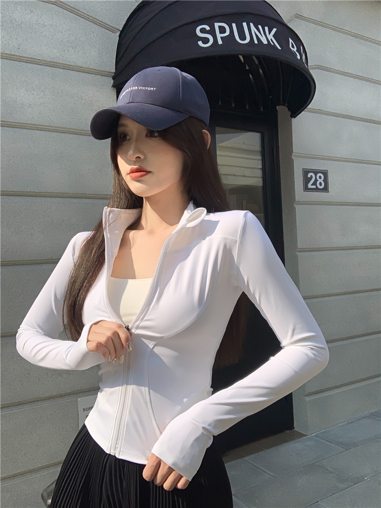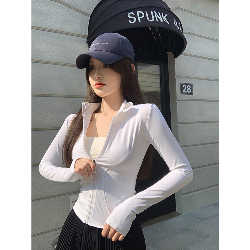 透氣緊身速乾衣長袖防曬拉鍊女裝外套夏季修身戶外運動風開衫上衣
