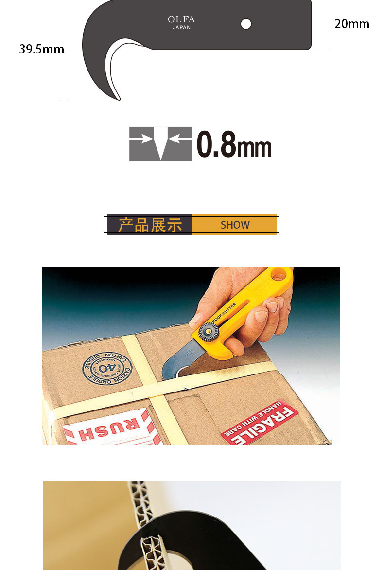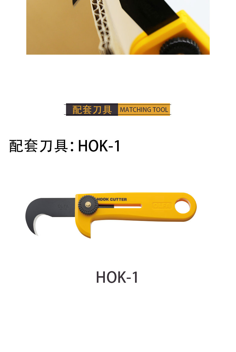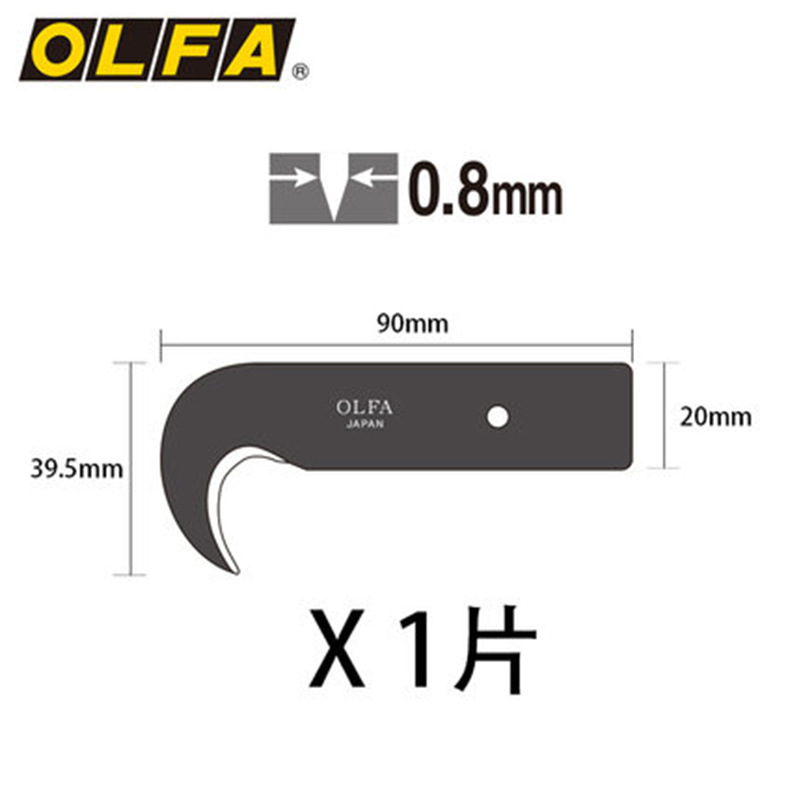 日本进口OLFA镰刀HOB-1碳素钢刀片钩刀刀片HOK-1开箱刀片工业勾刀