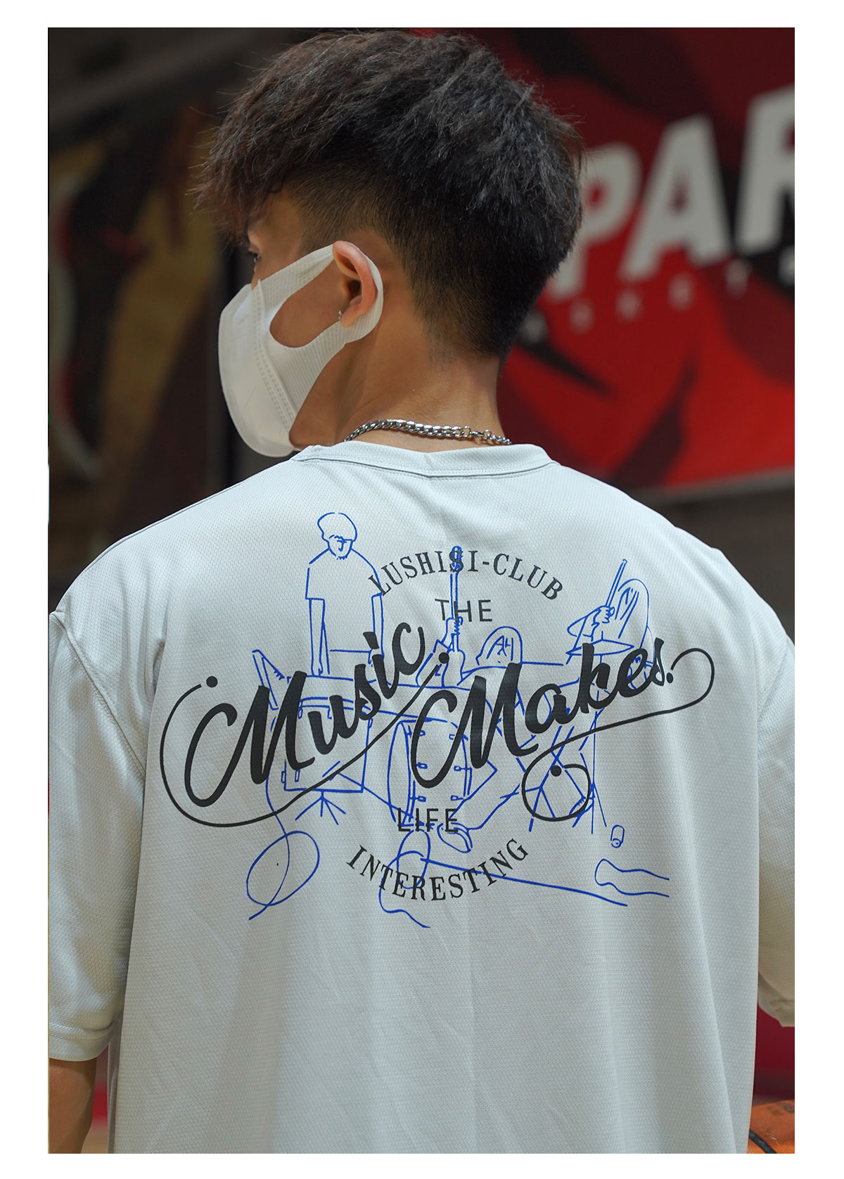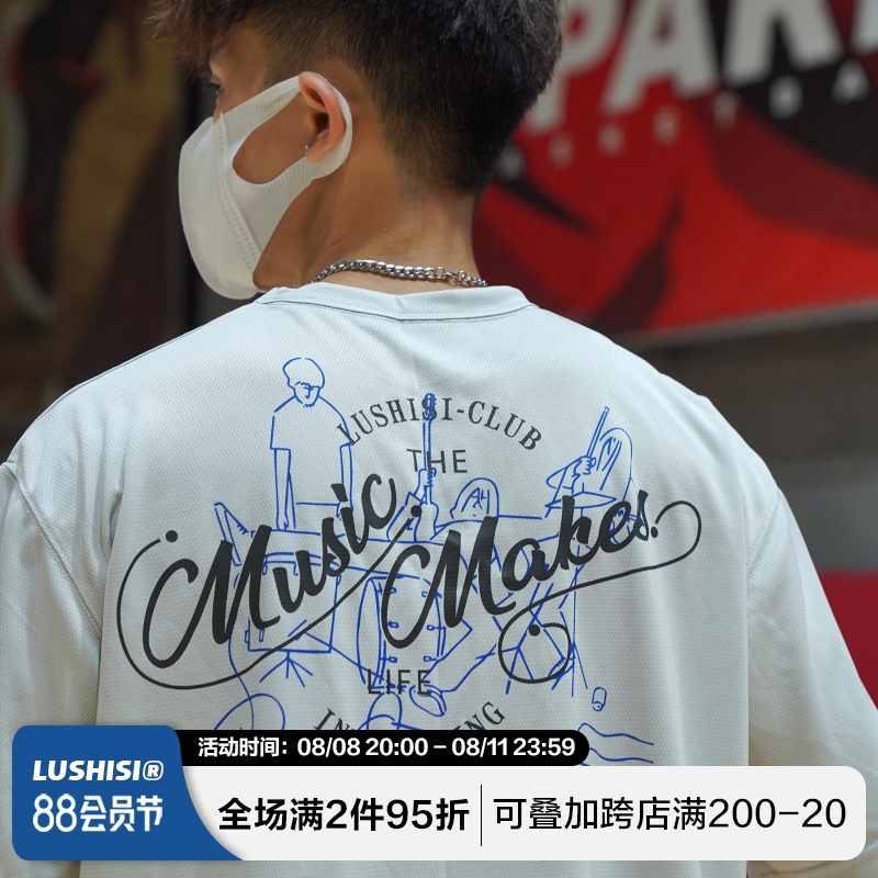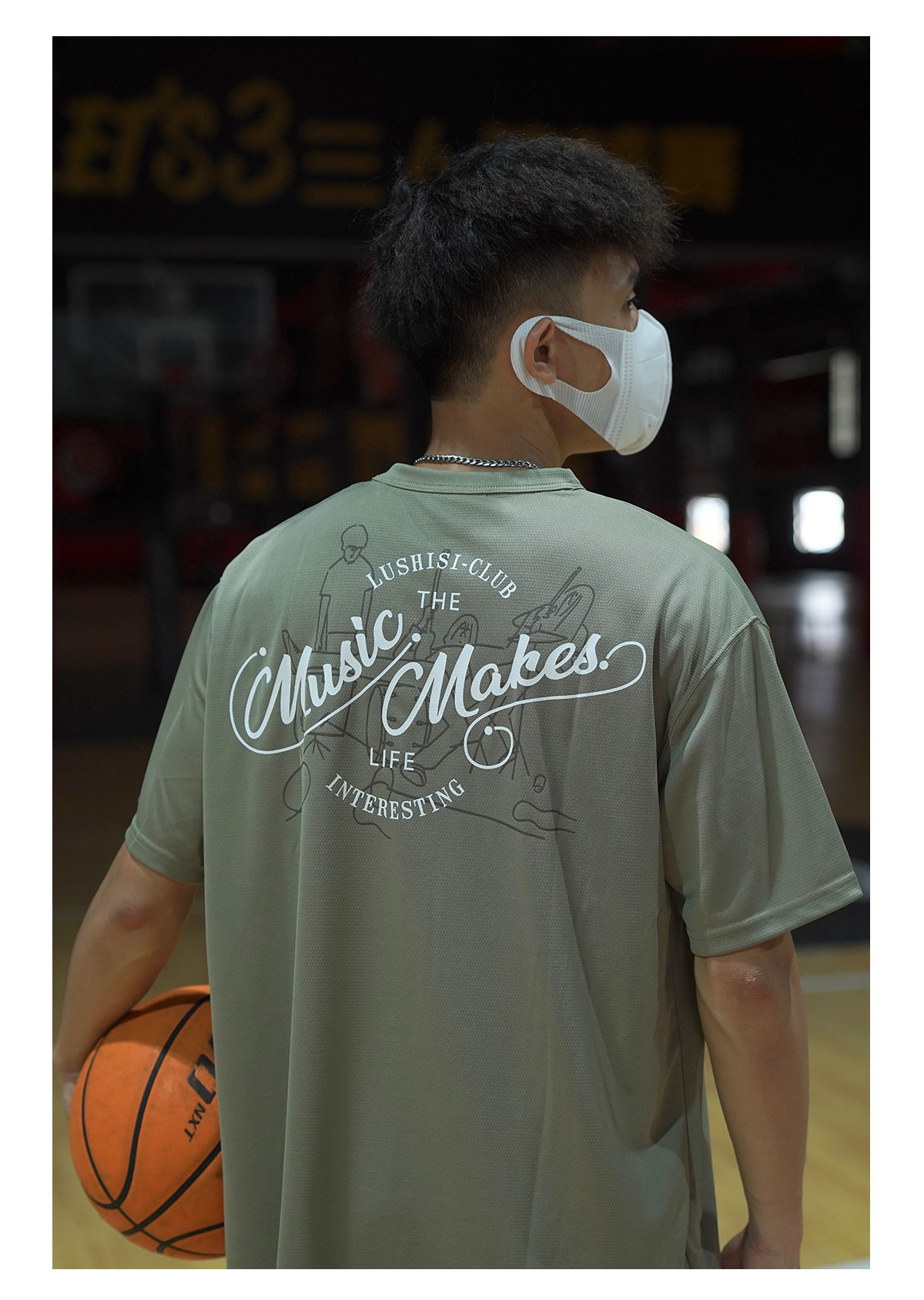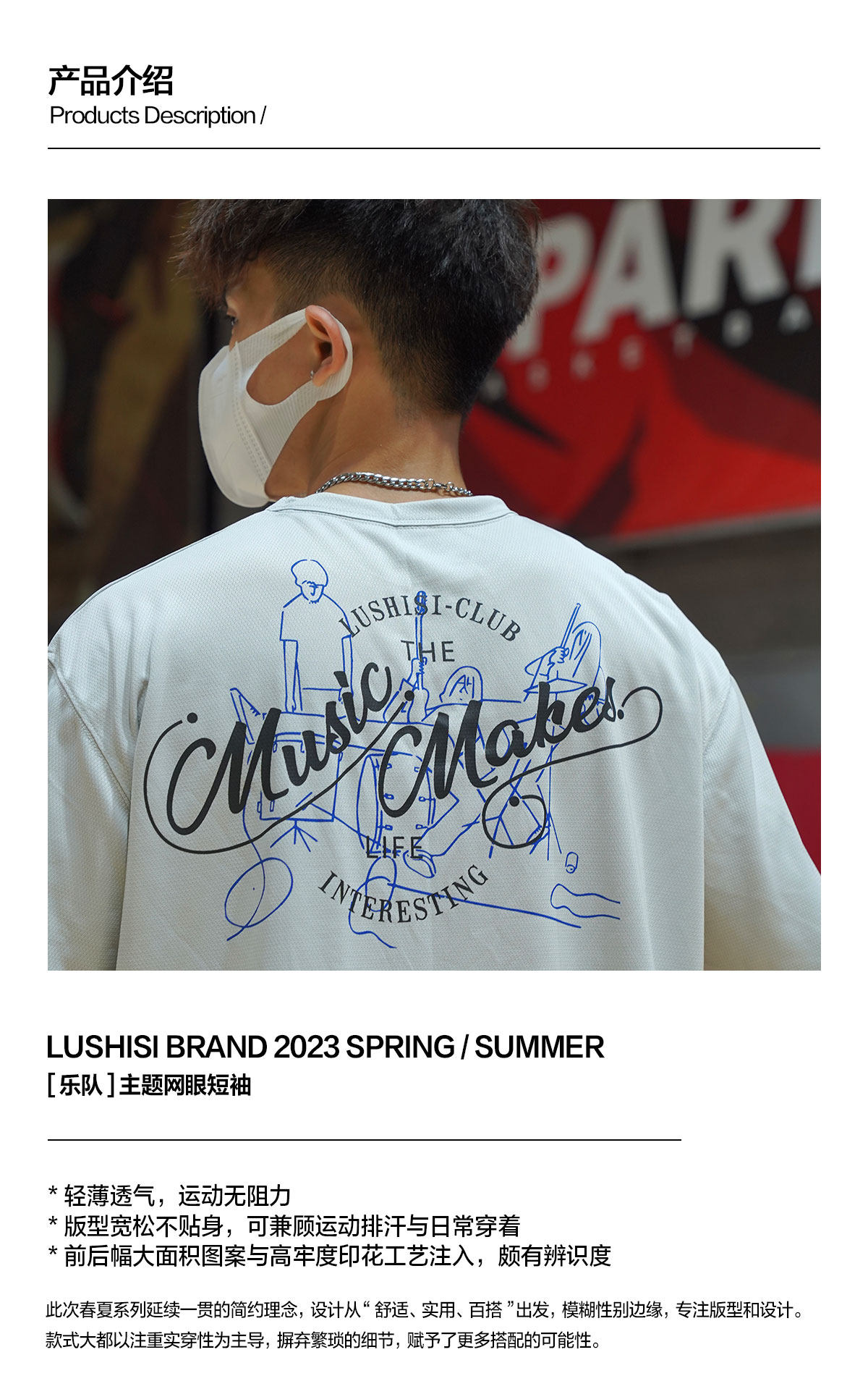 LUSHISI夏季新品速乾網眼運動輕薄透氣短袖T恤寬鬆短袖男[樂隊]