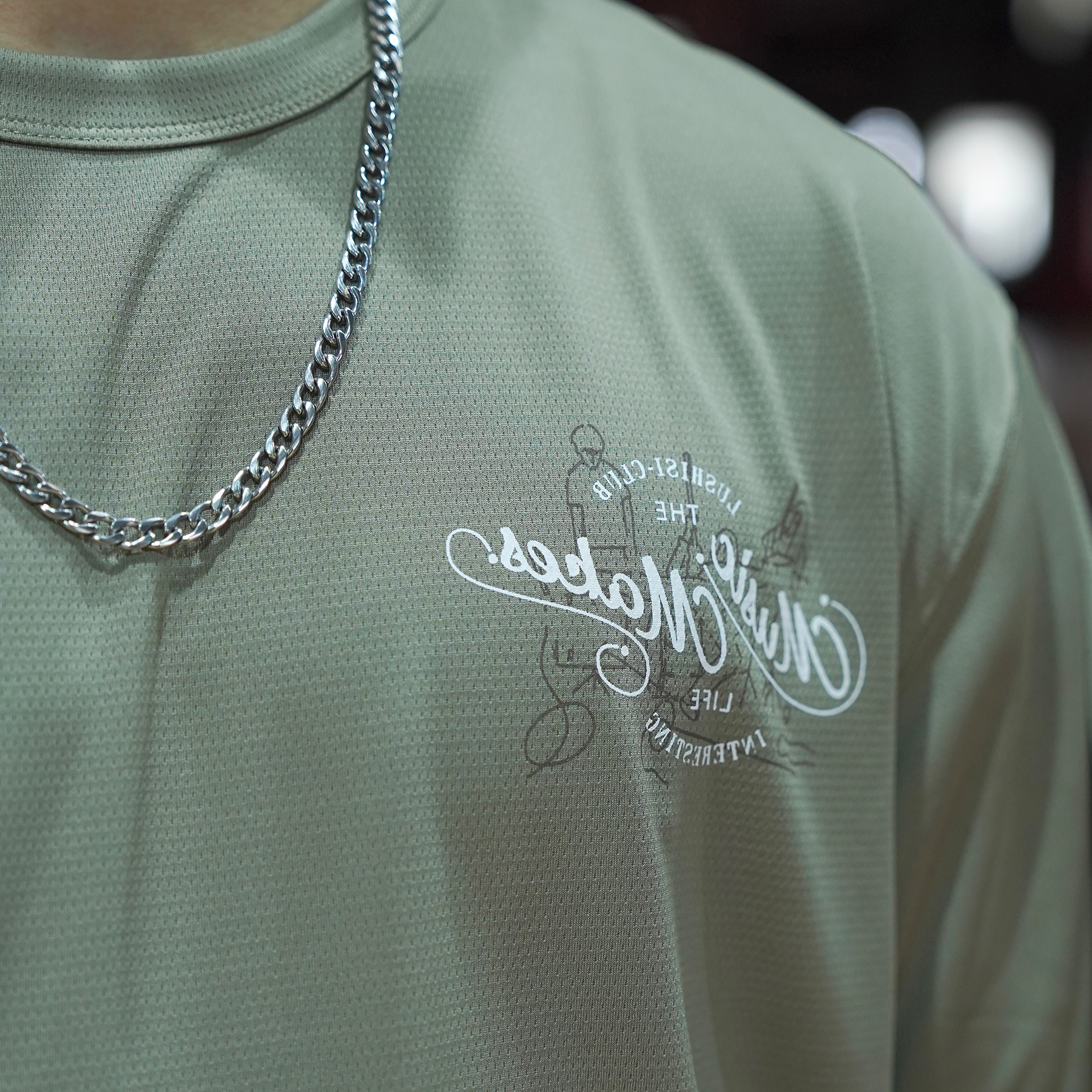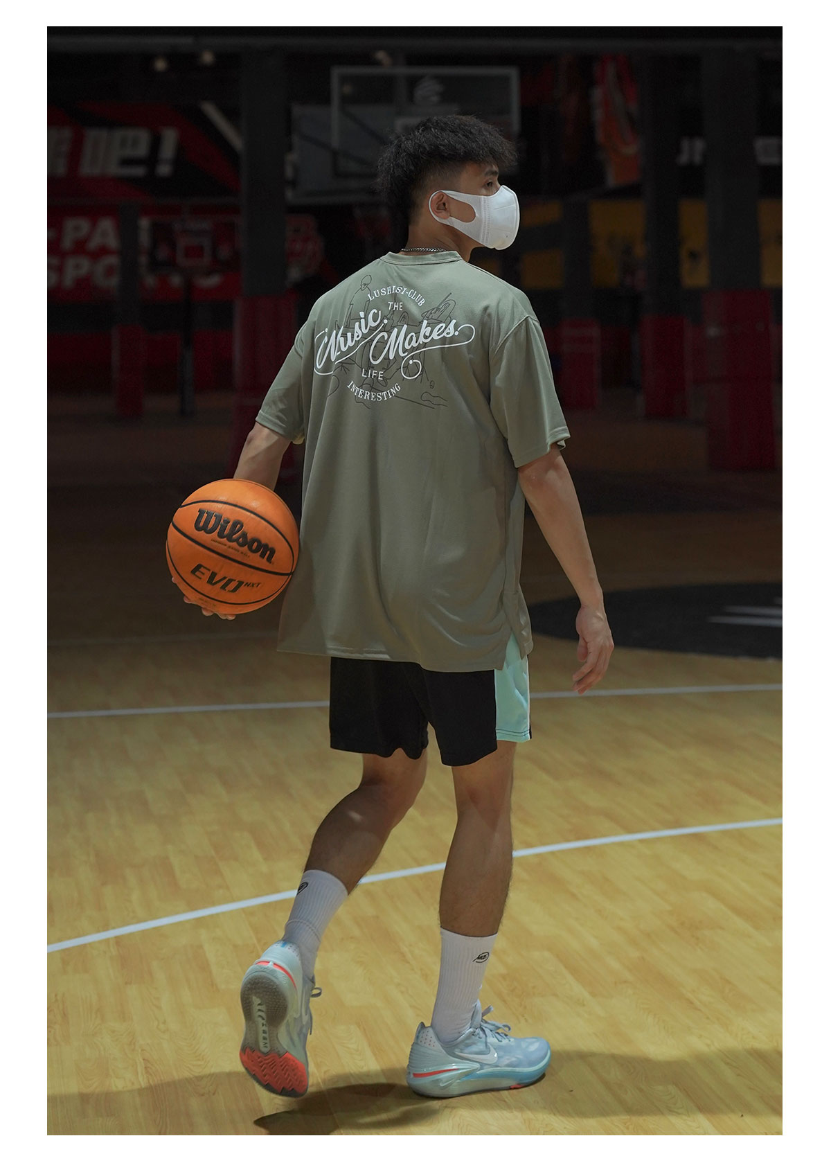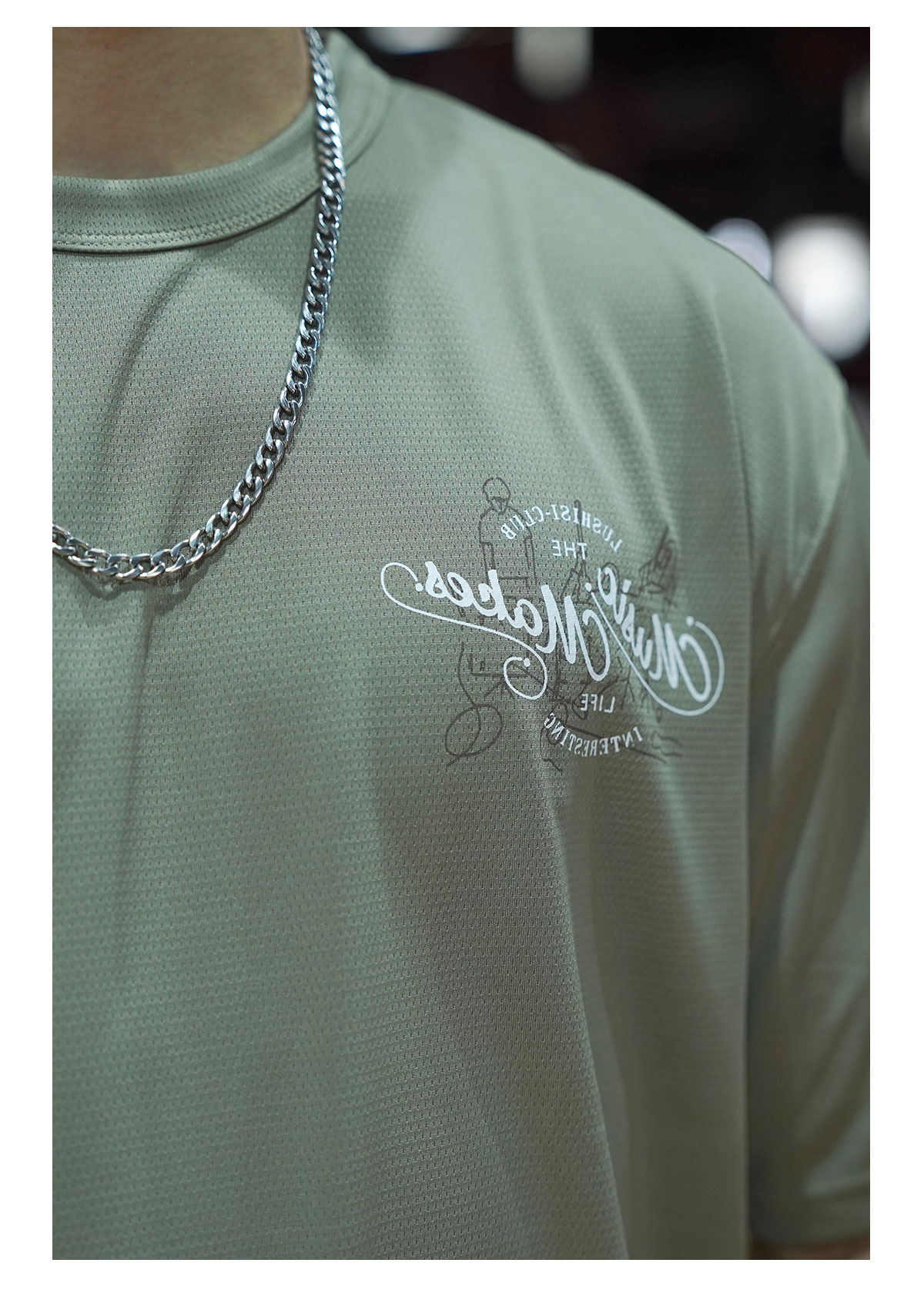 LUSHISI夏季新品速乾網眼運動輕薄透氣短袖T恤寬鬆短袖男[樂隊]