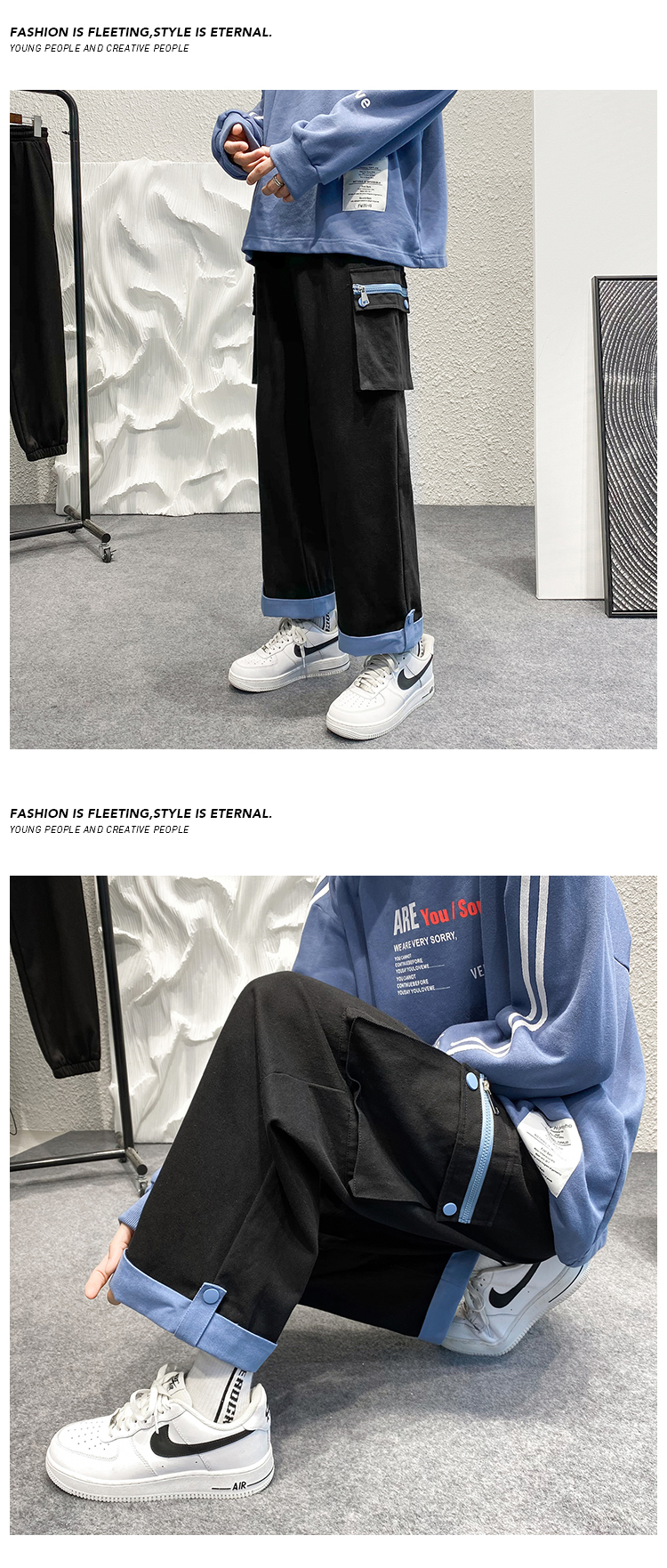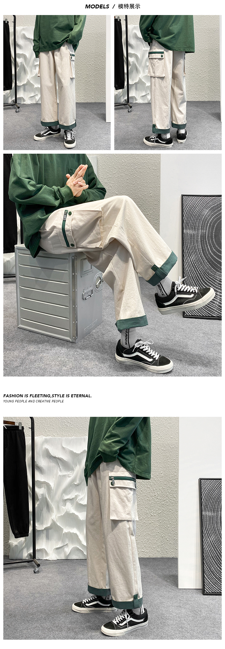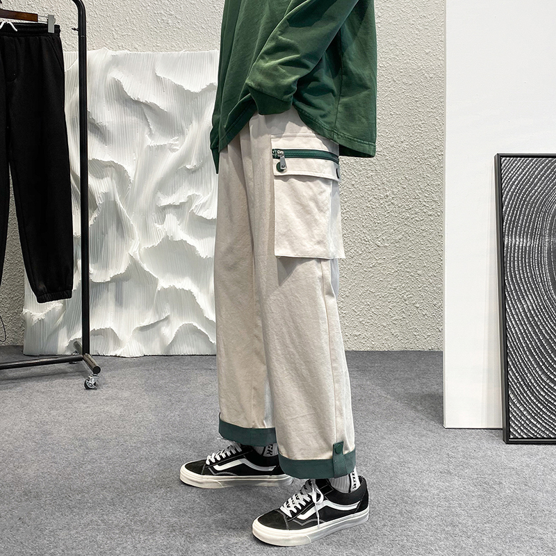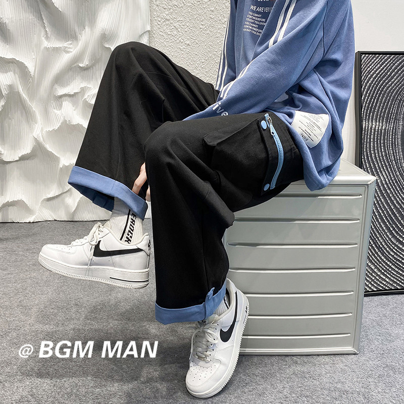 大尺碼工裝褲男春夏季闊腿直筒寬鬆顯瘦小個子褲子ins潮高街hiphop