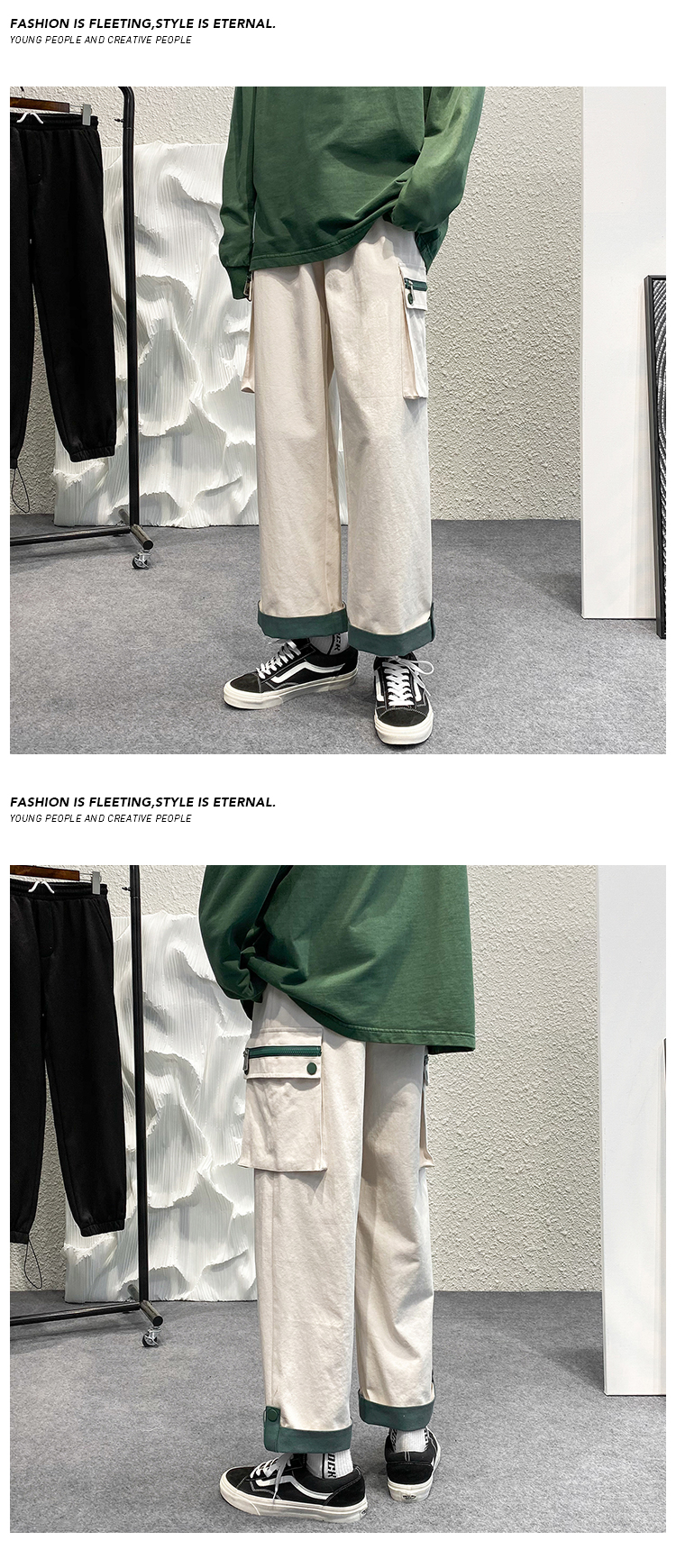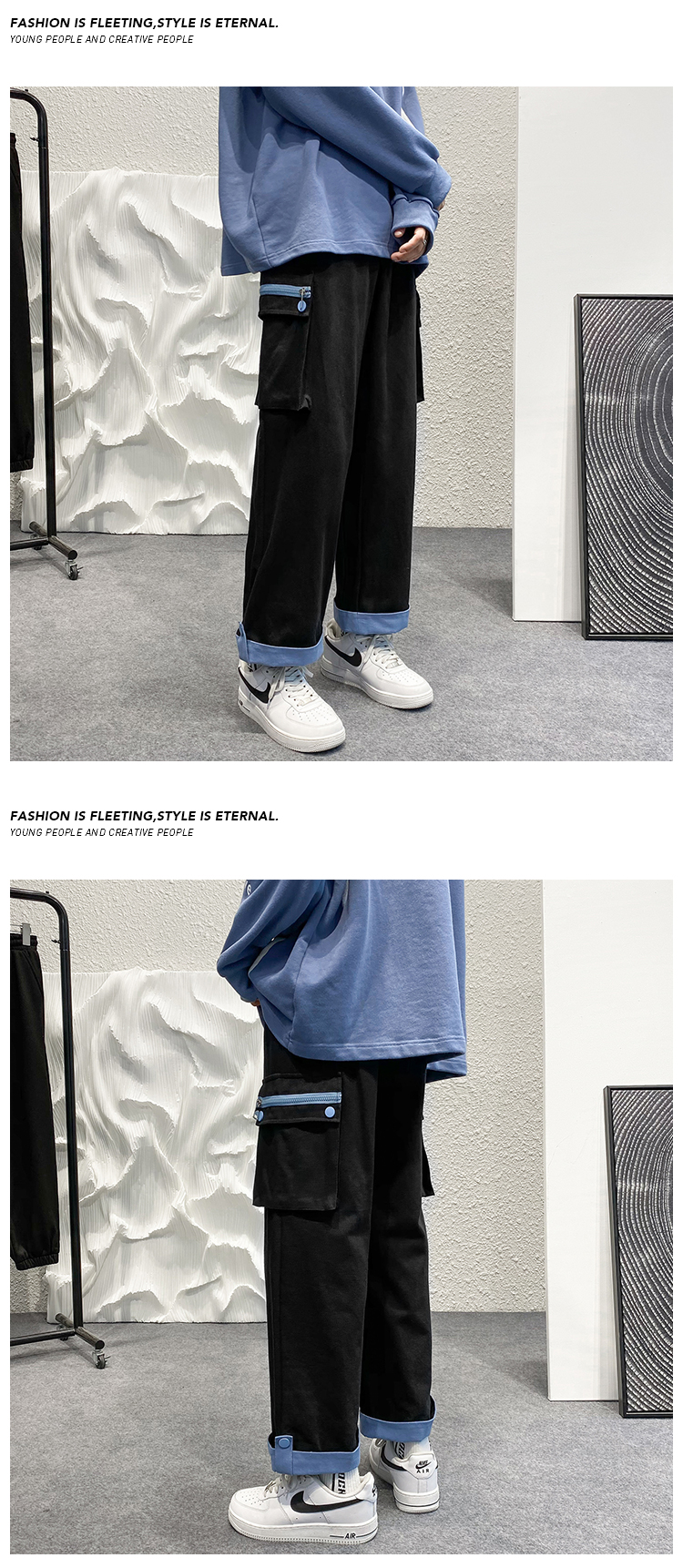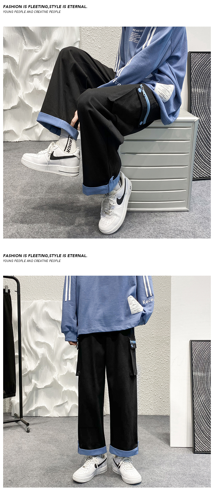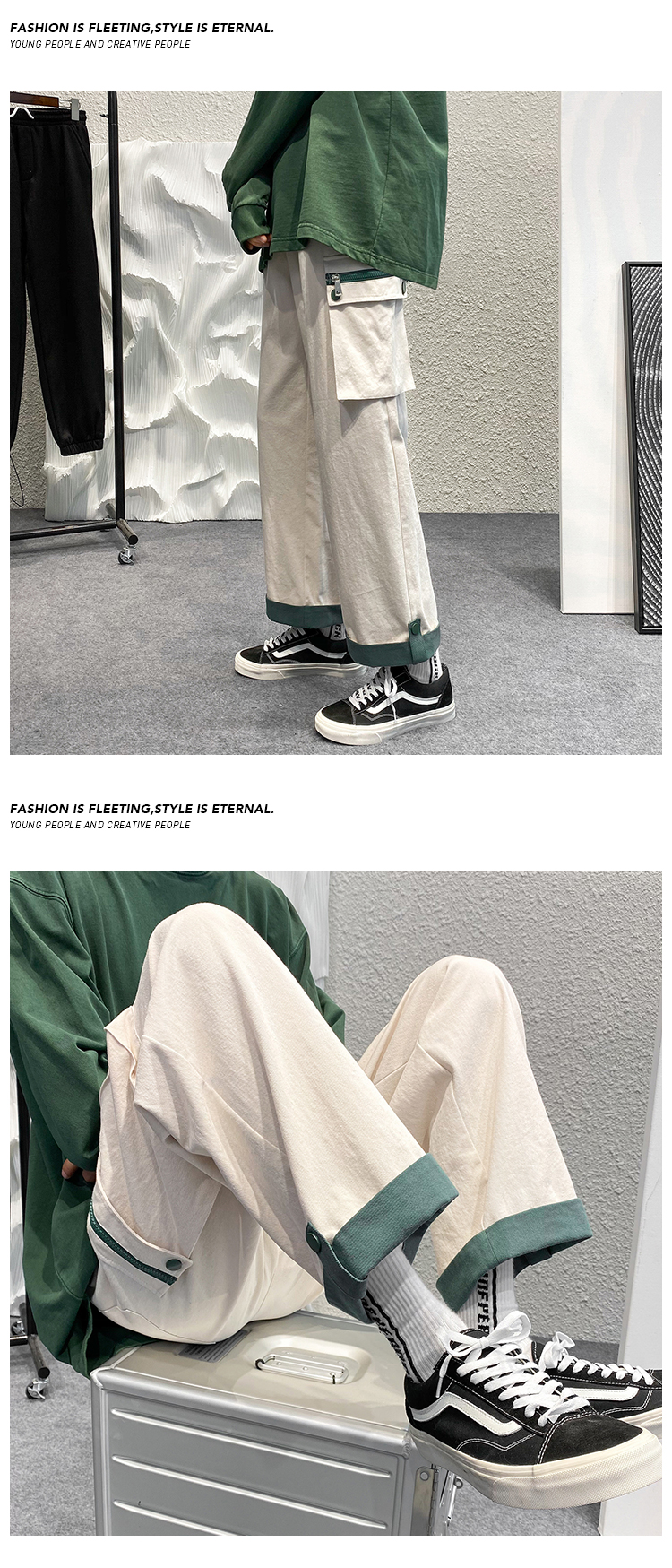 大尺碼工裝褲男春夏季闊腿直筒寬鬆顯瘦小個子褲子ins潮高街hiphop
