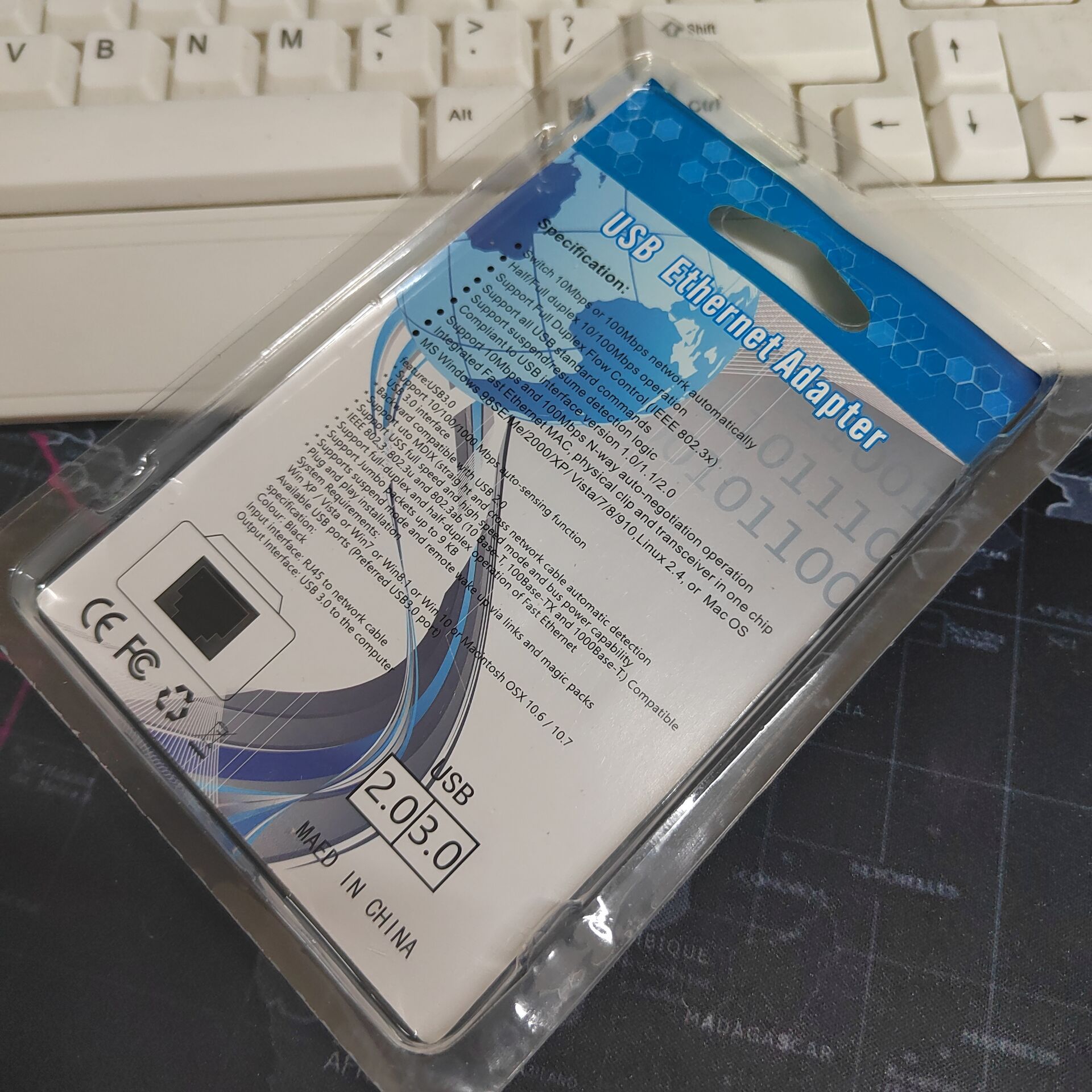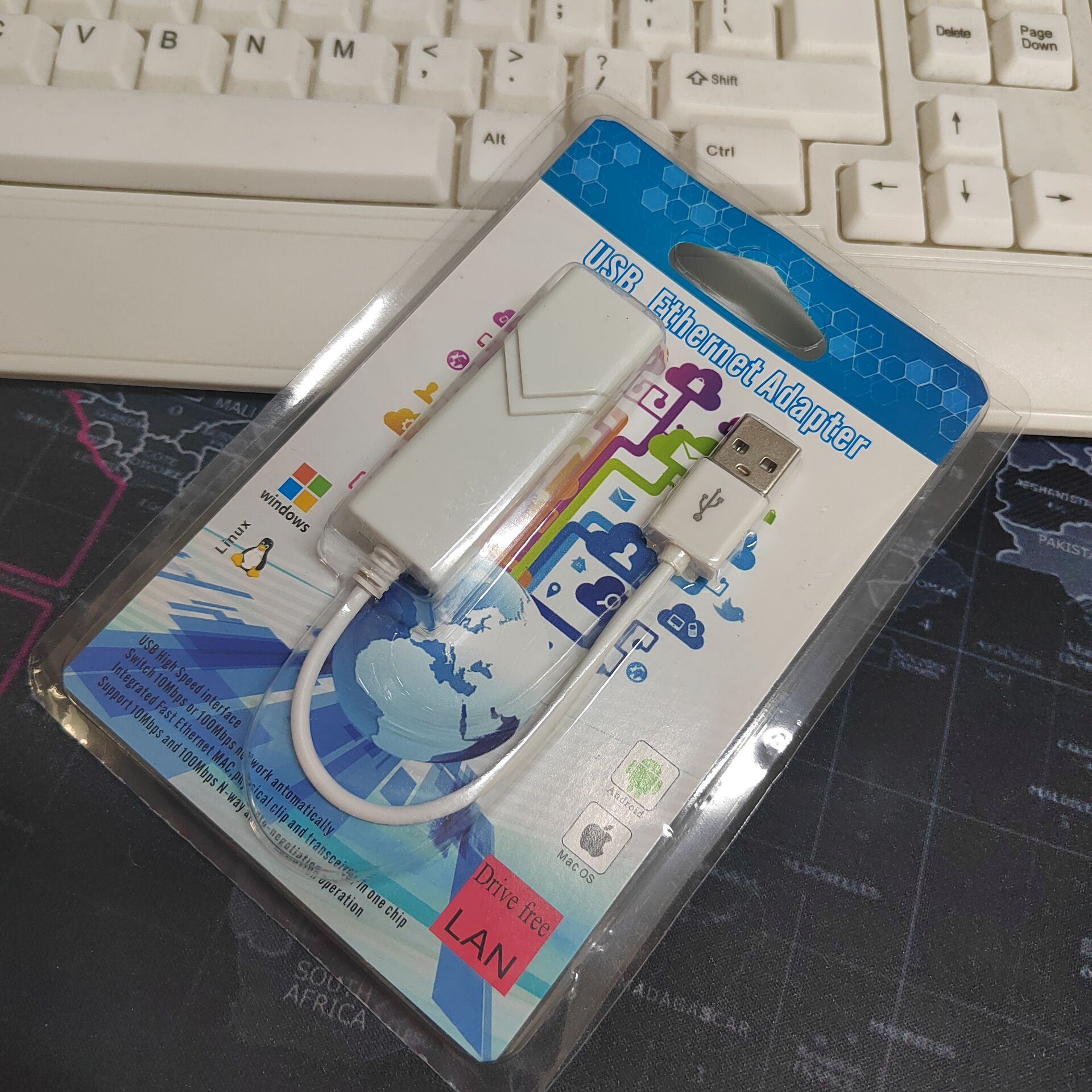 [免驱款]9900芯片白色带线USB2.0 免驱便携式网卡