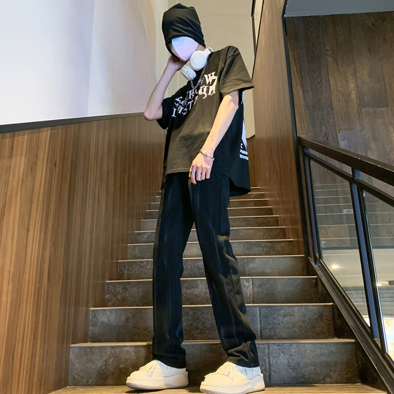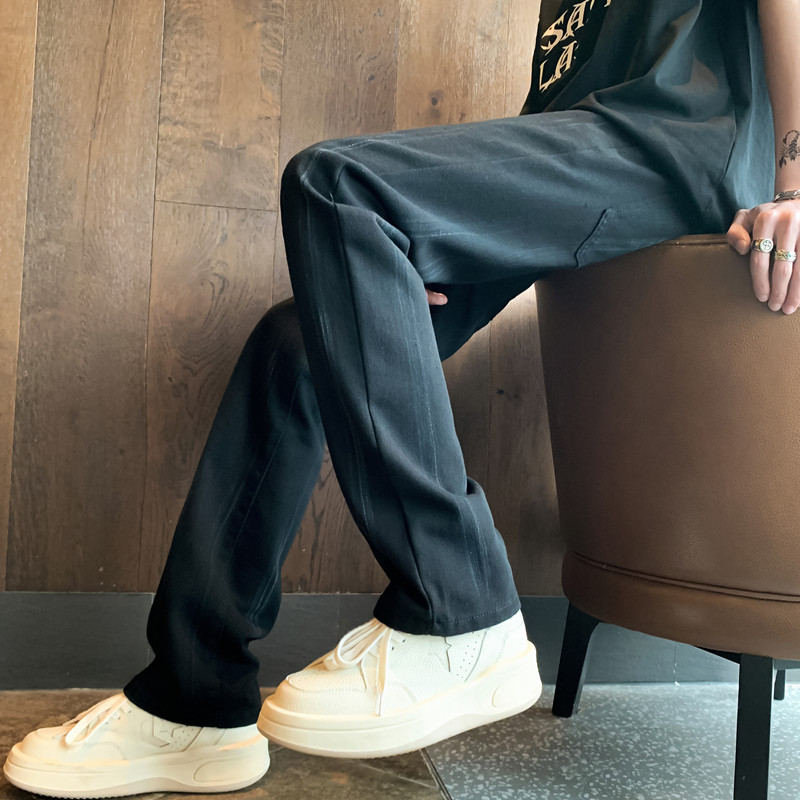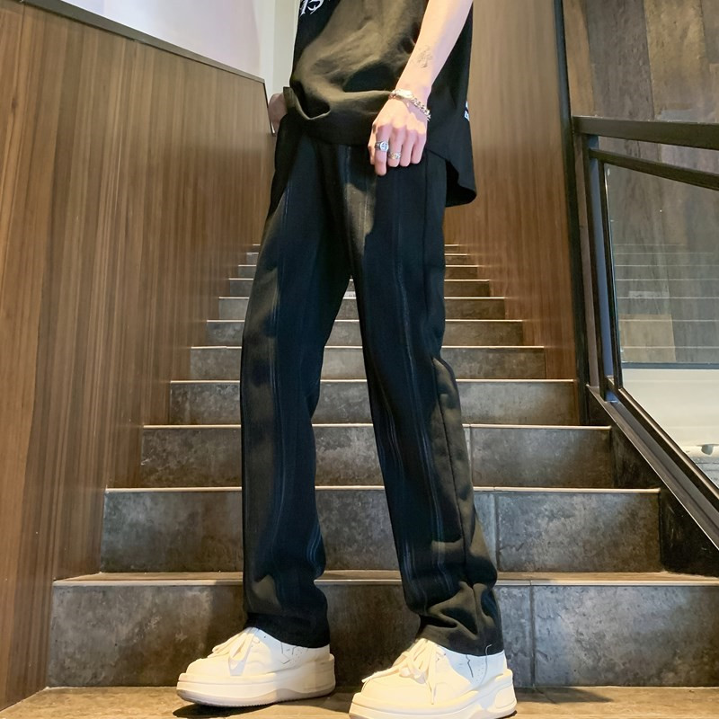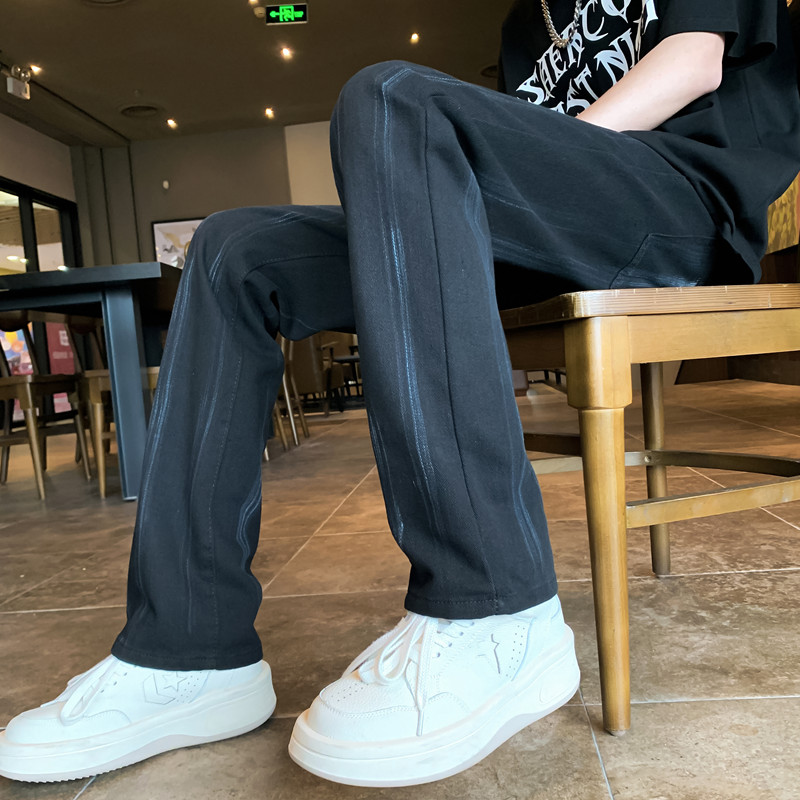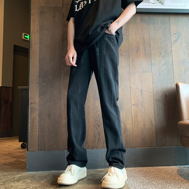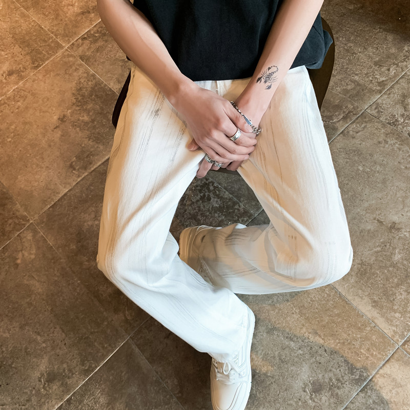 白色紮染牛仔褲夏季薄款高級感痞帥直筒褲子美式高街微喇修身長褲