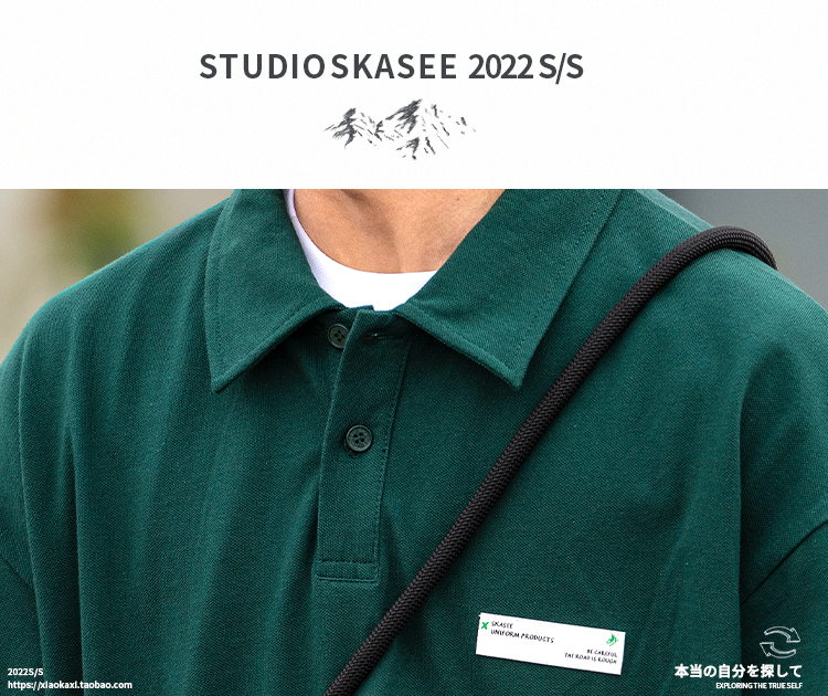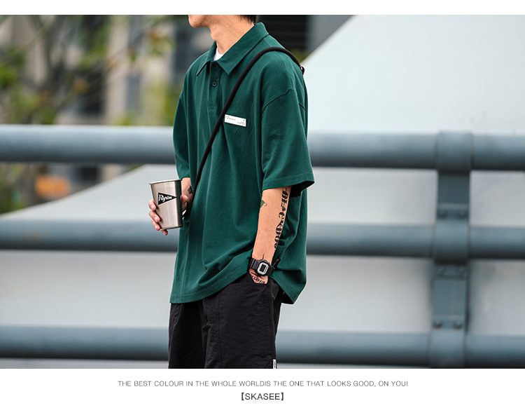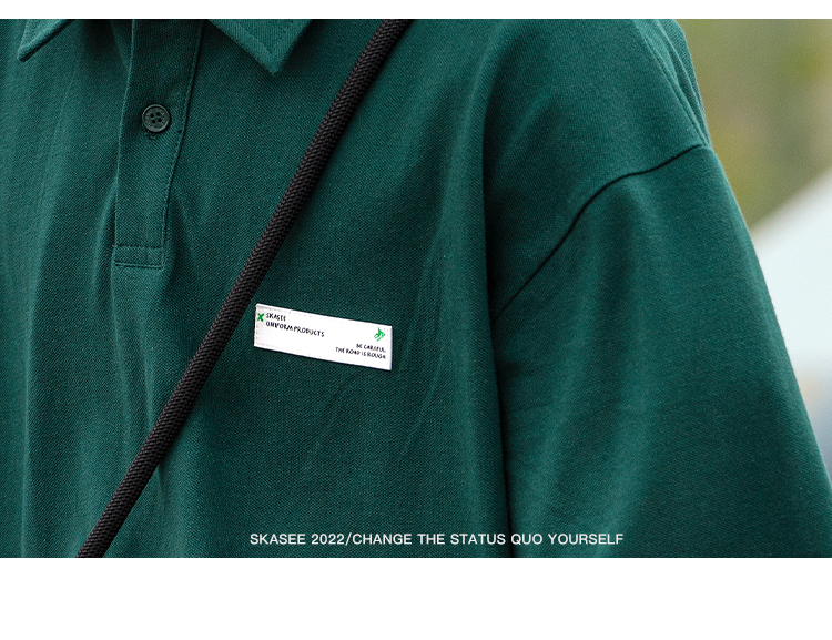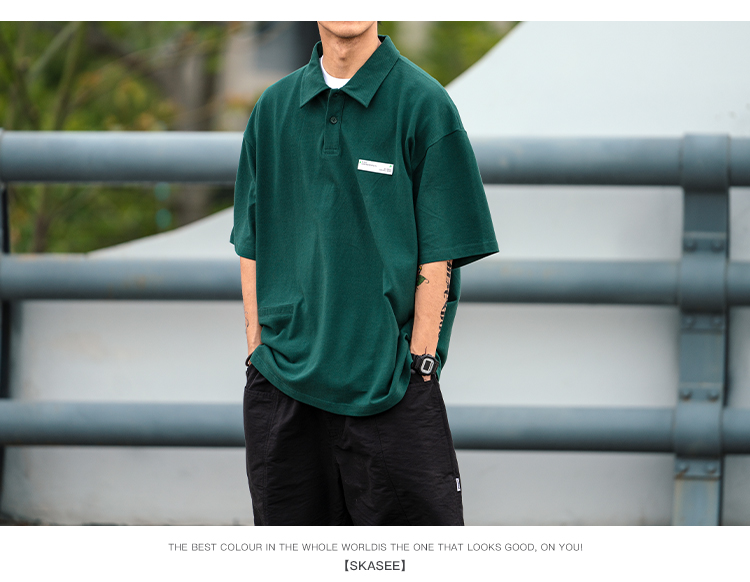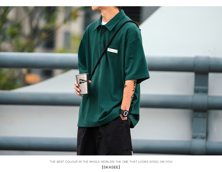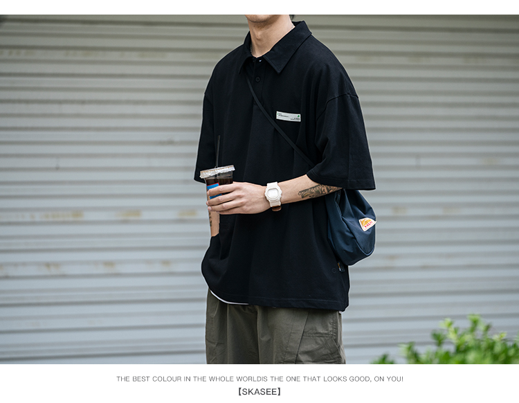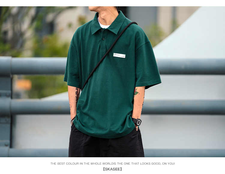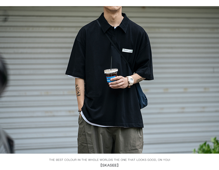 SKASEE 22SS日系休閒polo衫男寬鬆車標貼重磅翻領T恤百搭純棉短袖潮