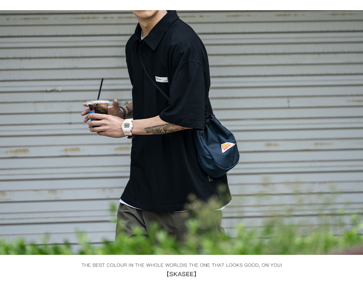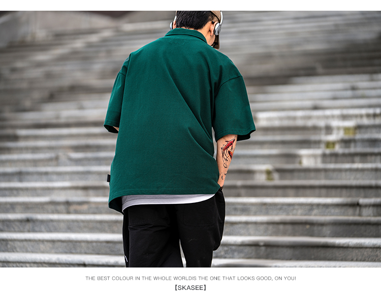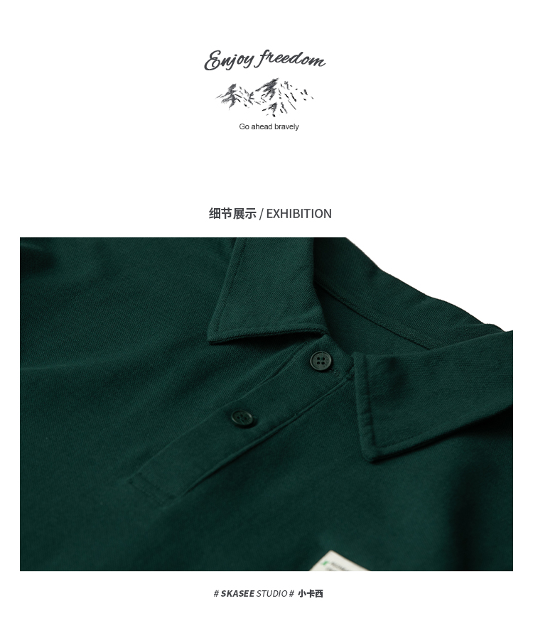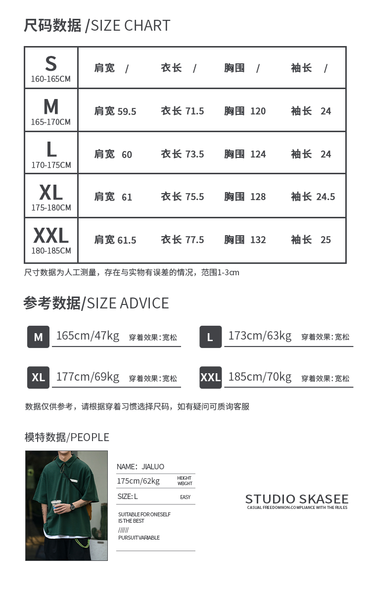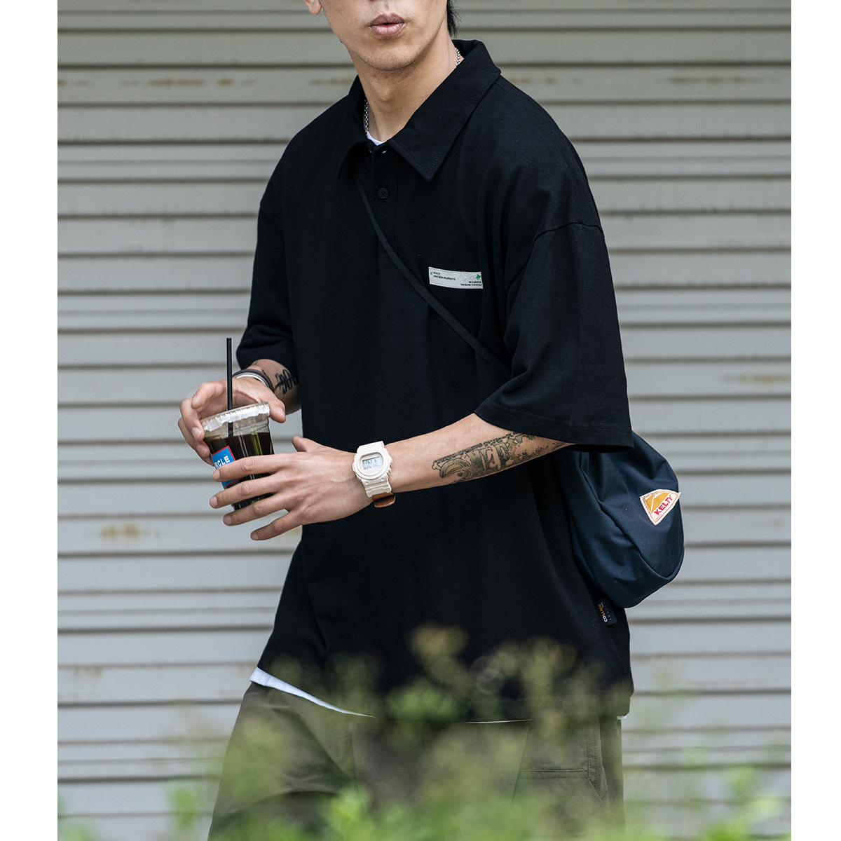 SKASEE 22SS日系休閒polo衫男寬鬆車標貼重磅翻領T恤百搭純棉短袖潮
