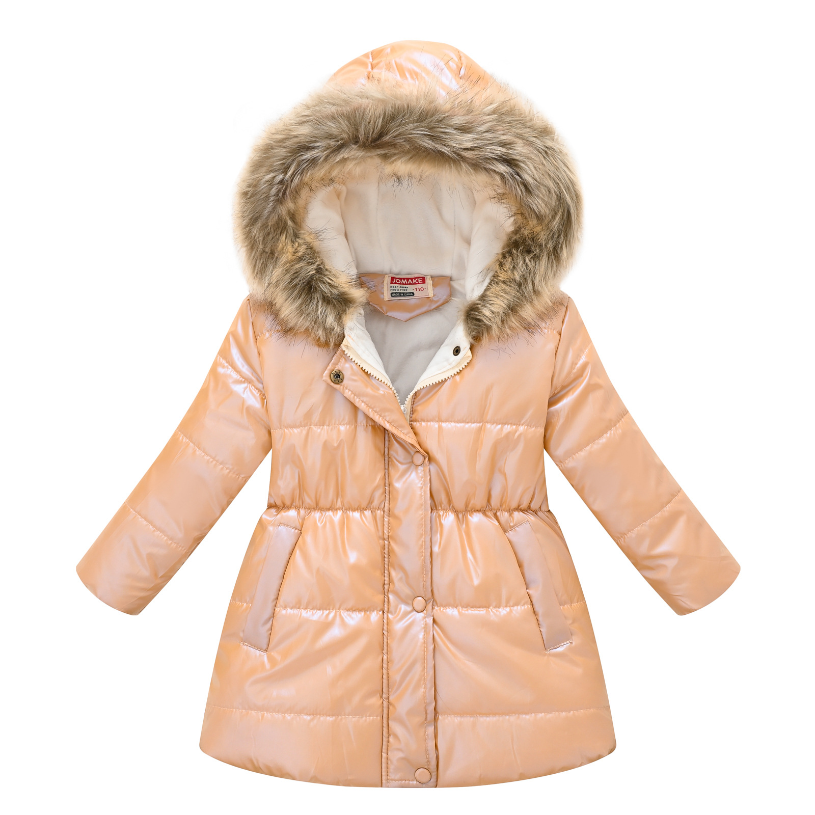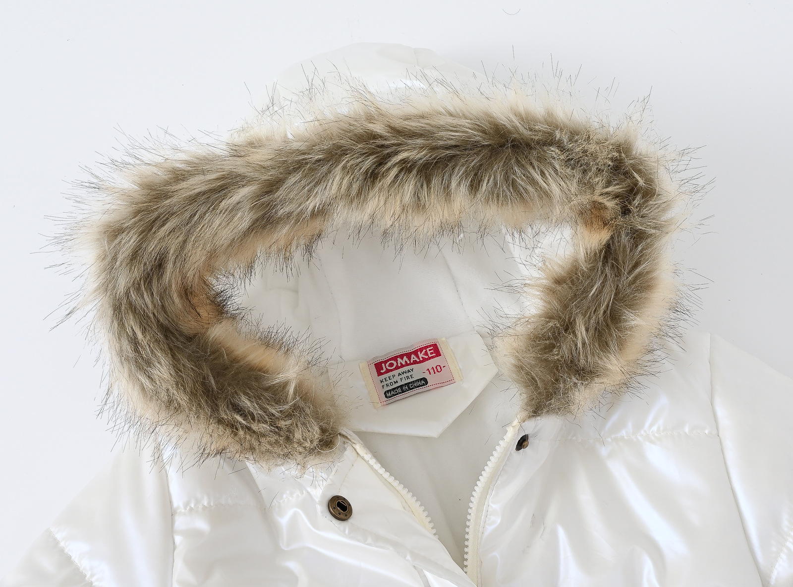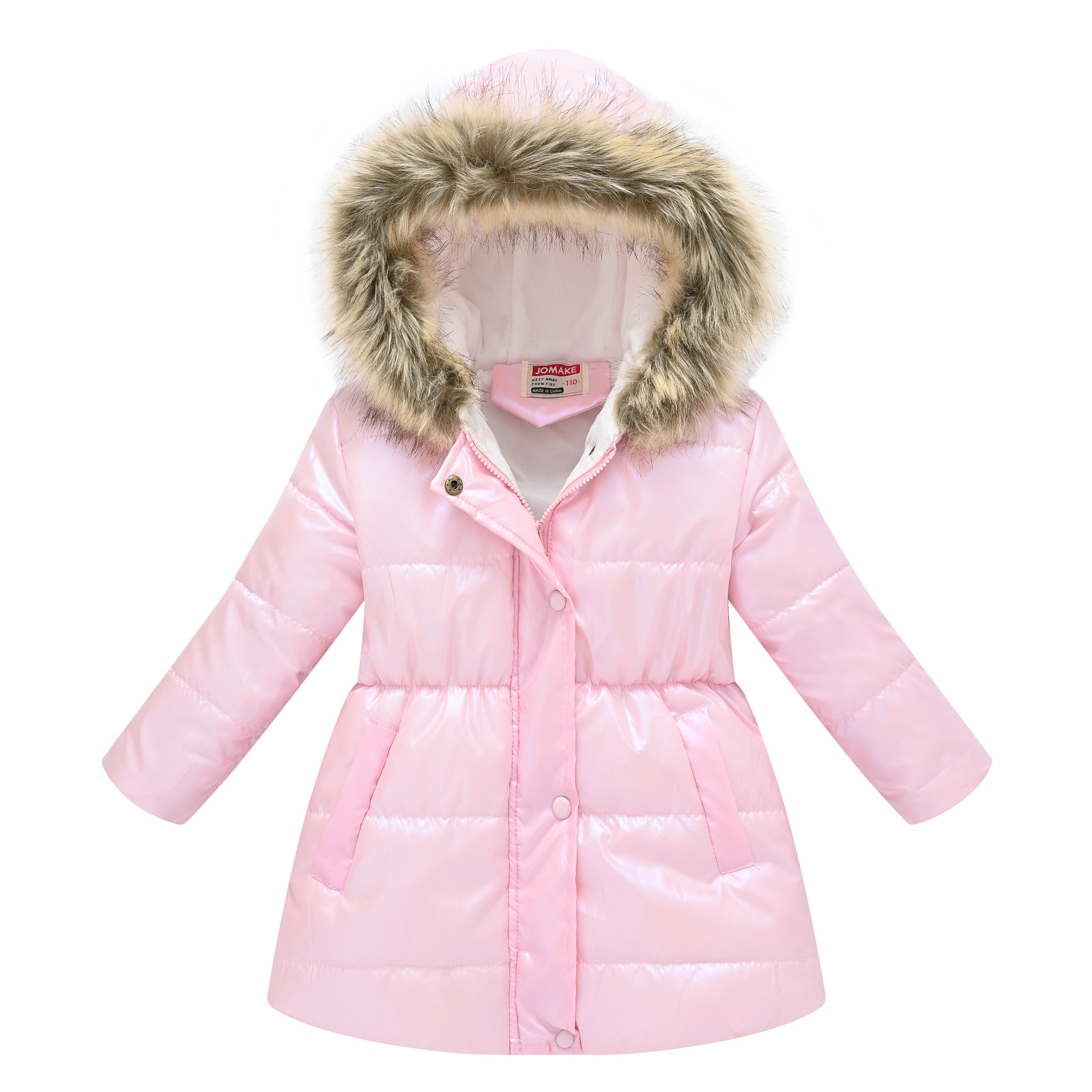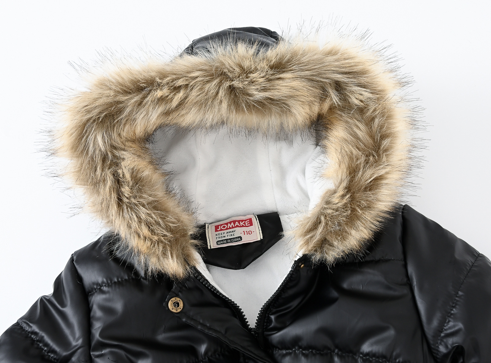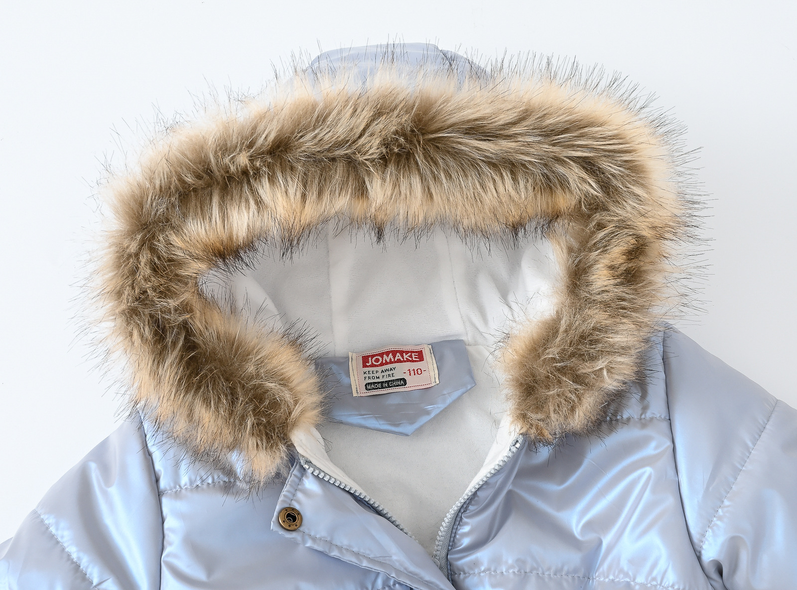儿童棉衣冬季新款大童中长款棉袄男女童亮面加厚连帽毛领棉服外套