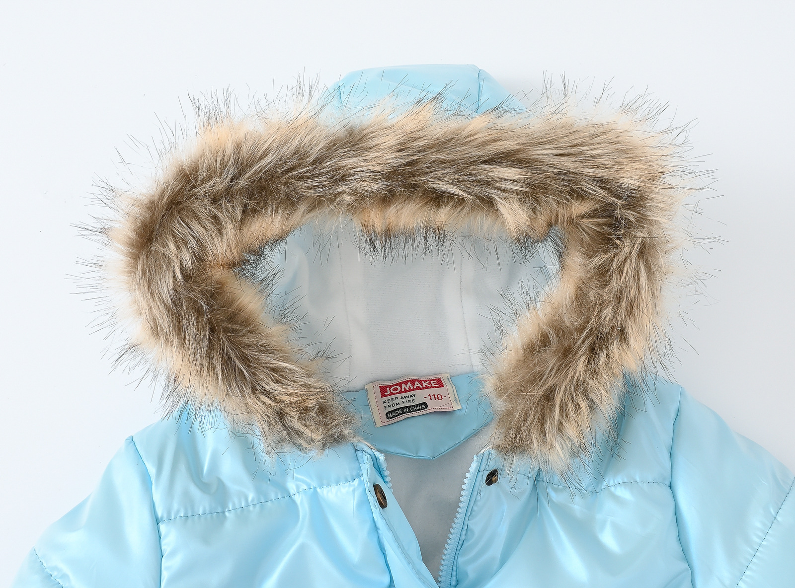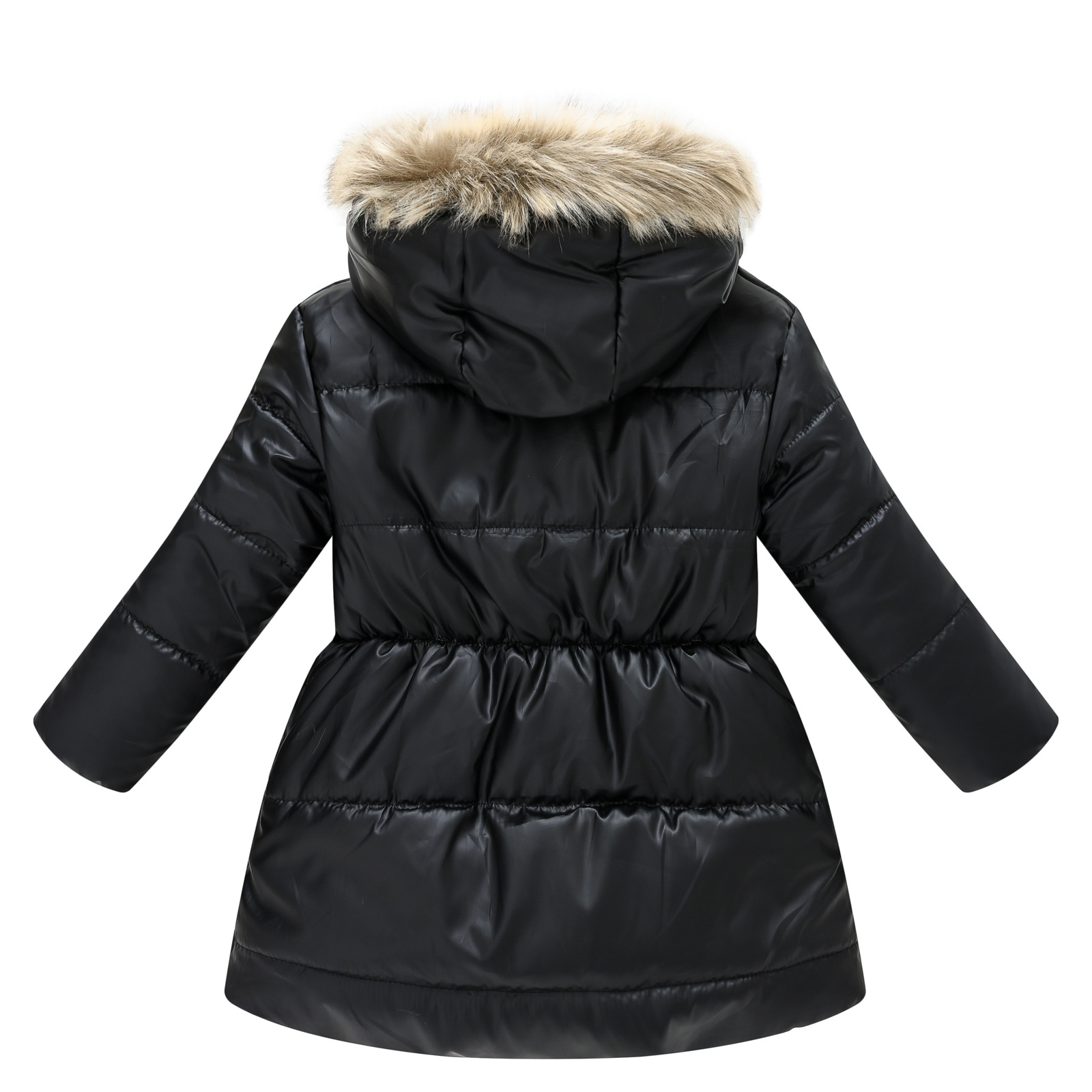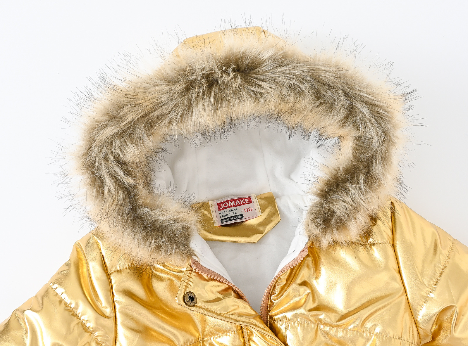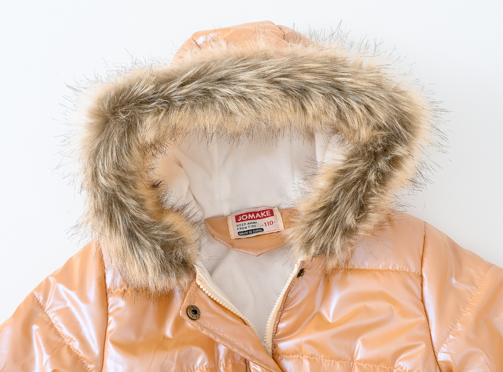 儿童棉衣冬季新款大童中长款棉袄男女童亮面加厚连帽毛领棉服外套