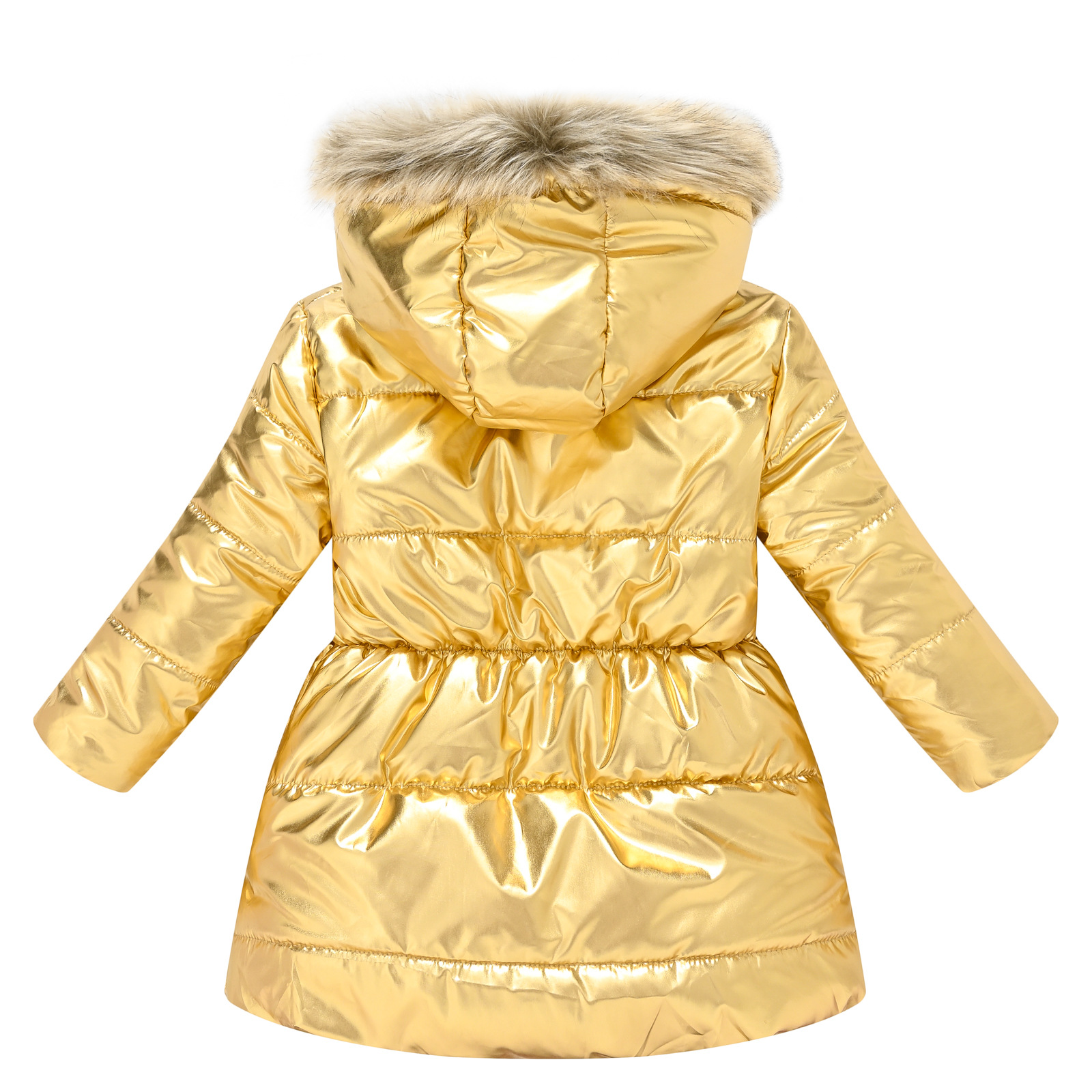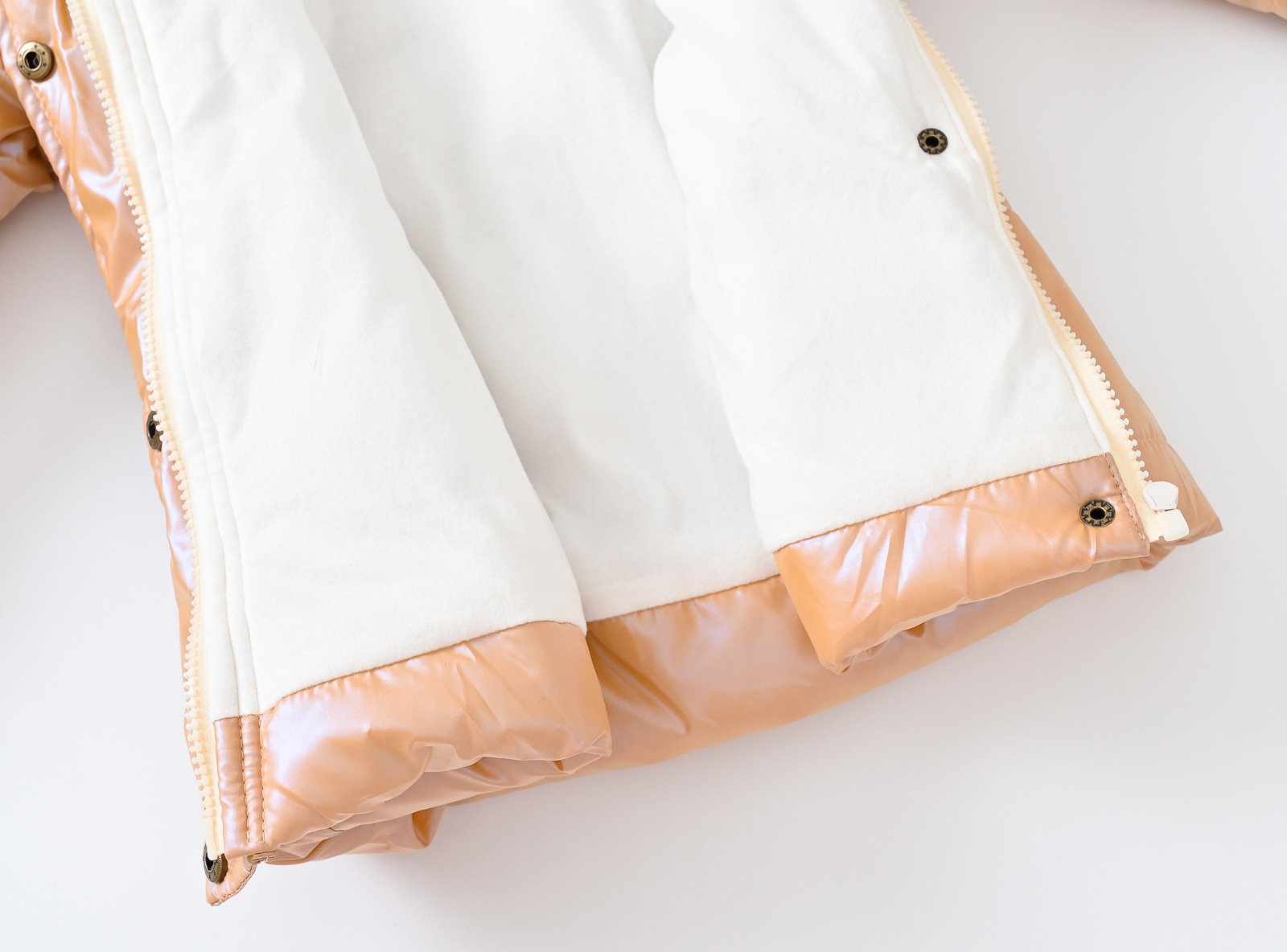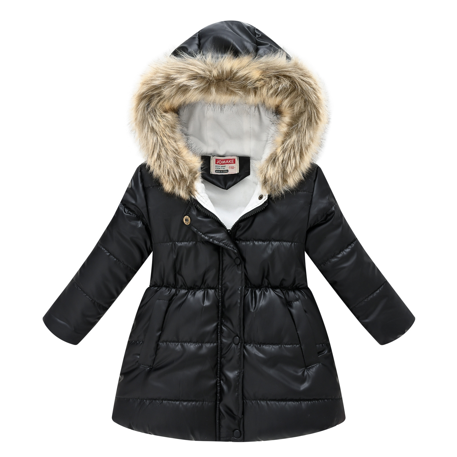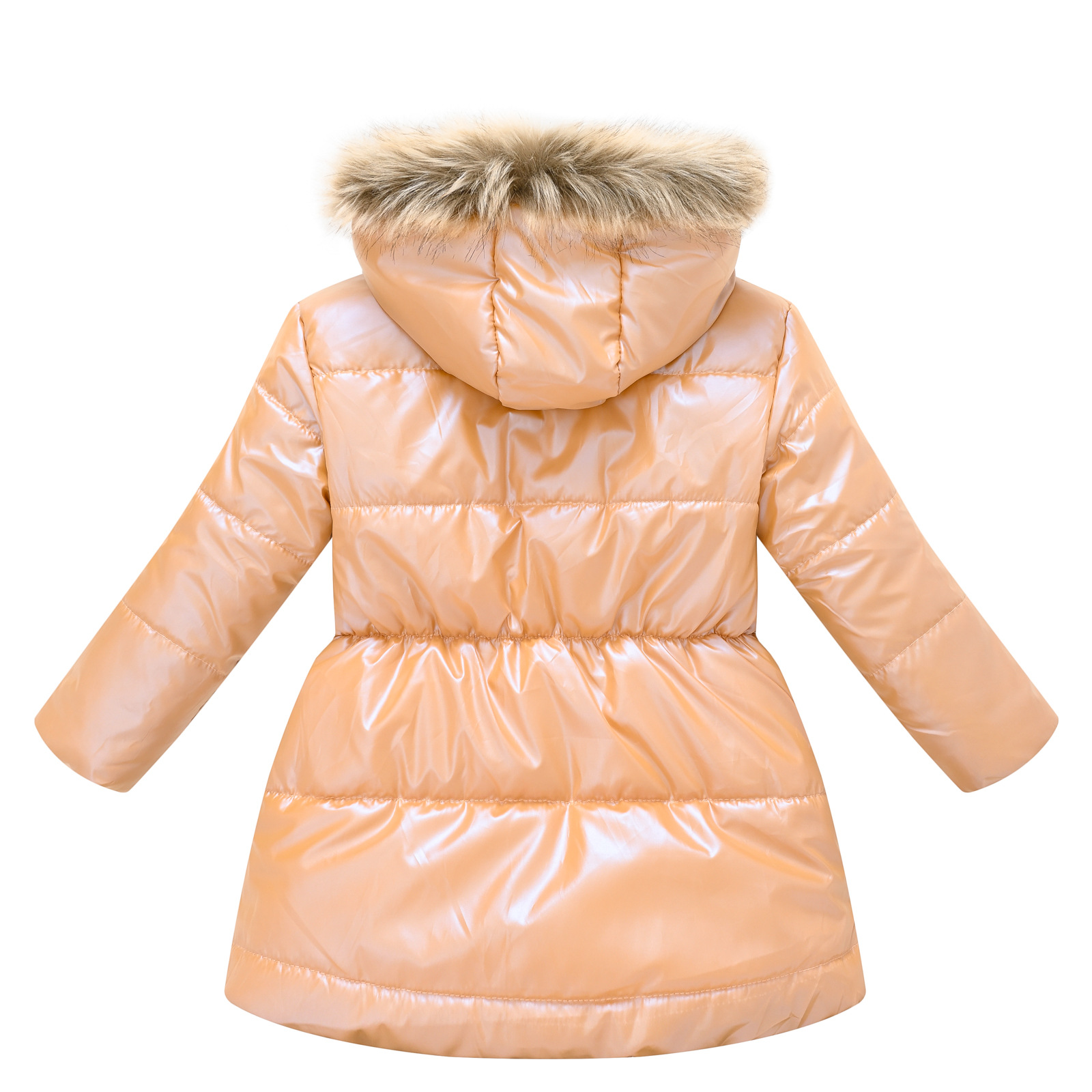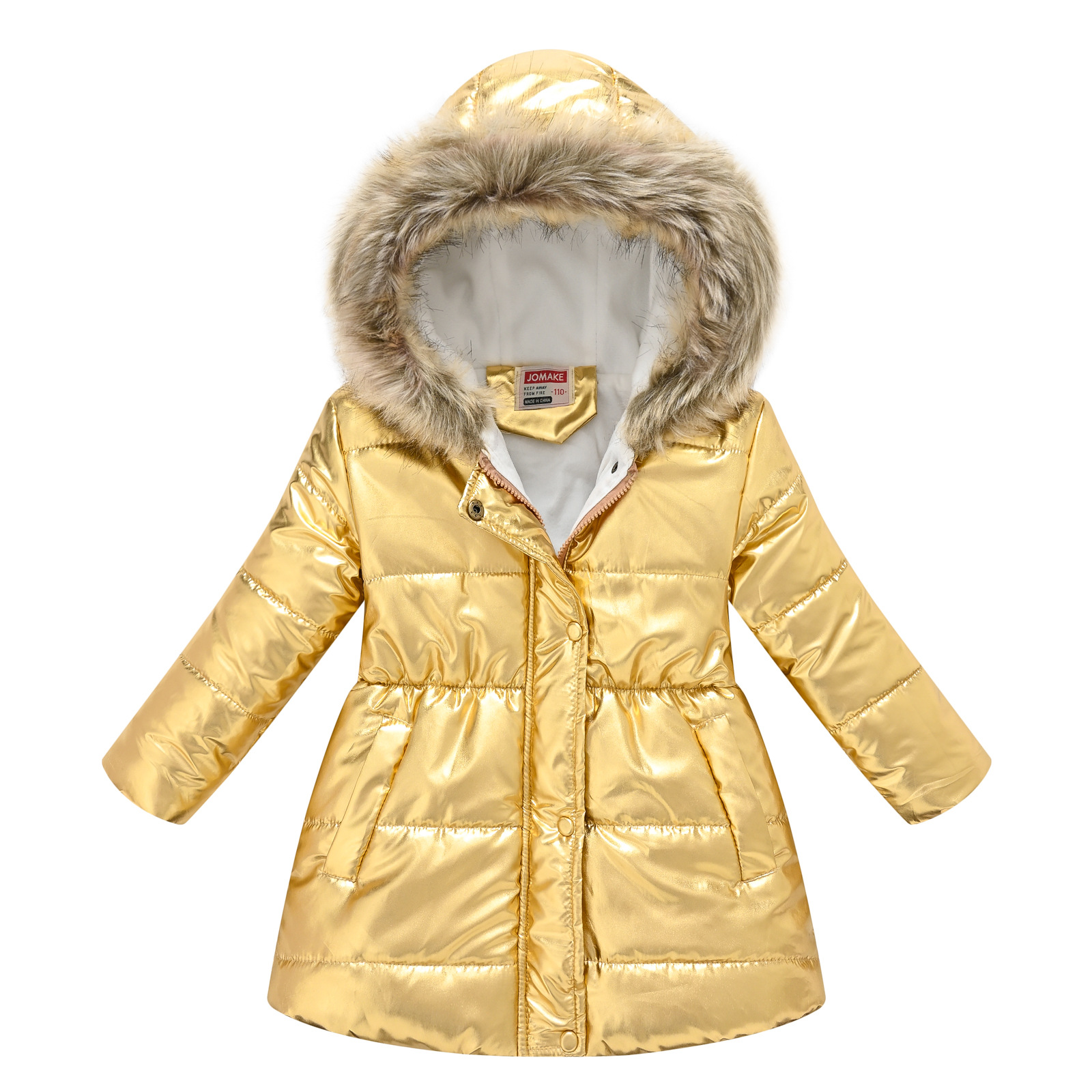 儿童棉衣冬季新款大童中长款棉袄男女童亮面加厚连帽毛领棉服外套