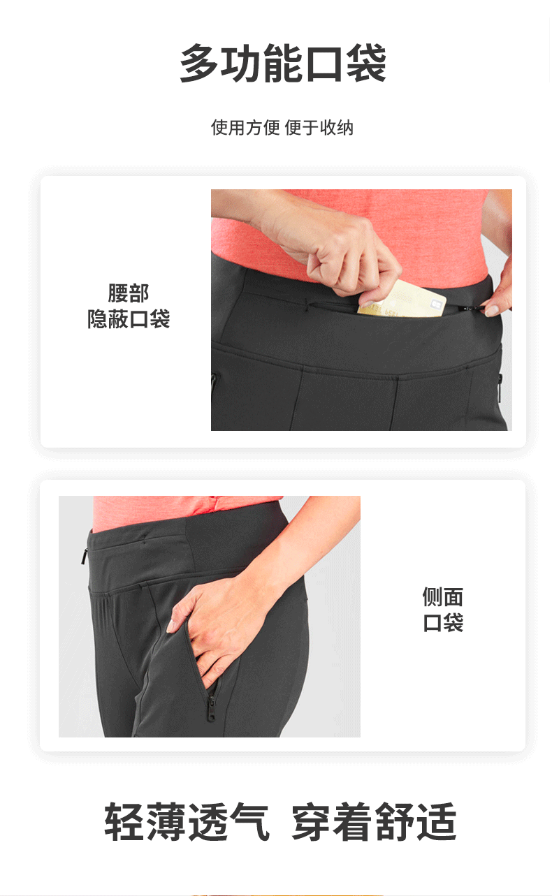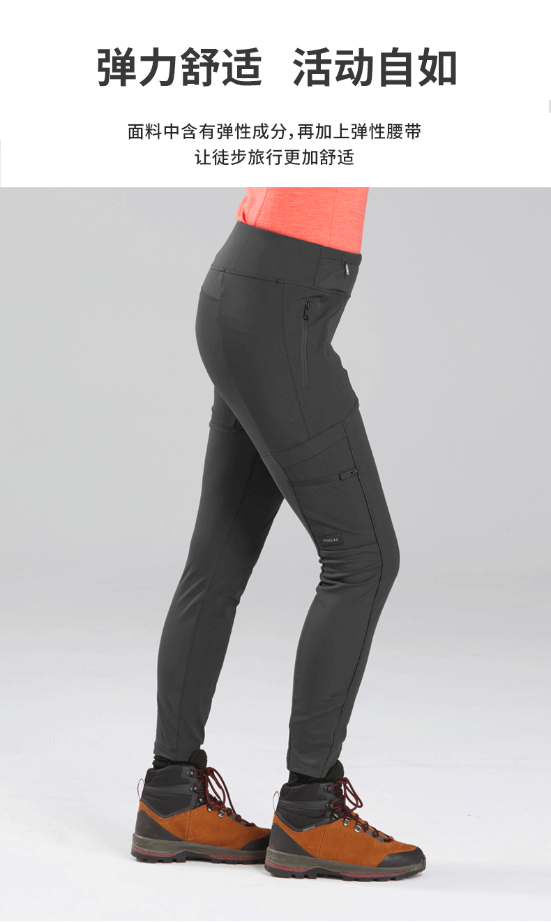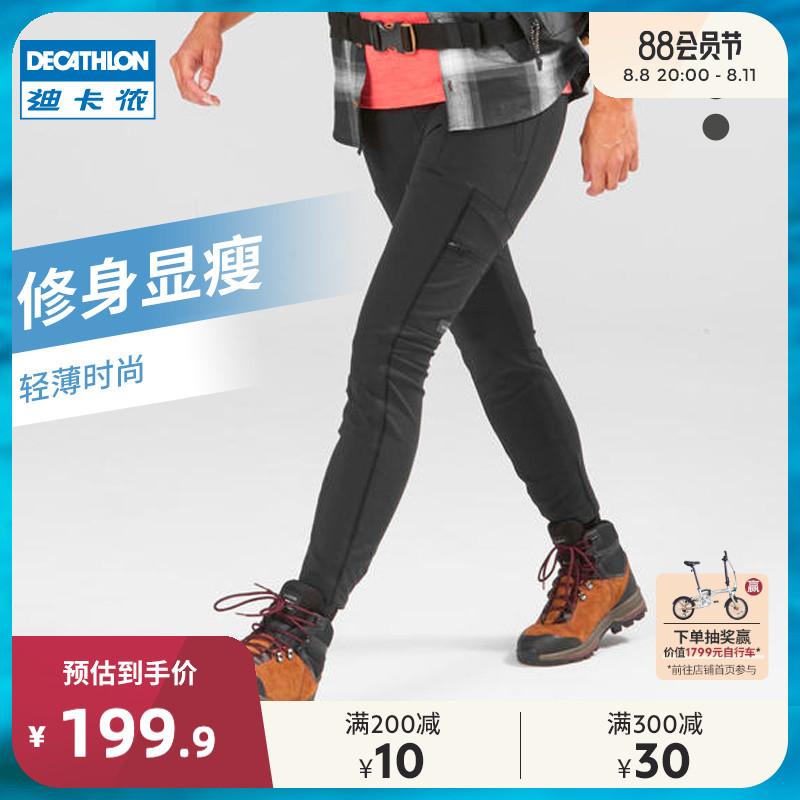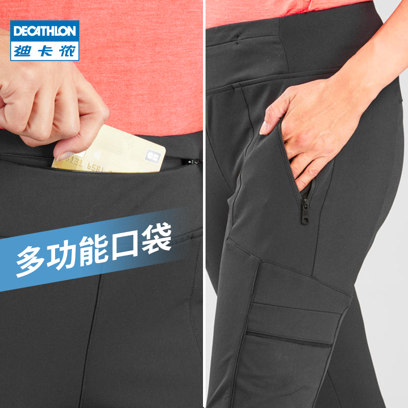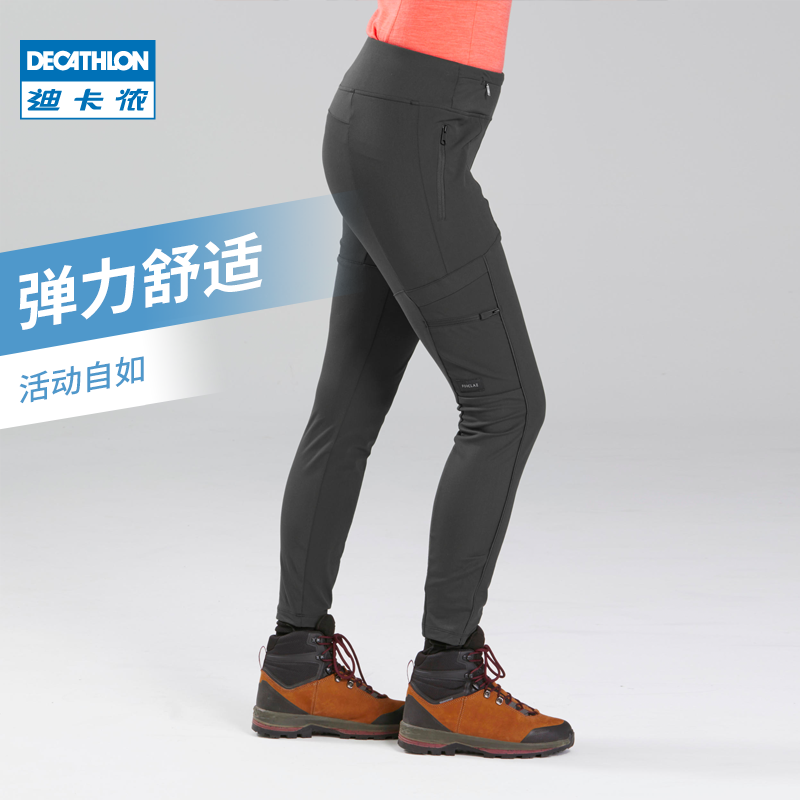 迪卡儂戶外速乾褲女夏季薄款登山褲徒步修身彈力運動長褲春秋ODT2