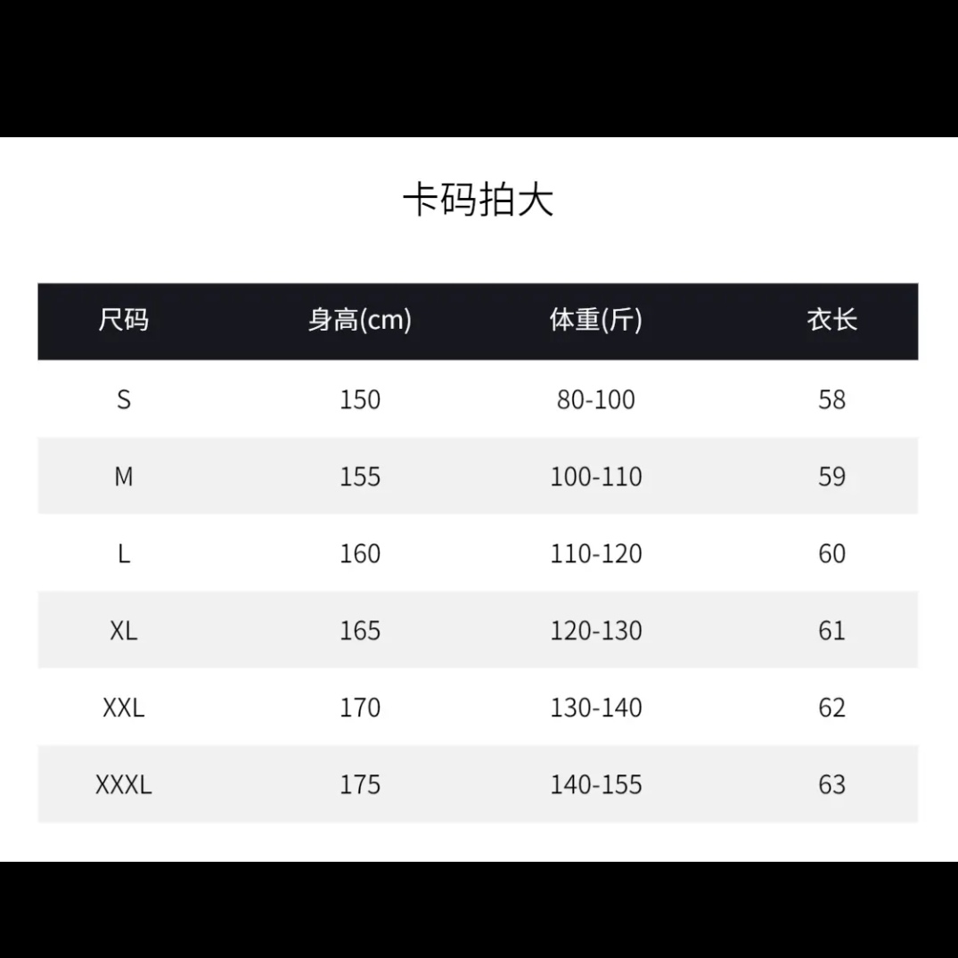 尺碼 S(建議80-100斤),M(建議100-110斤),L(建議110-120斤),XL(建議120-130斤),2XL(建議130-145斤),3XL(建議145-160斤)