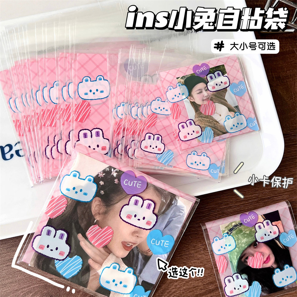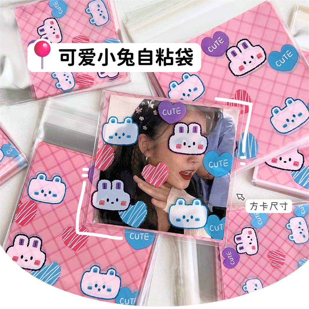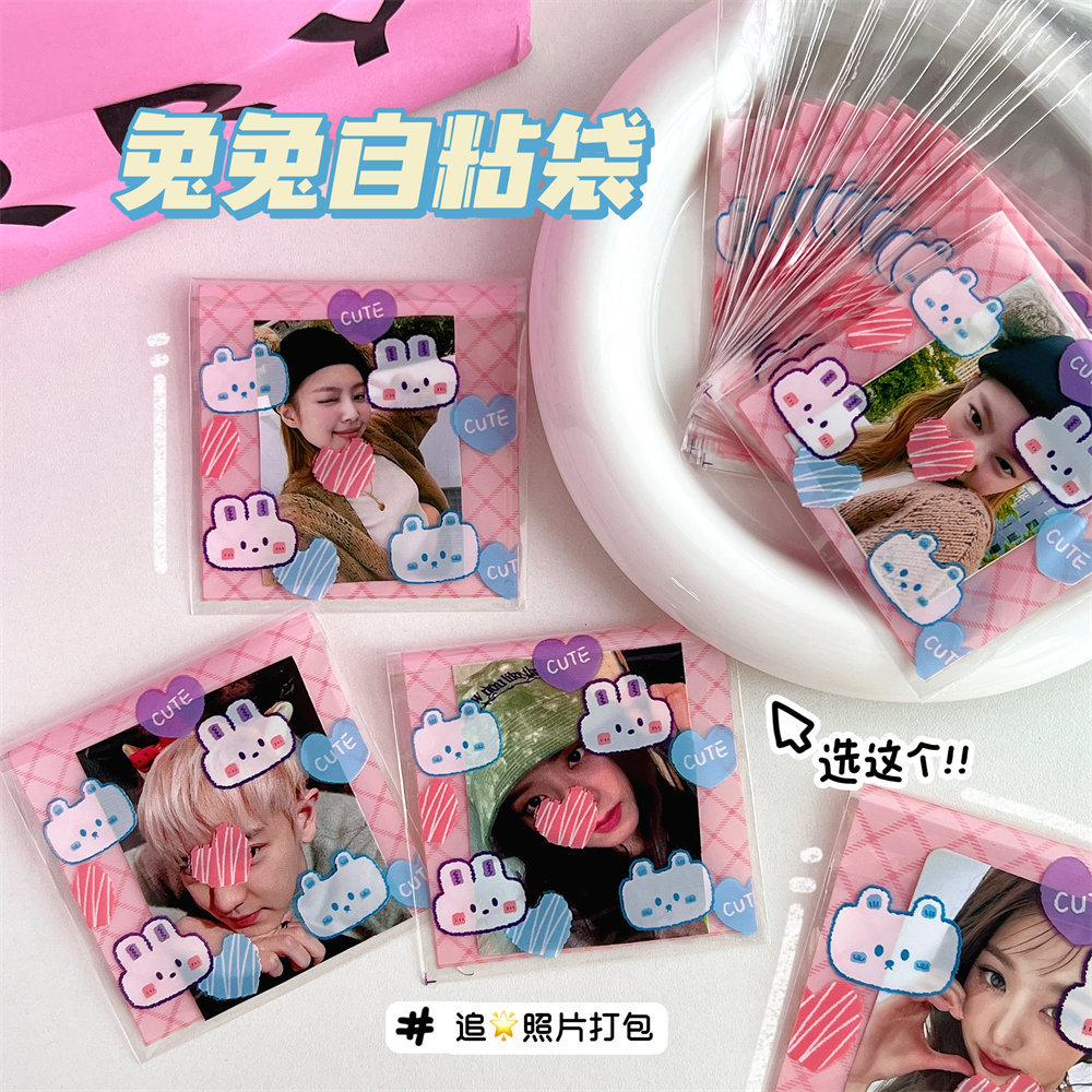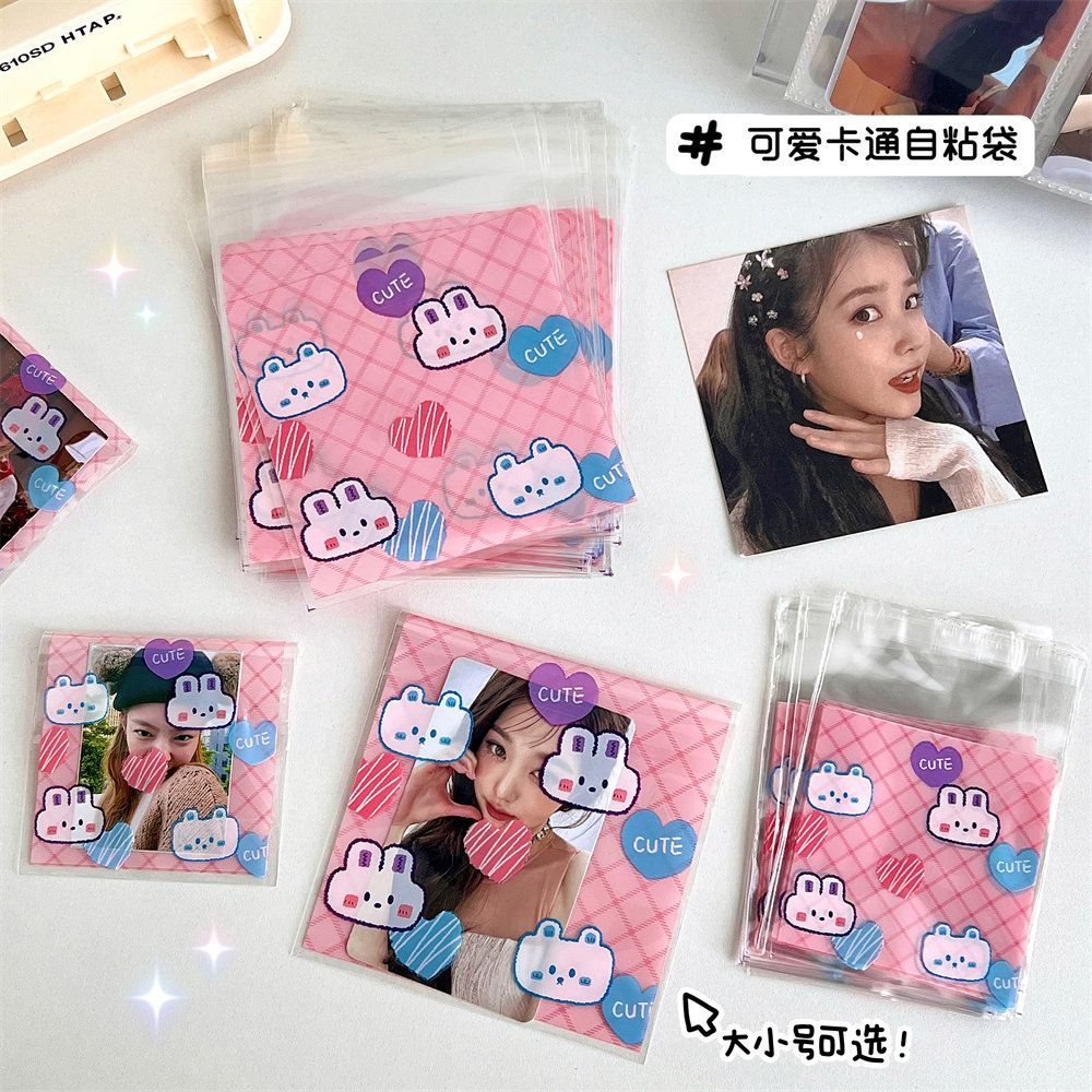 高颜值可爱卡通小熊小兔打包自粘袋爱豆明星小卡套保护袋自封袋子