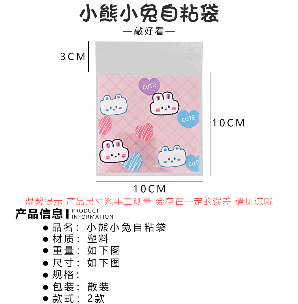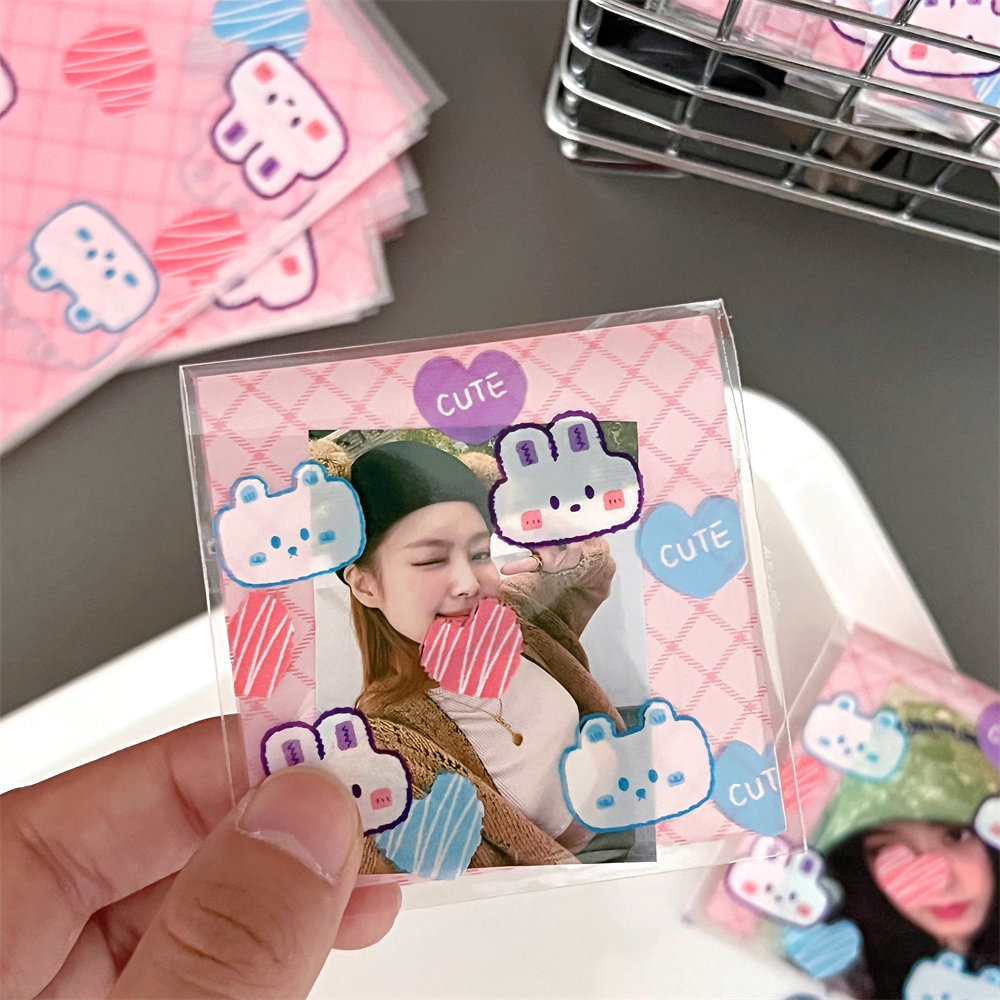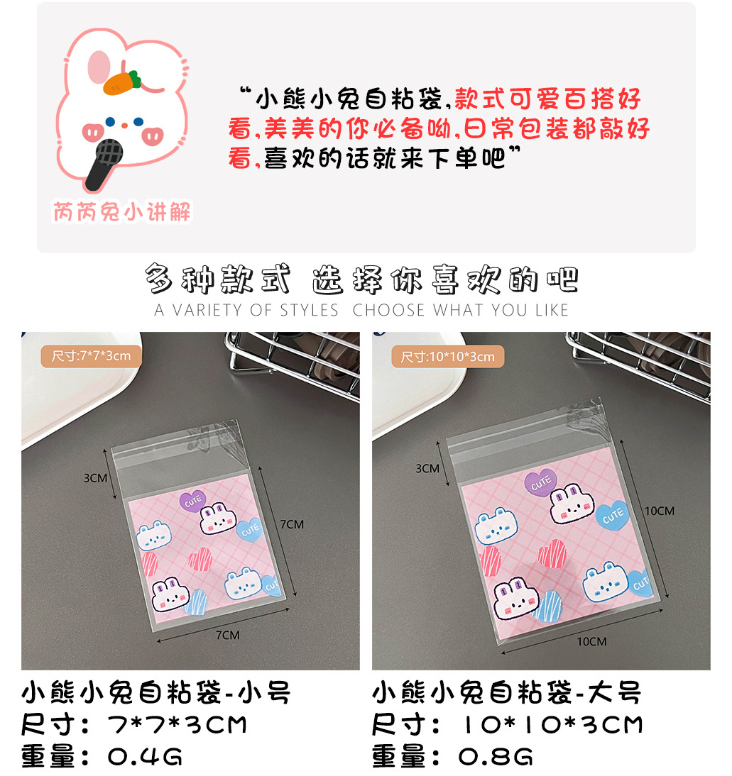 高颜值可爱卡通小熊小兔打包自粘袋爱豆明星小卡套保护袋自封袋子
