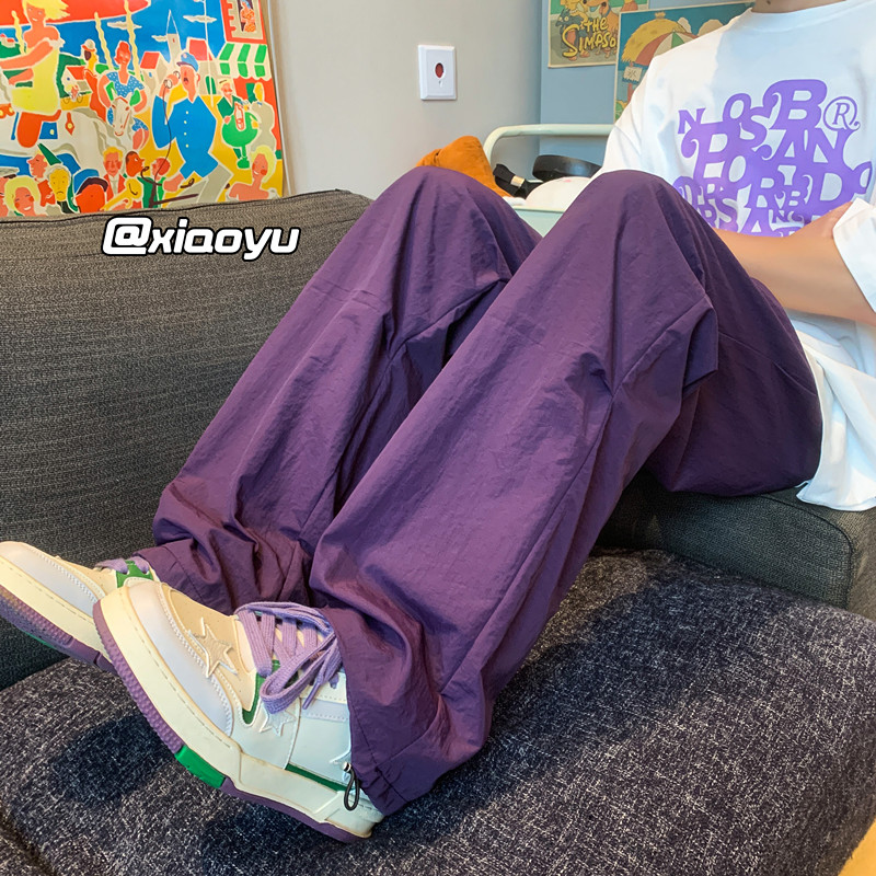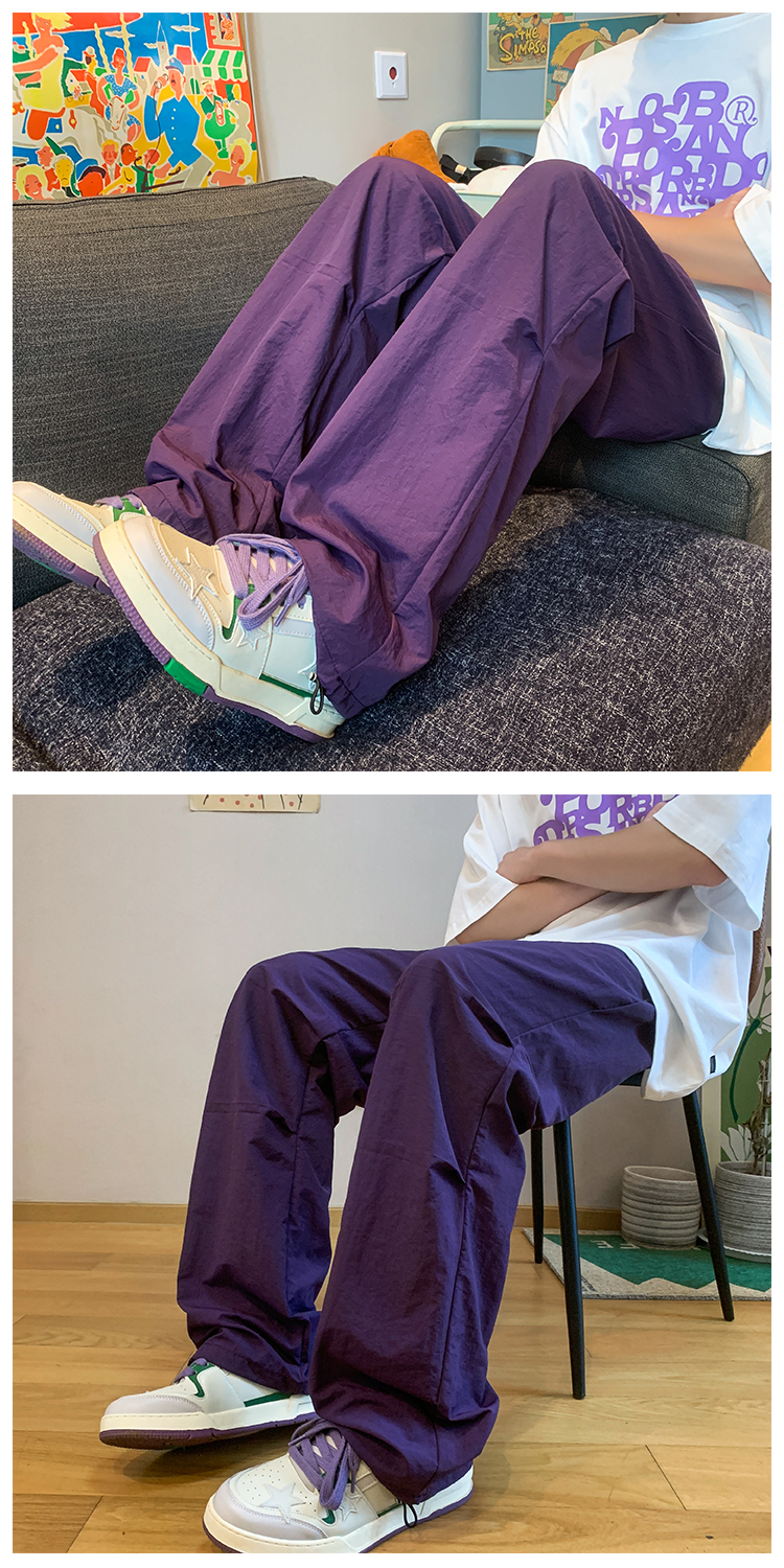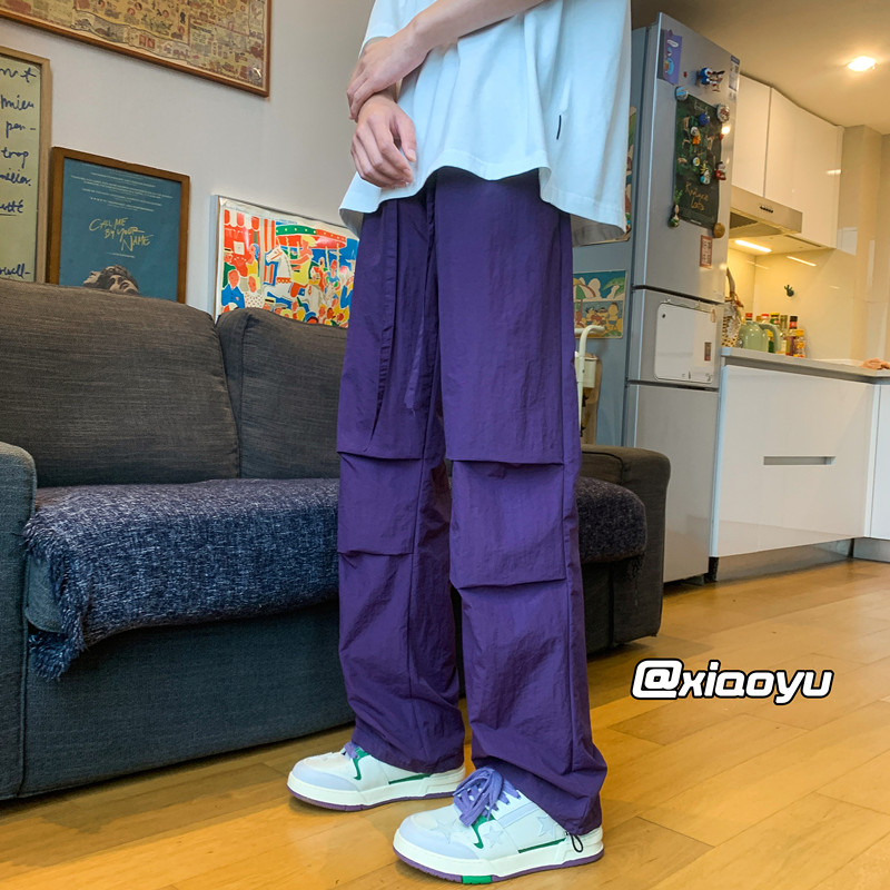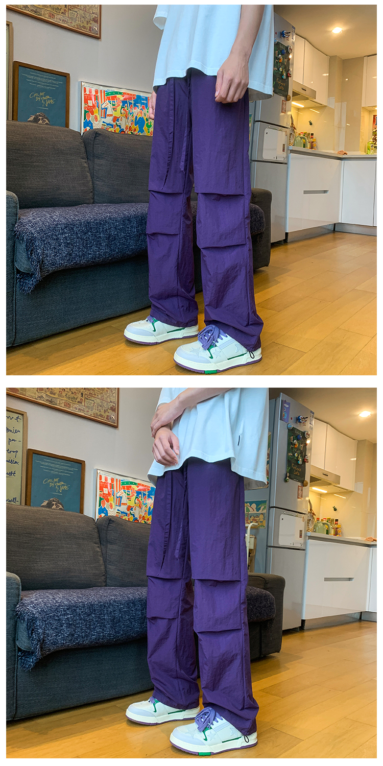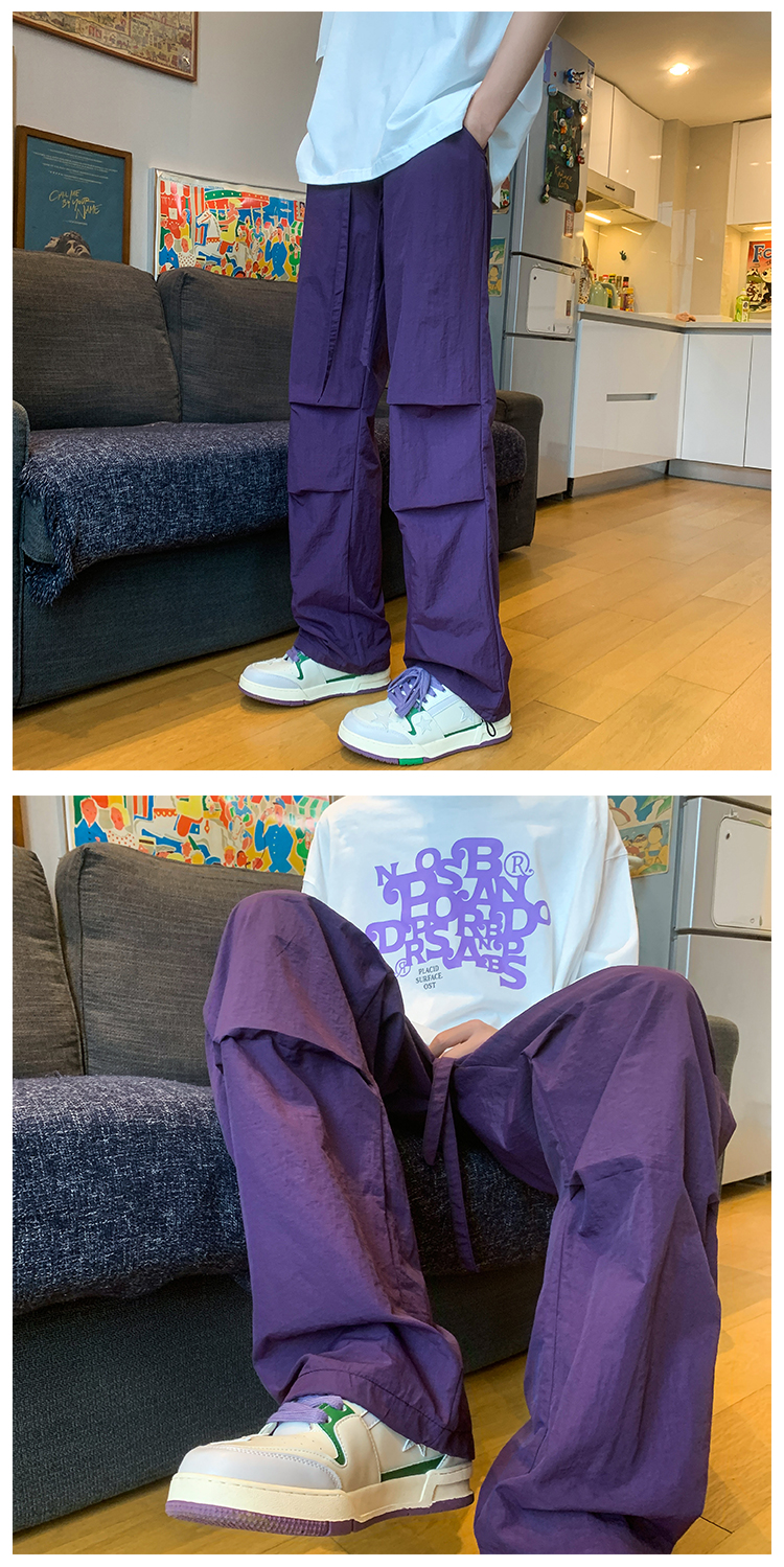 美式機能速乾紫色衝鋒褲夏季戶外冰絲尼龍工裝褲子徒步登山傘兵褲