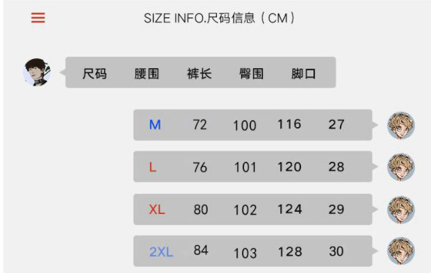 尺碼 M L XL 2XL