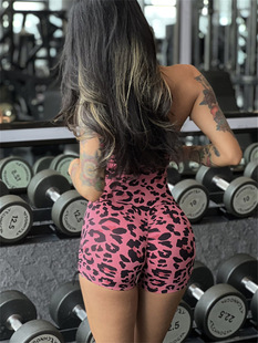 欧美豹纹健身短裤女抽绳印花提臀高腰裸感速干运动瑜伽跑步蜜桃裤