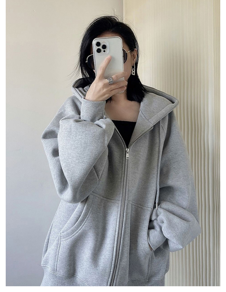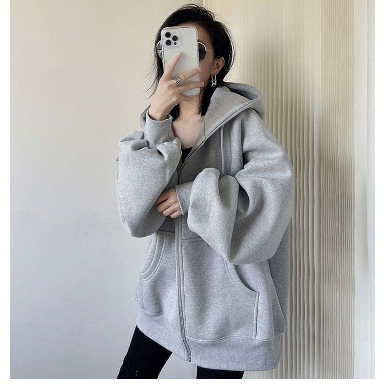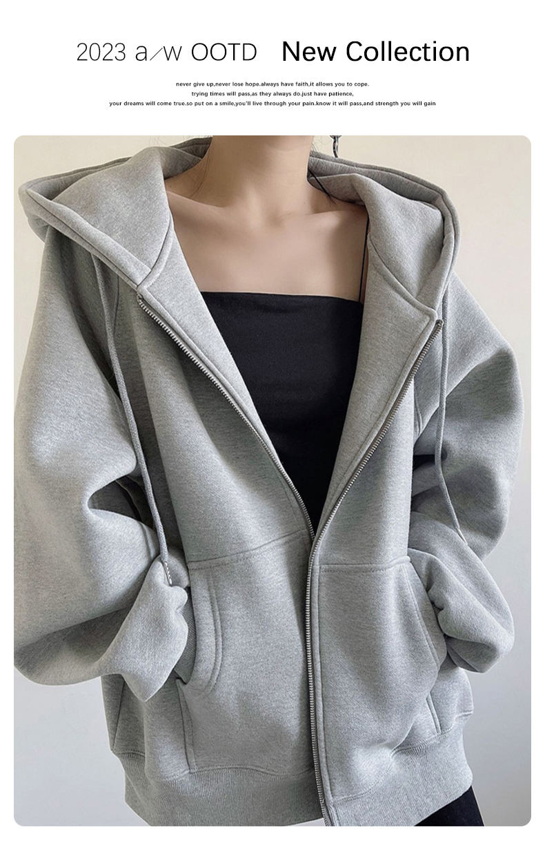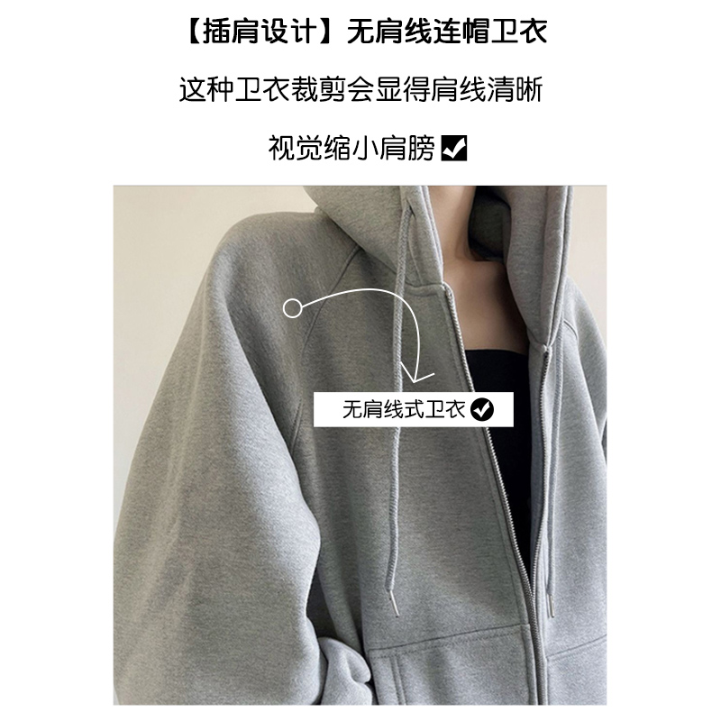 外套女春秋季oversize2023新款爆款灰色開衫拉鍊連帽運動衫秋冬加絨