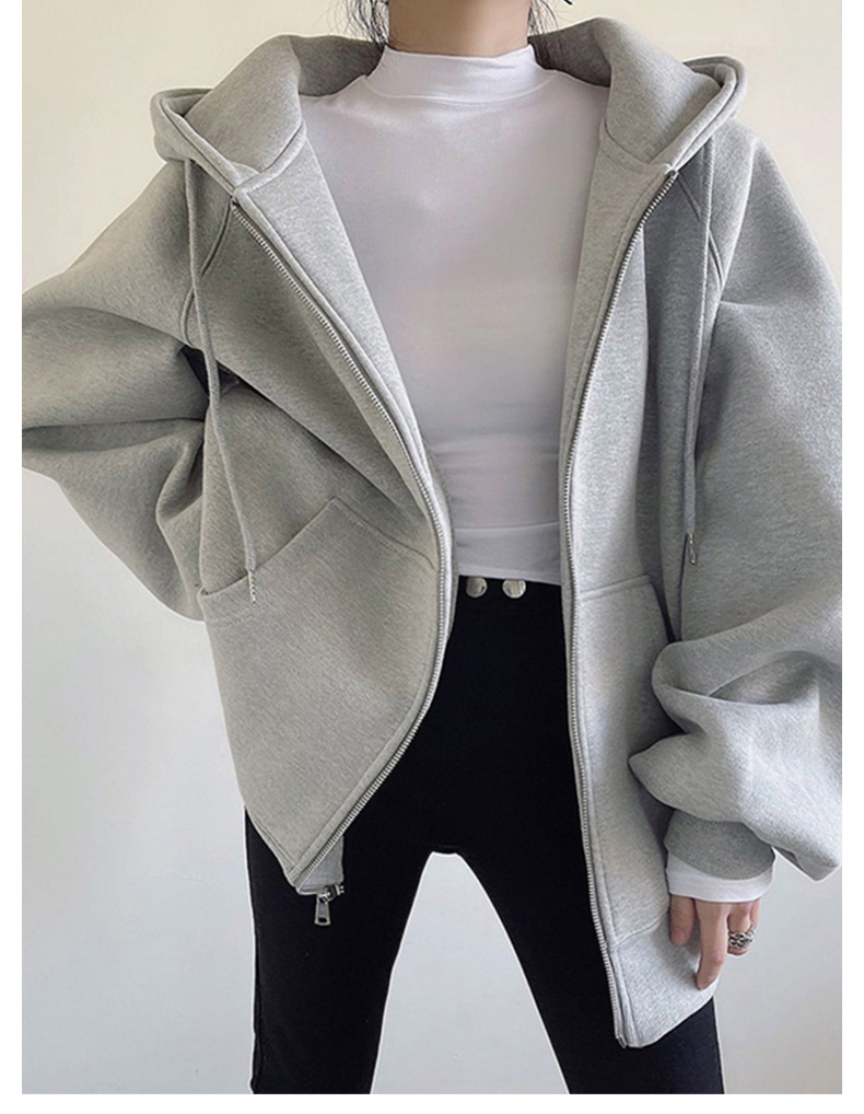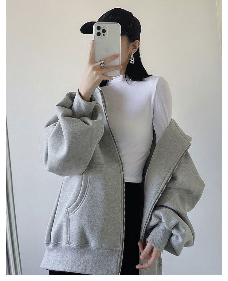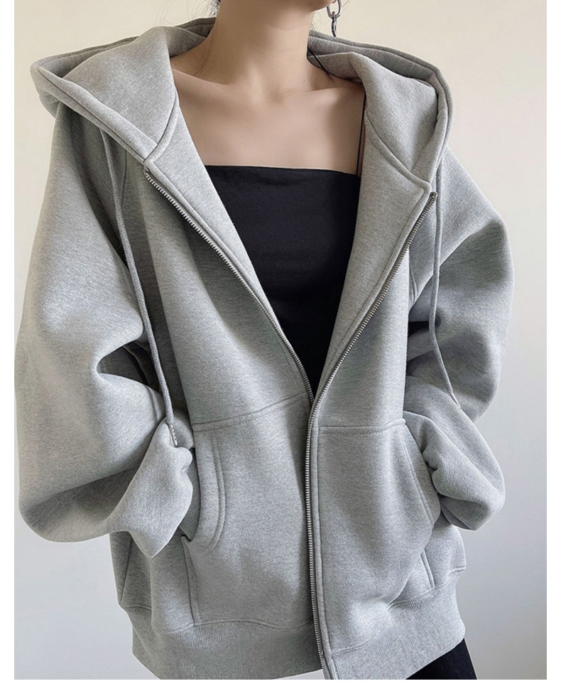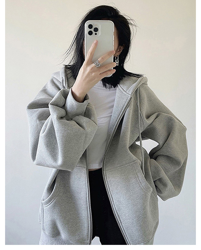 外套女春秋季oversize2023新款爆款灰色開衫拉鍊連帽運動衫秋冬加絨