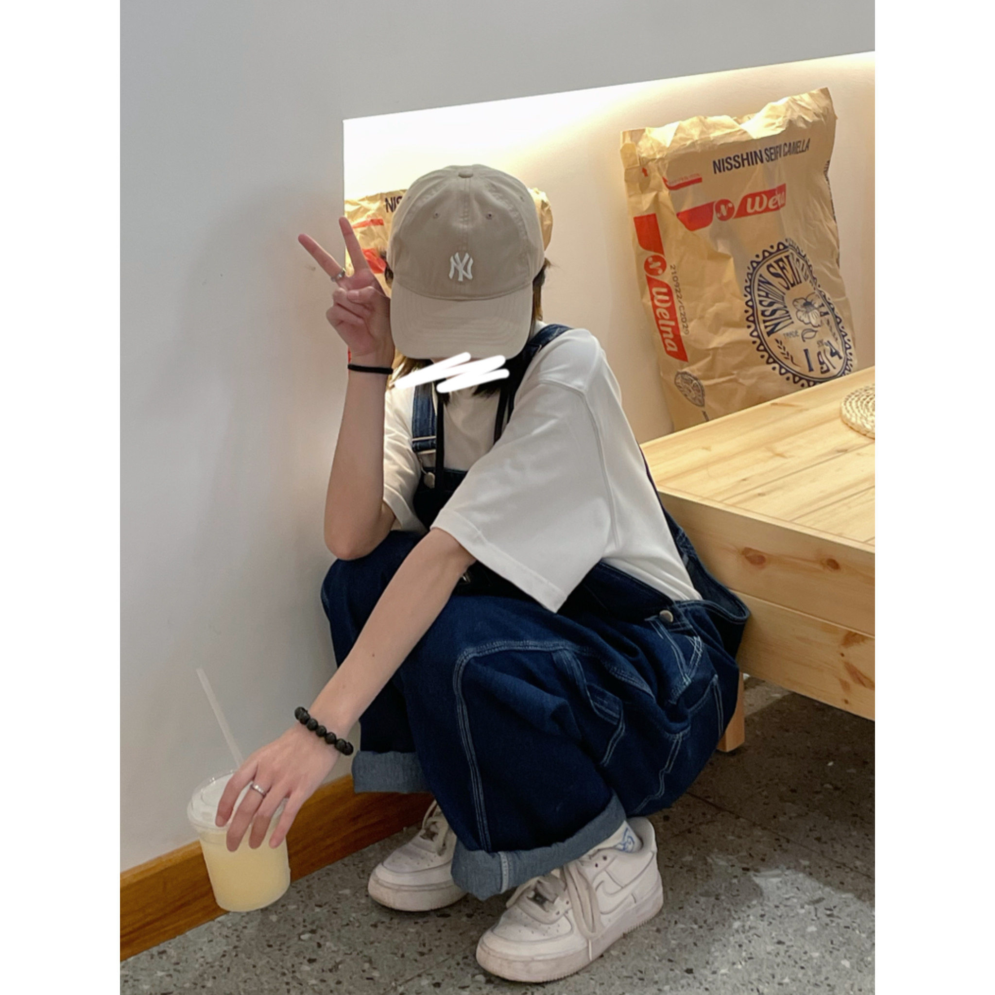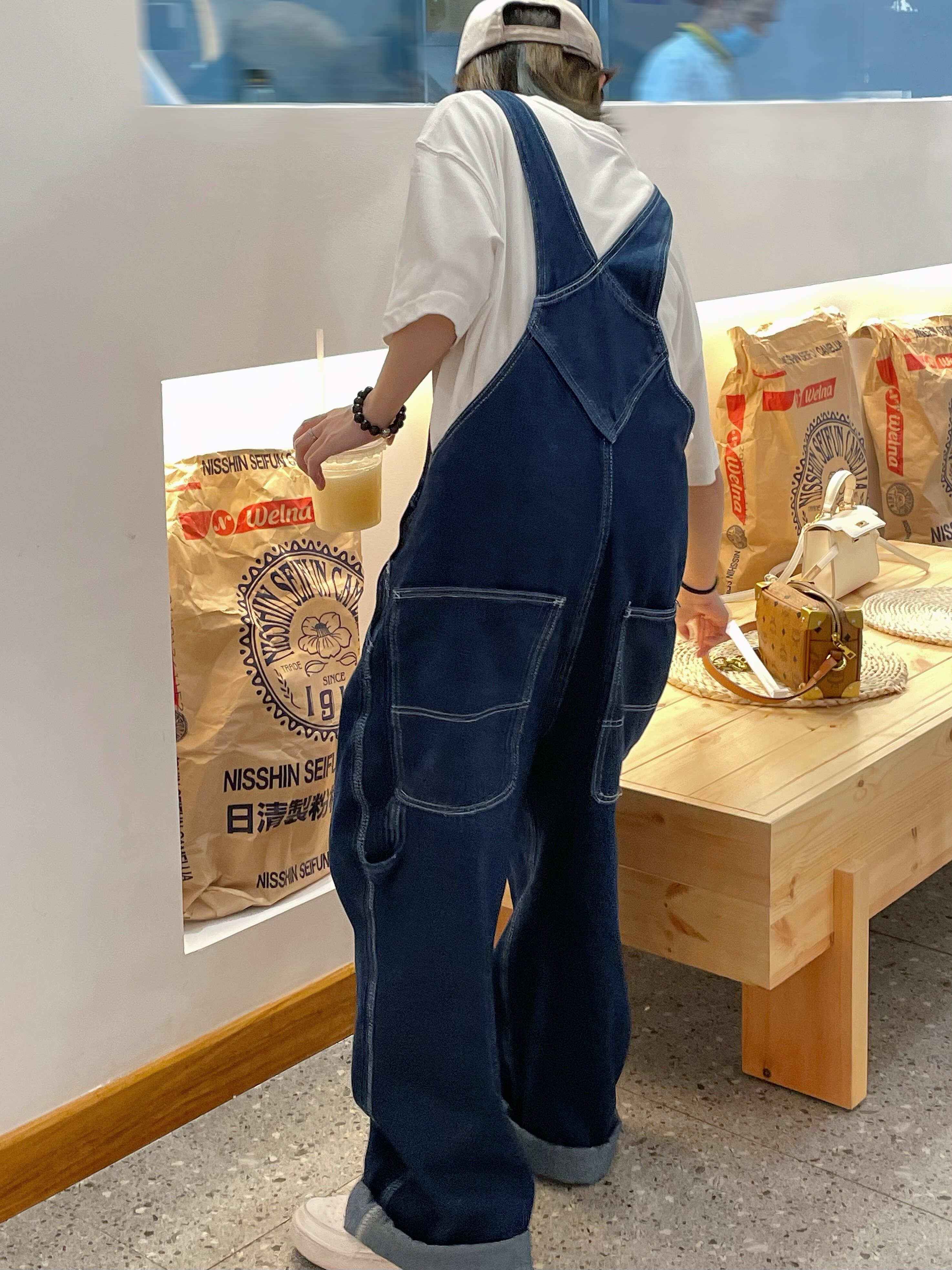 一隻小楊 美式復古牛仔褲抱嬰袋褲春秋休閒工作服褲寬鬆闊腿阿美咔嘰