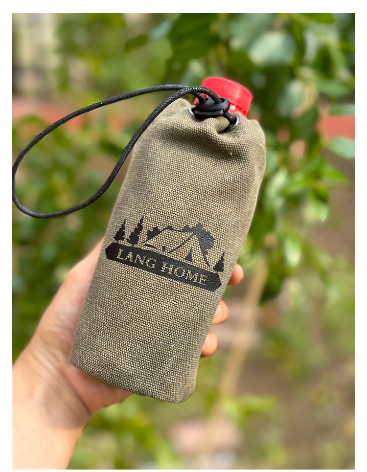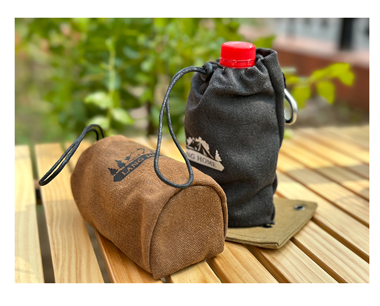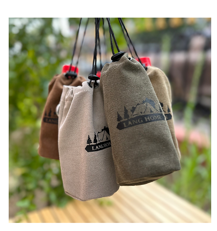 戶外露營杯套野炊水壺套帆布揹包防燙隔熱杯套登山耐磨金屬扣揹包