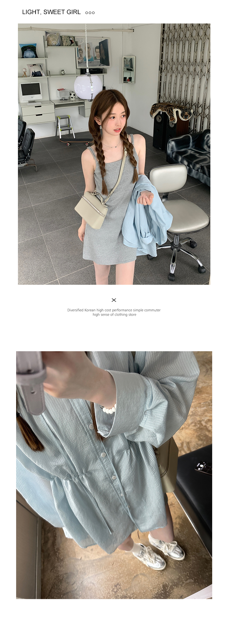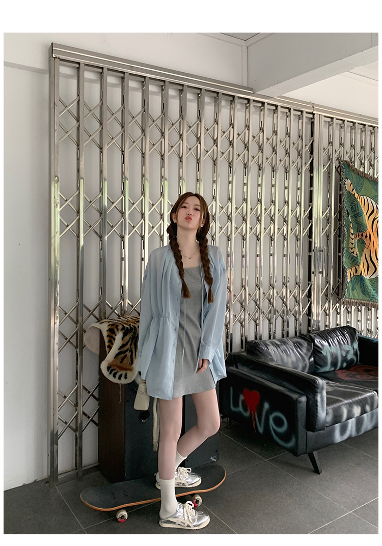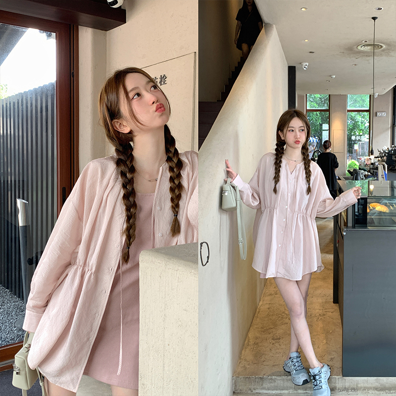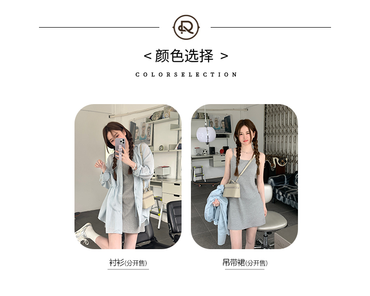 顏色分類 襯衫藍色(現貨),襯衫粉色(現貨),襯衫杏色(現貨),襯衫黑色(現貨),吊帶裙灰色(現貨),吊帶裙粉色(現貨)
