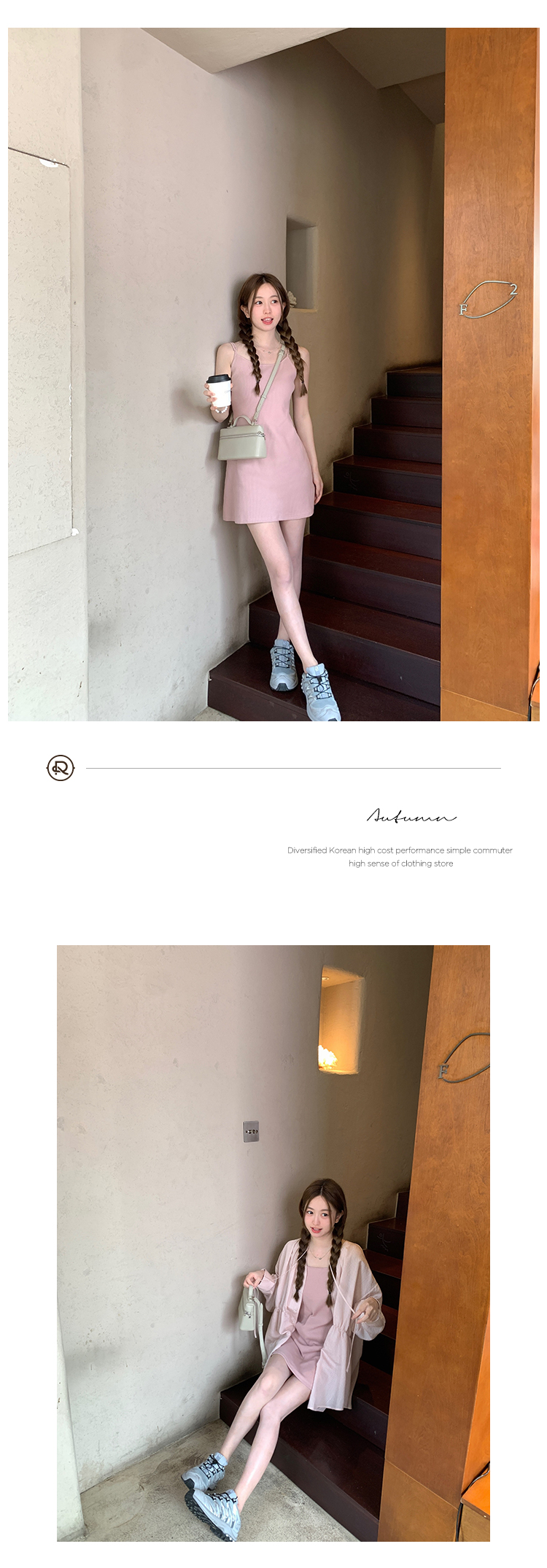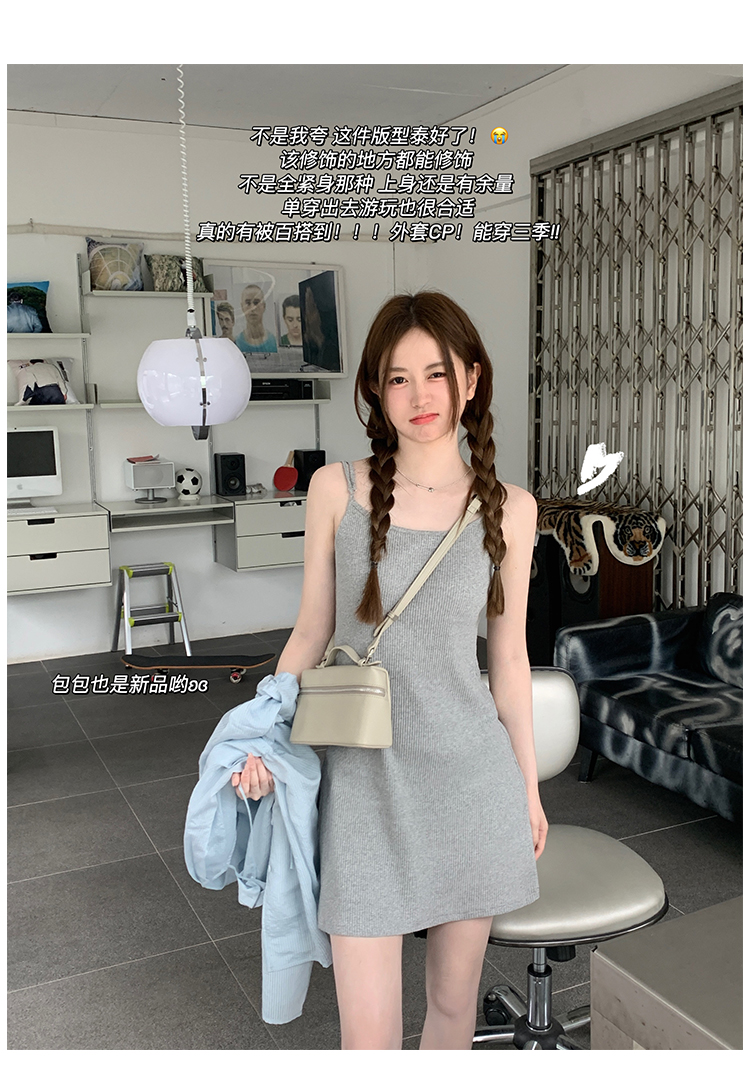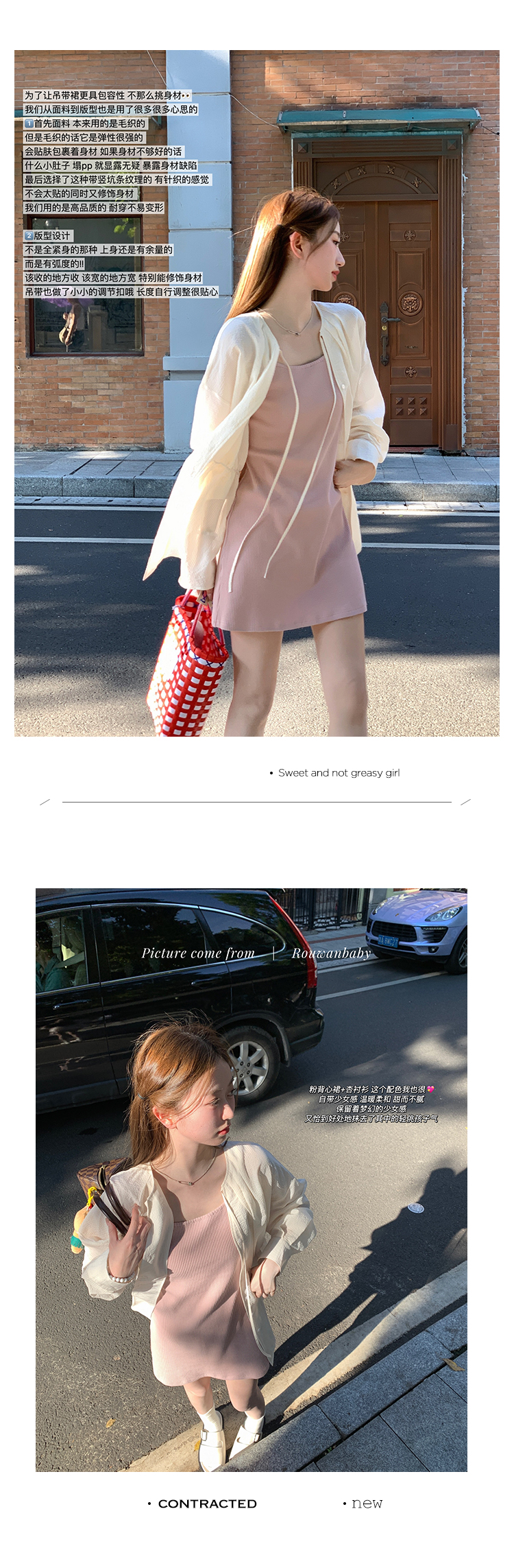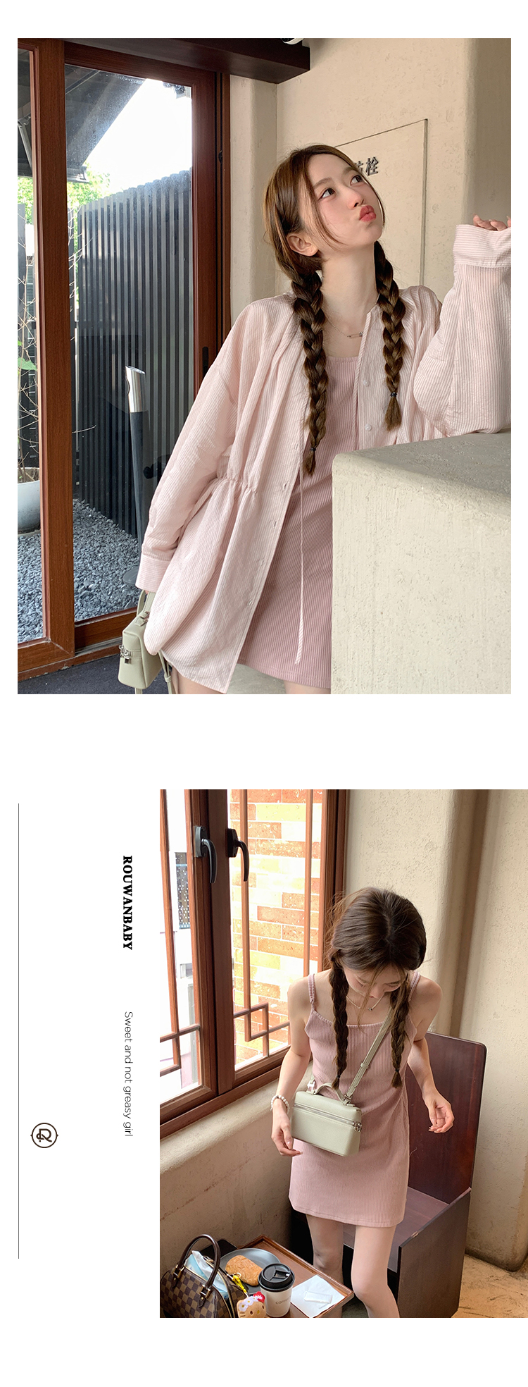 肉完夏季甜美針織吊帶裙短款2023新款女小個子配襯衫兩件套夏