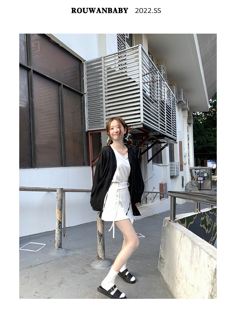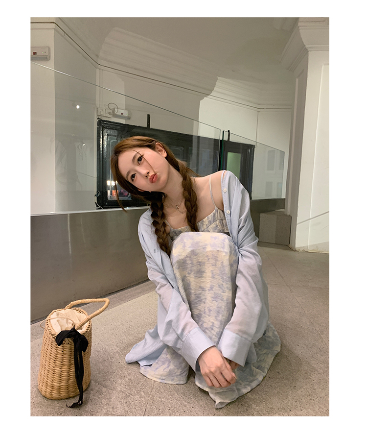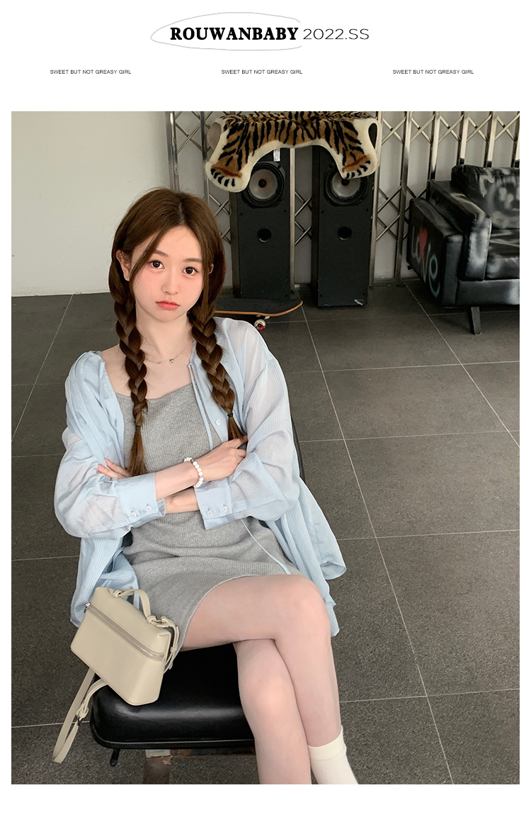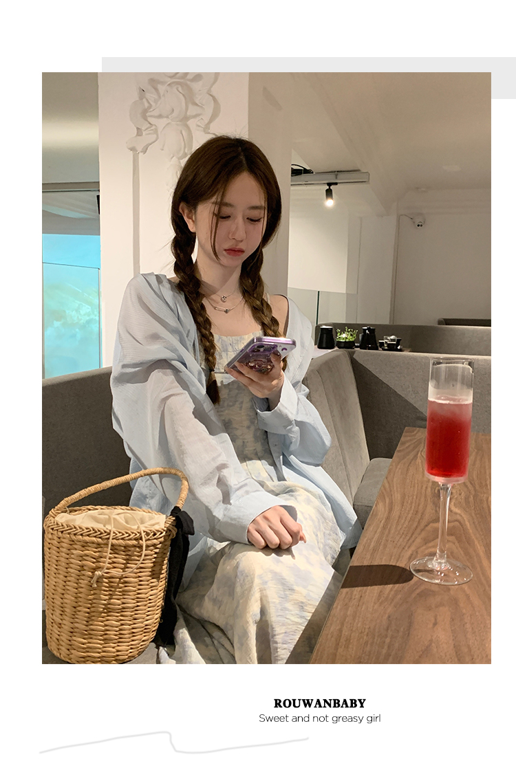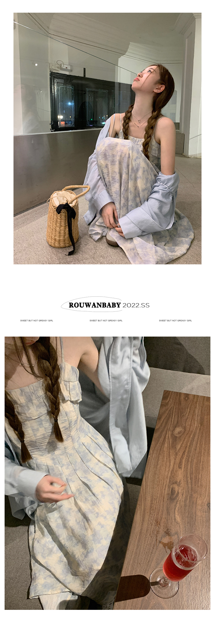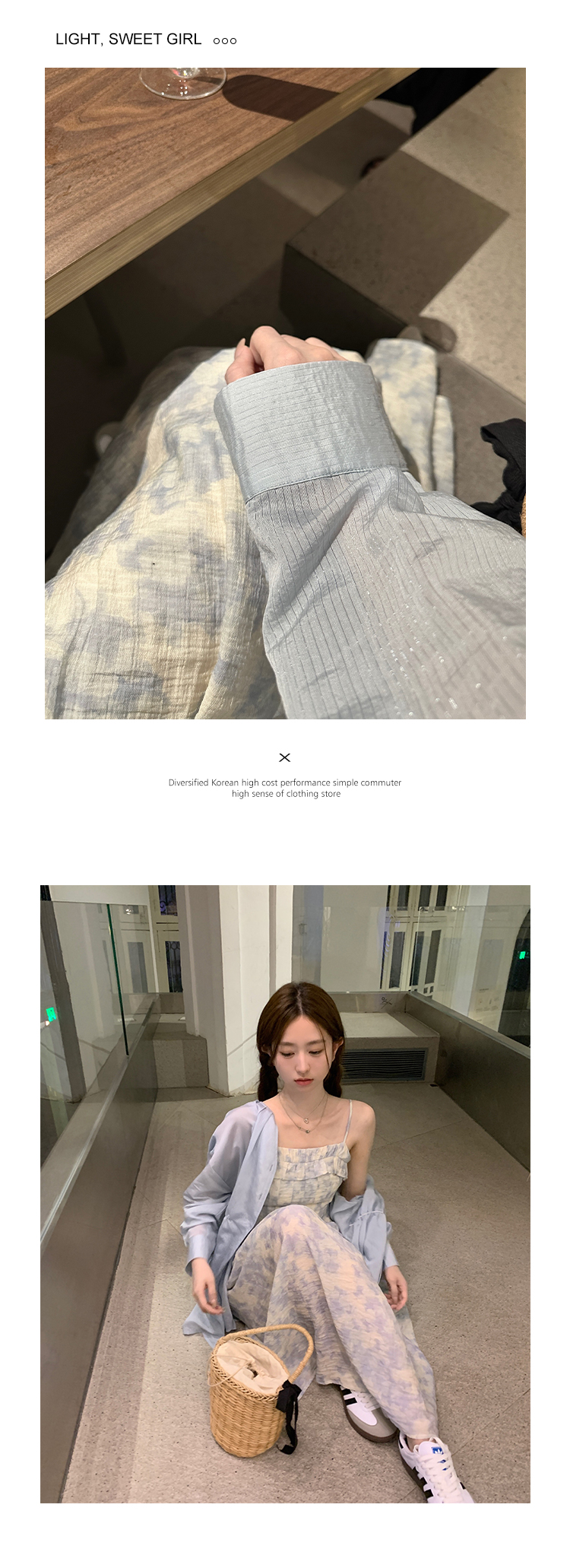 肉完夏季甜美針織吊帶裙短款2023新款女小個子配襯衫兩件套夏