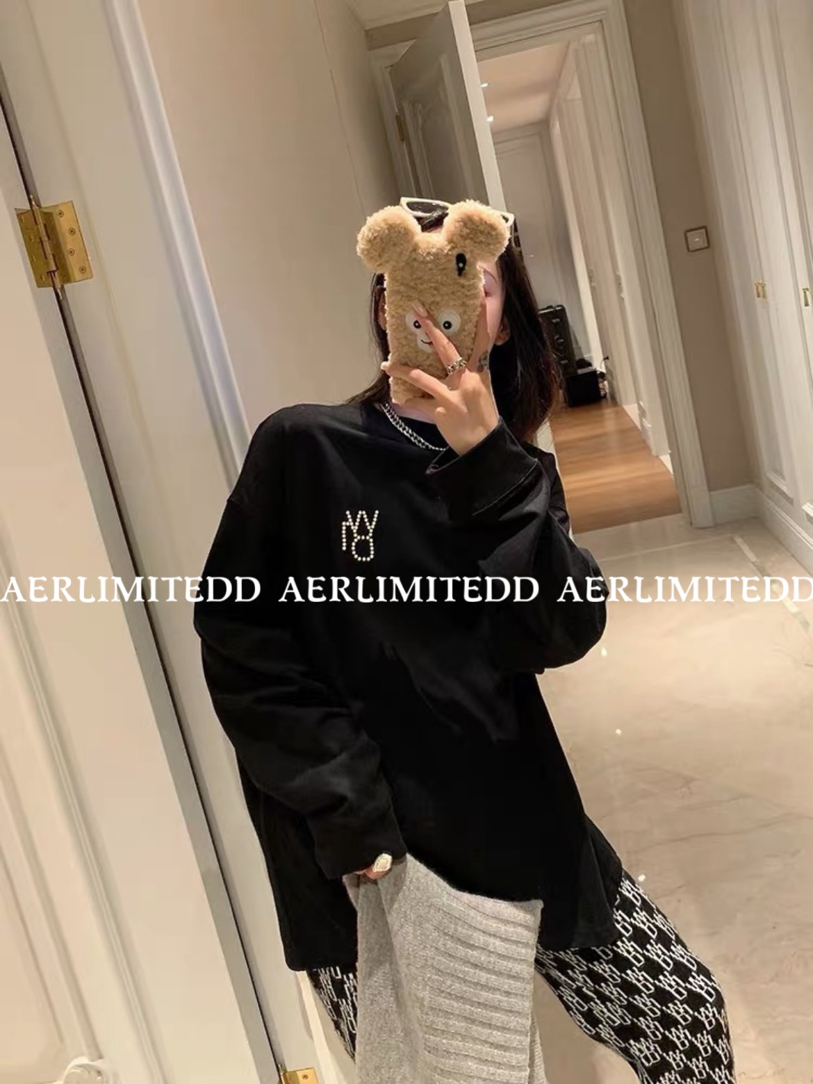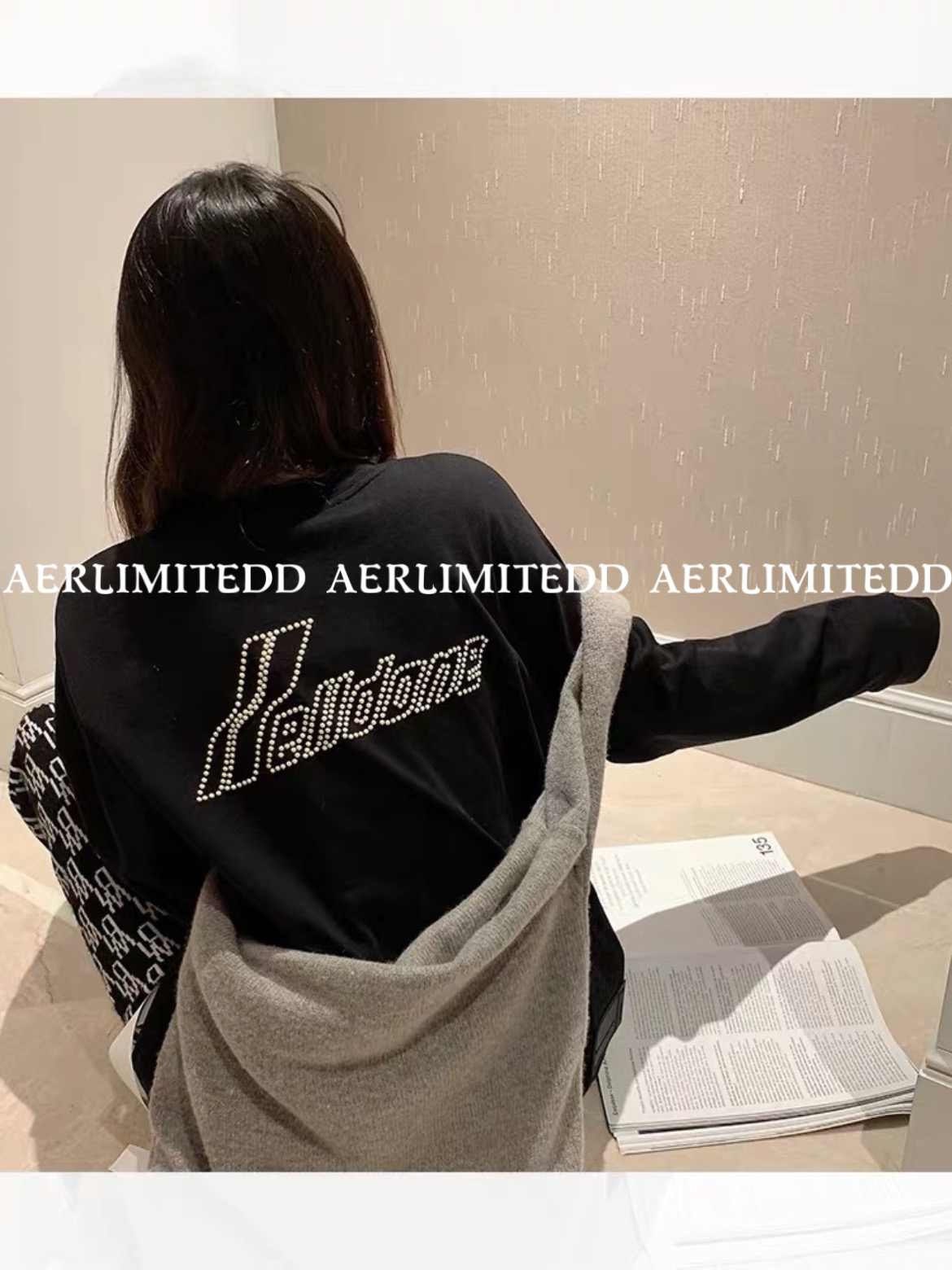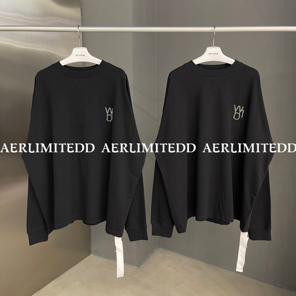 專櫃出入!WE11DONE珍珠長袖厚棉TWELLDONE潮牌寬鬆情侶上衣男女