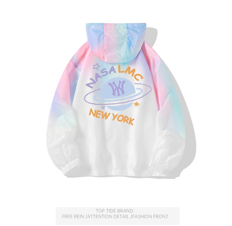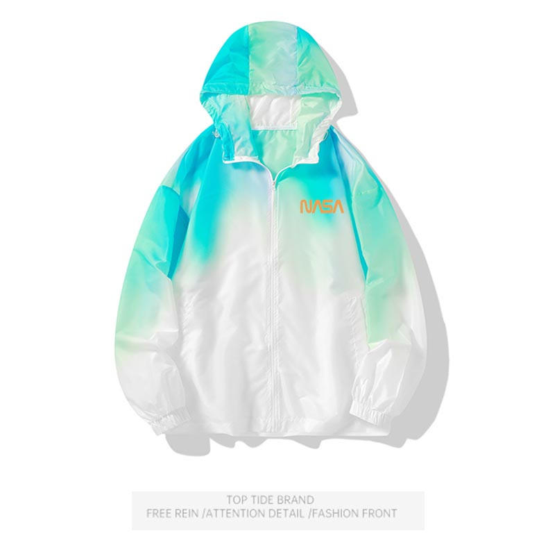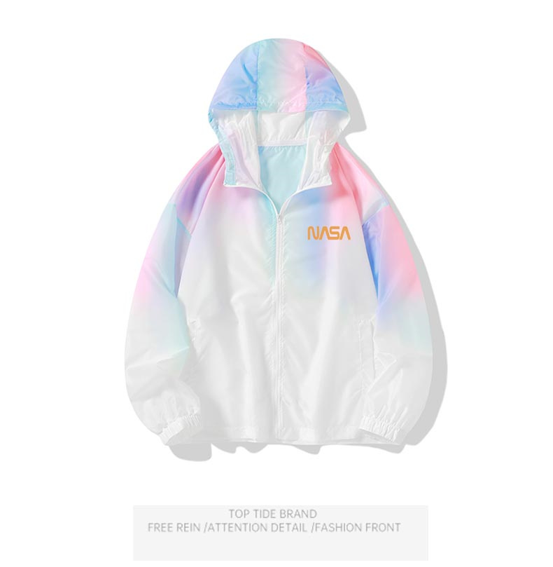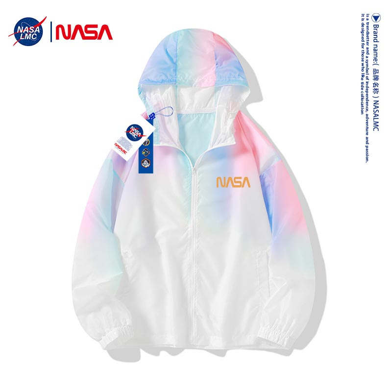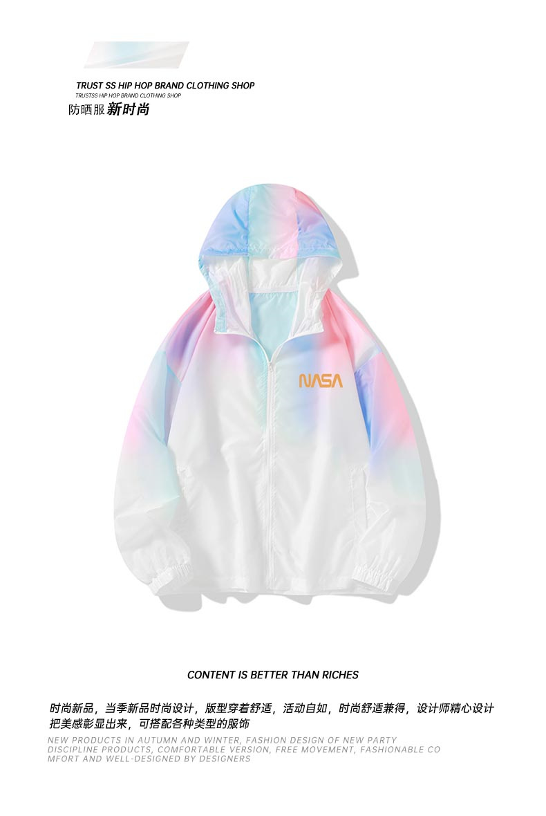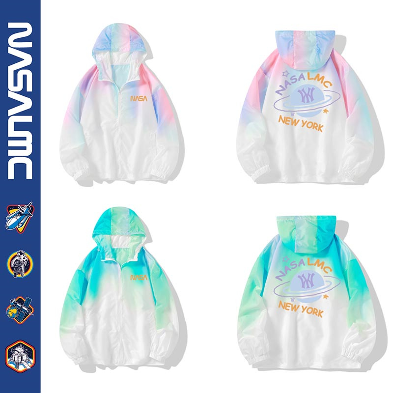 NASA2023時尚潮流漸層寬鬆連帽夾克女士青春運動休閒薄款防曬衣男