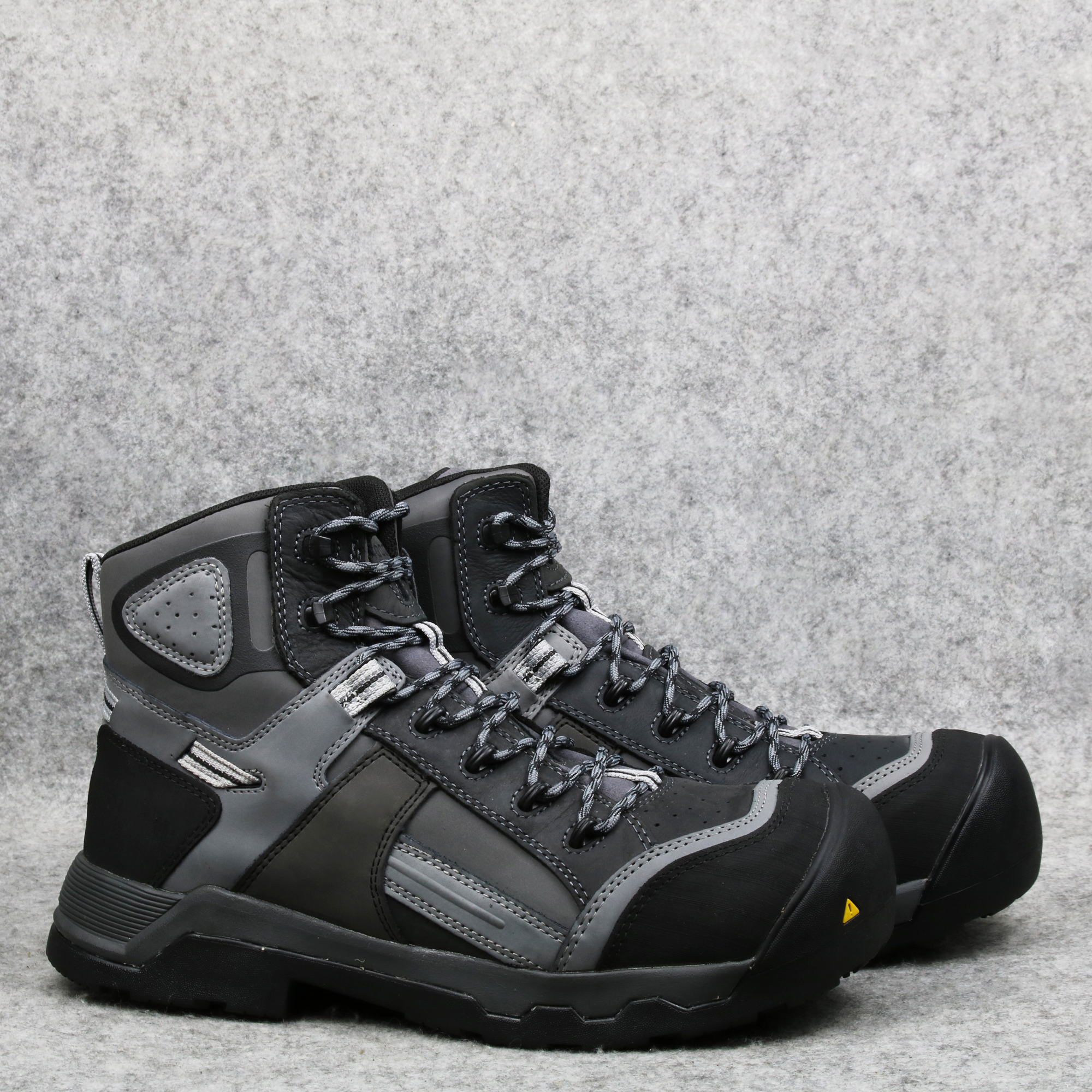 铝和复合鞋头设计提供更宽敞的鞋头,带钢头保护脚趾不受伤害,坚固、防砸、防撞、防刺穿。因为鞋子是带钢头的,所以鞋子重量会偏重一些。