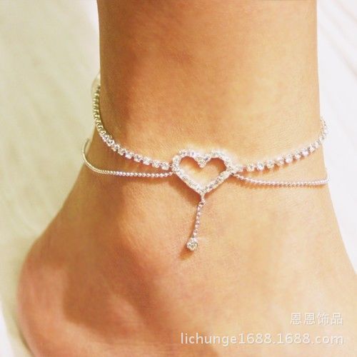 欧美时尚个性爱心五角星水钻脚链 满钻高档女式百搭性感心型脚饰