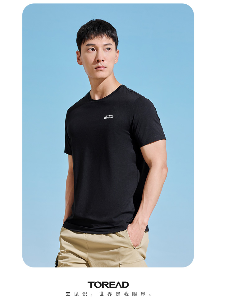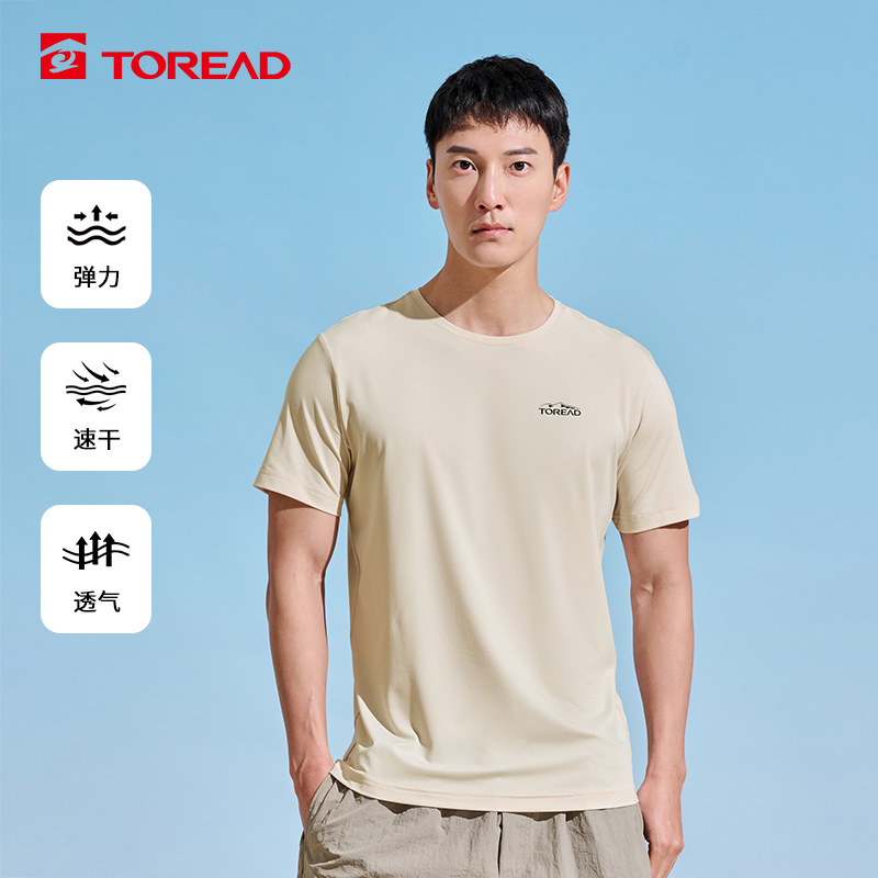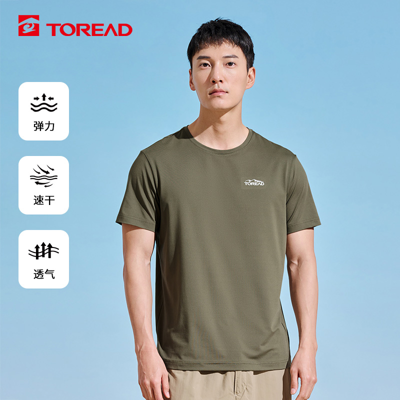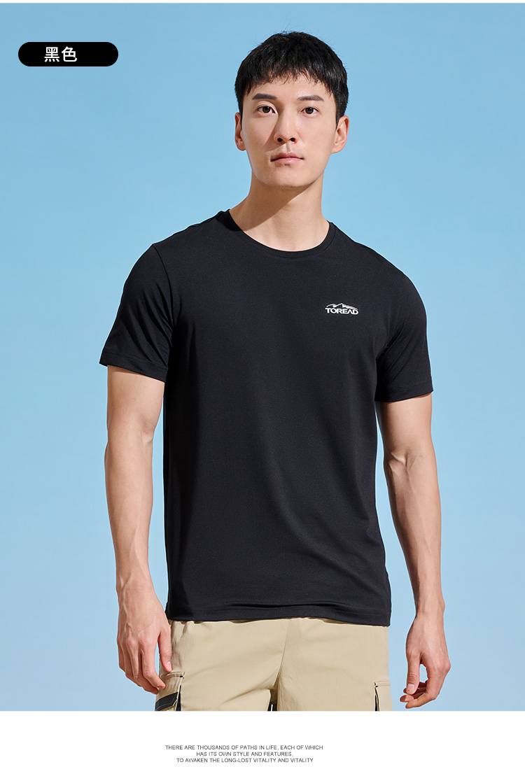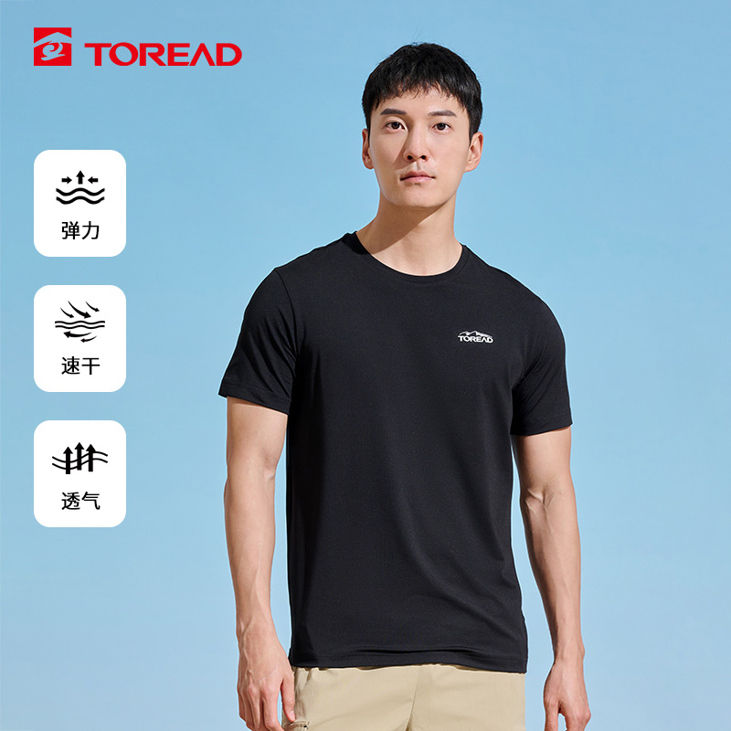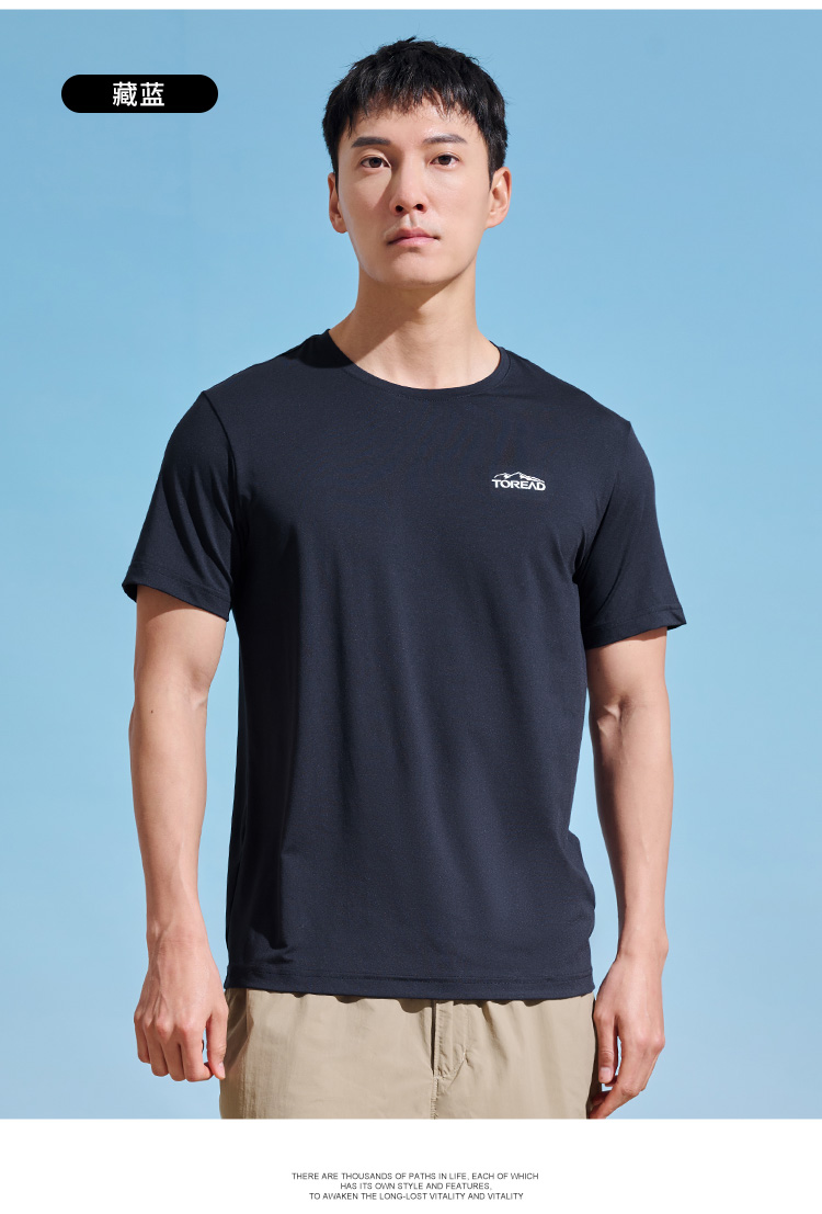 探路者短袖男女 23夏新款休閒速乾彈力清爽透氣情侶純色T恤81729