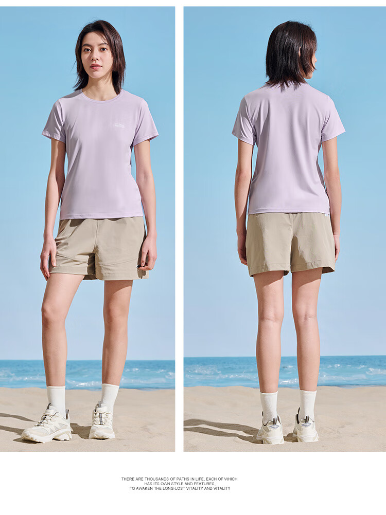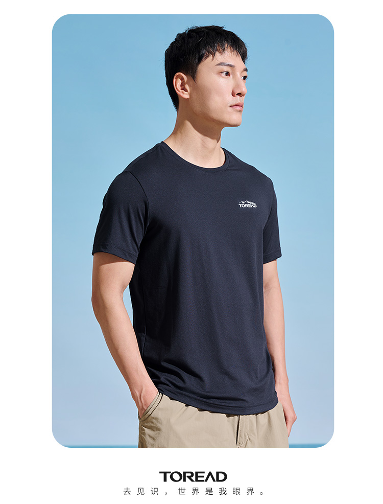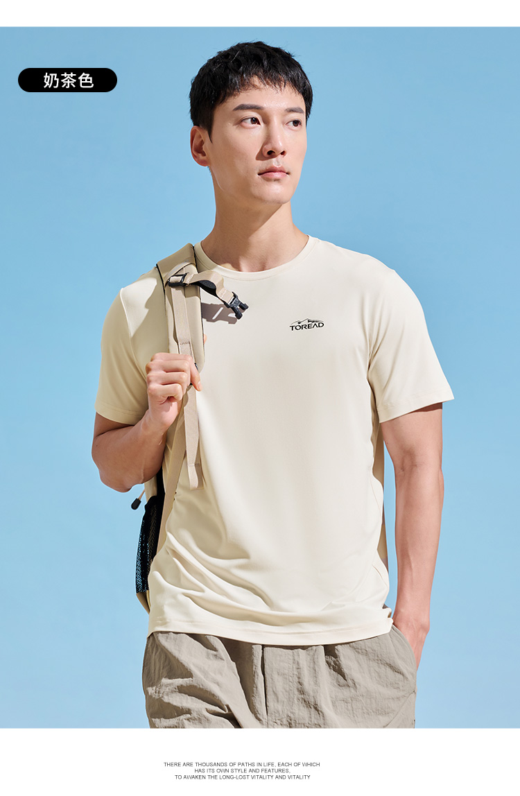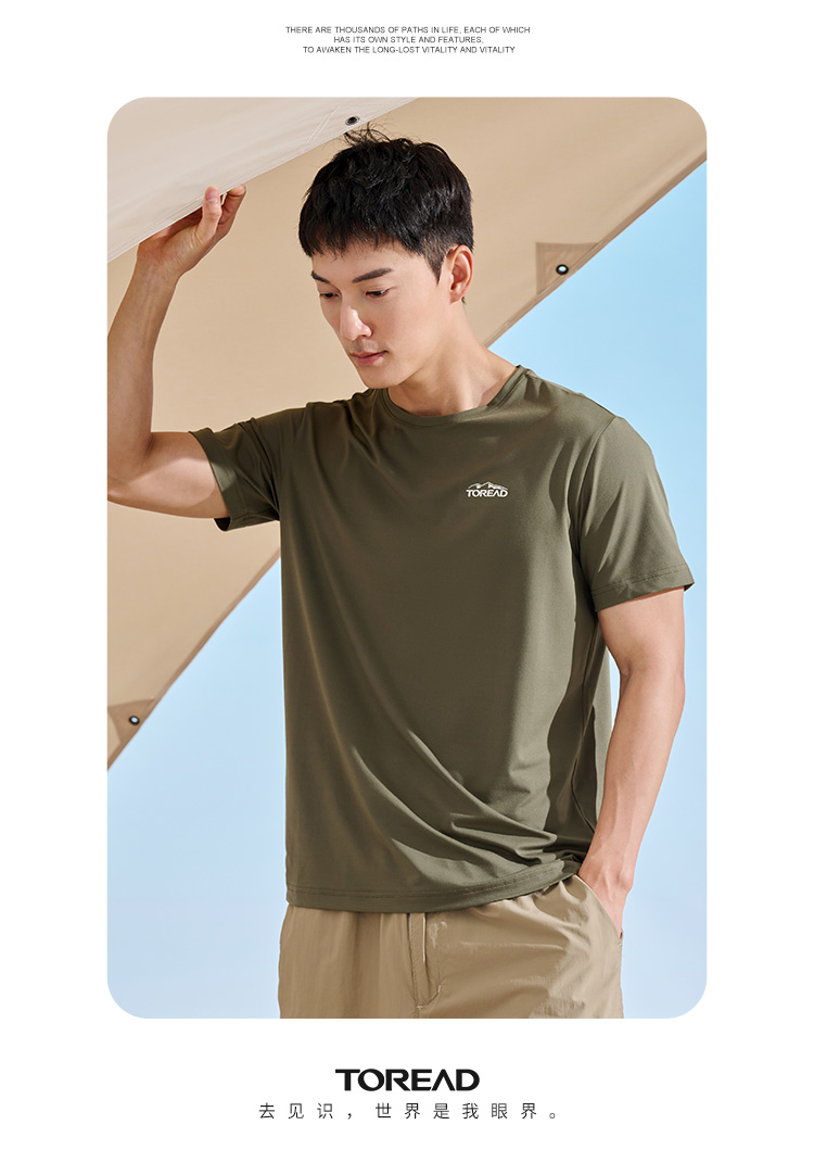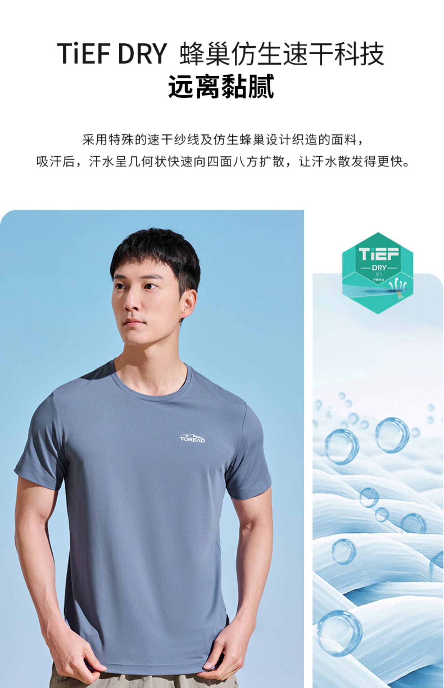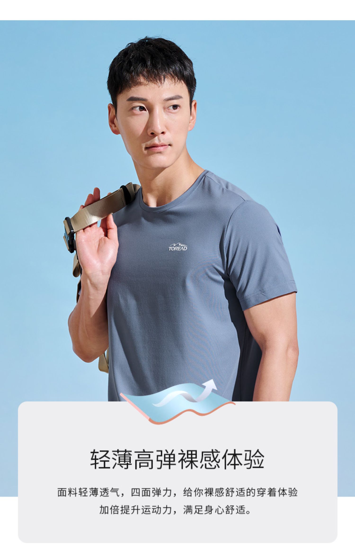探路者短袖男女 23夏新款休閒速乾彈力清爽透氣情侶純色T恤81729