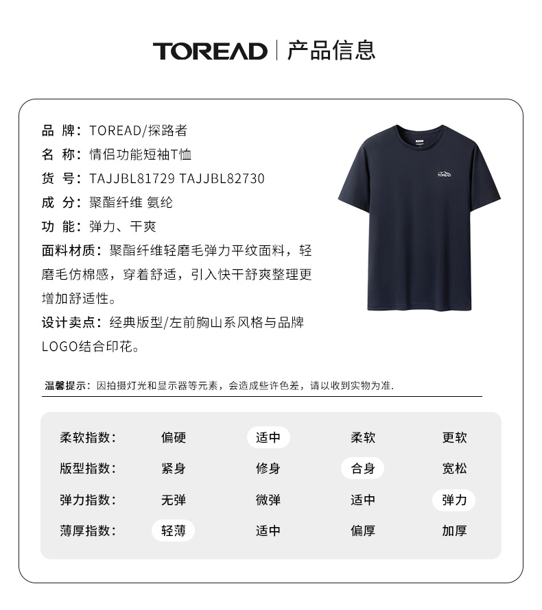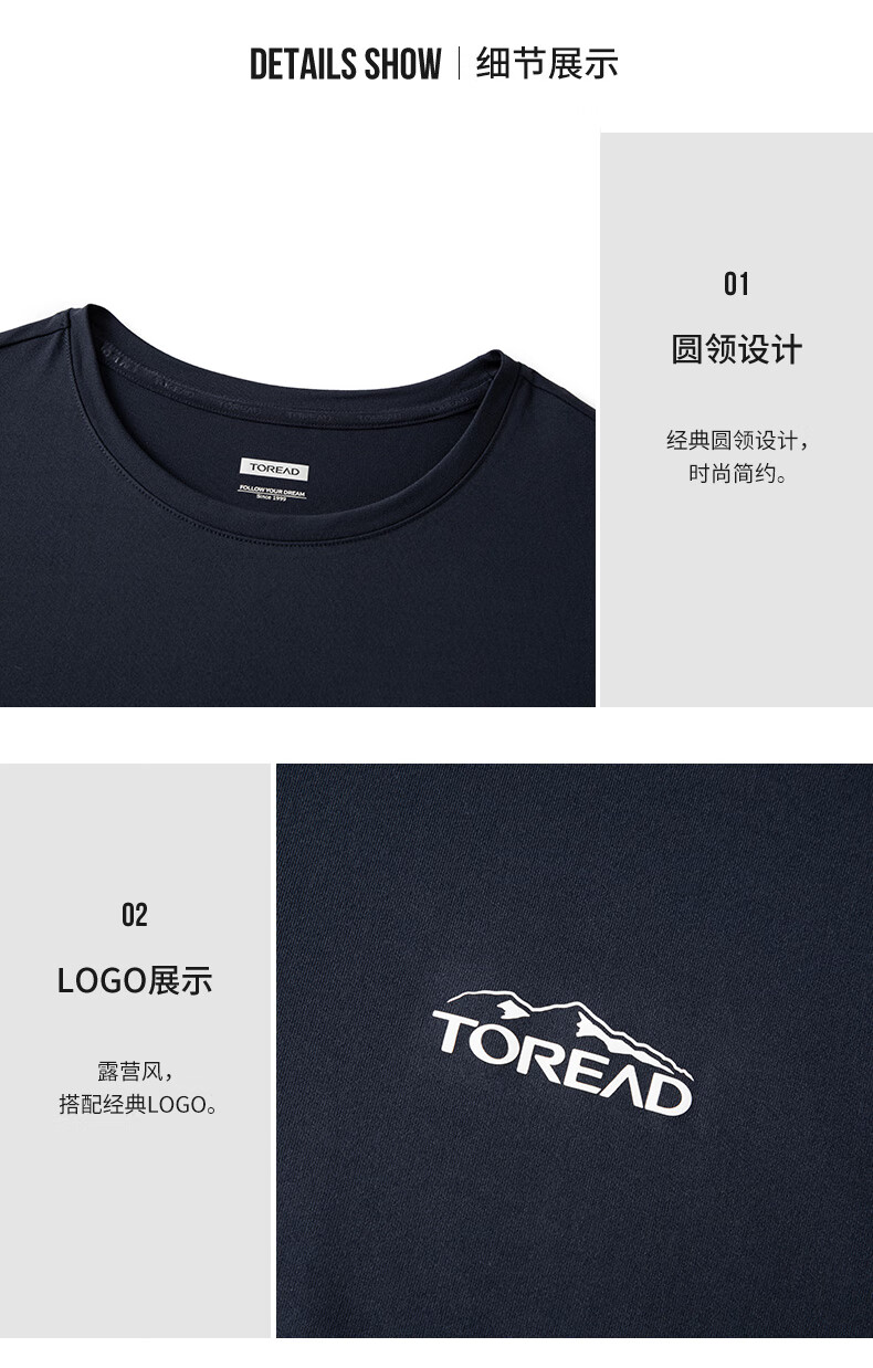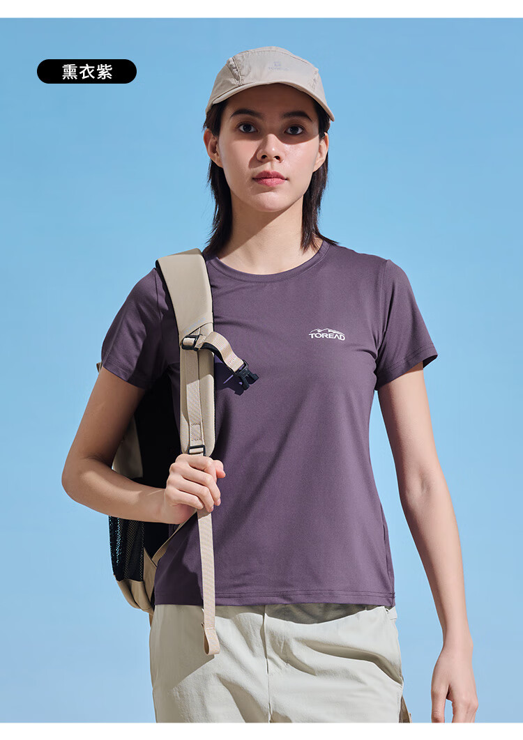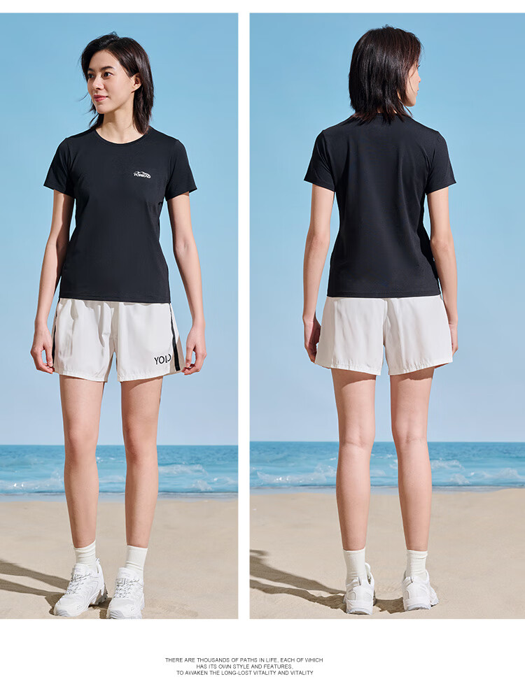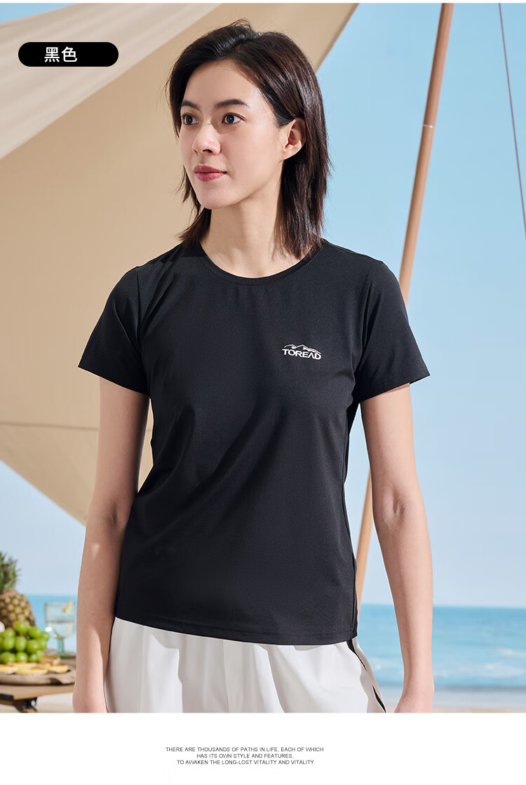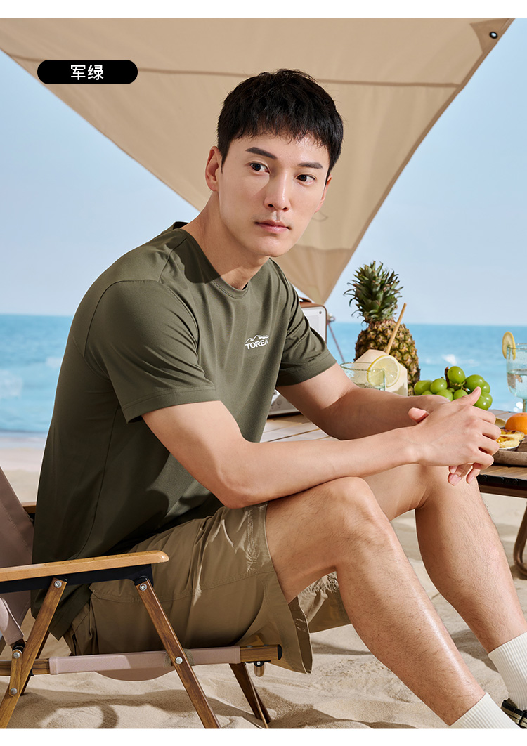 探路者短袖男女 23夏新款休閒速乾彈力清爽透氣情侶純色T恤81729