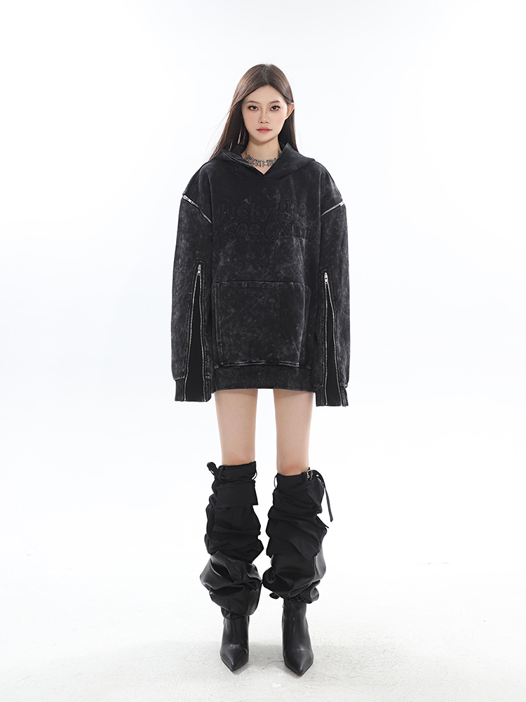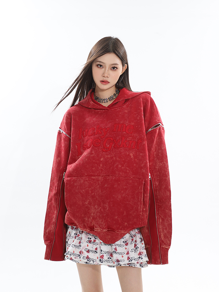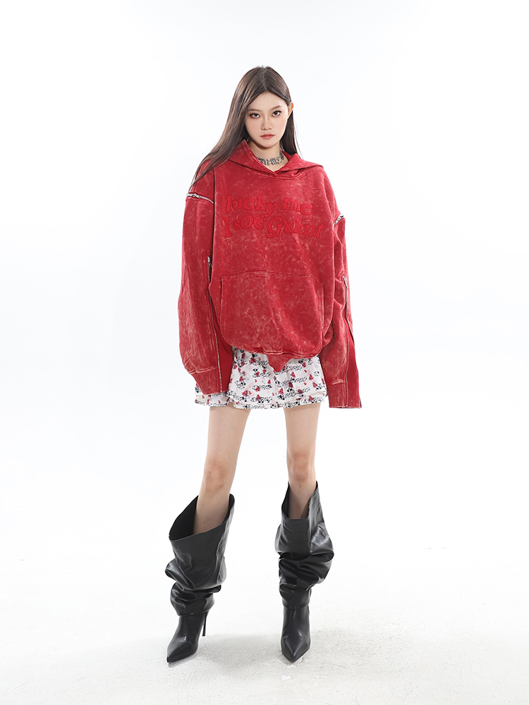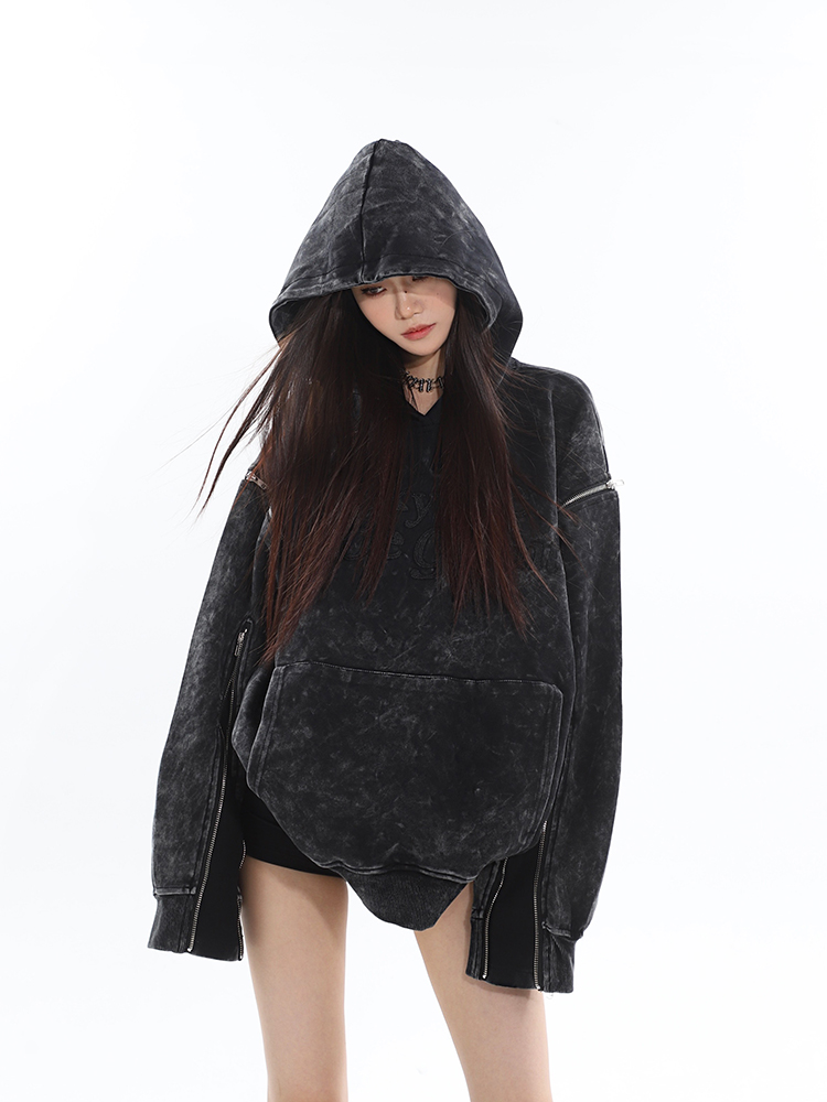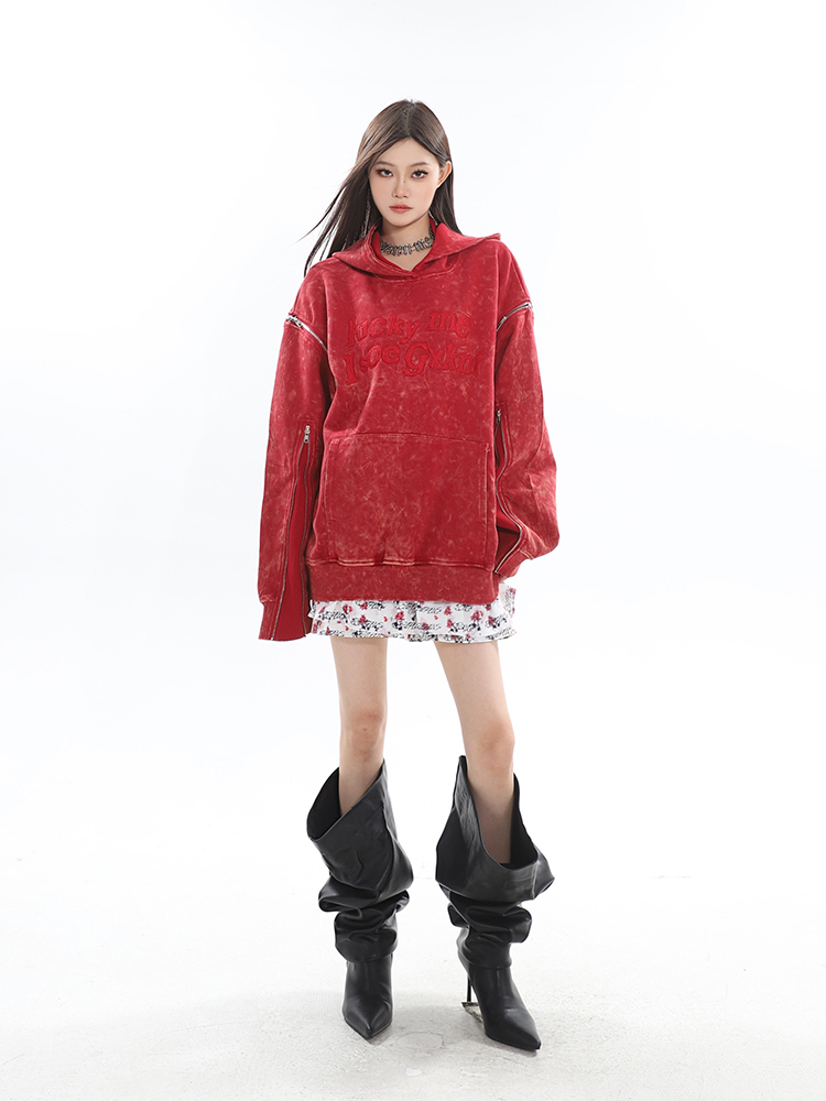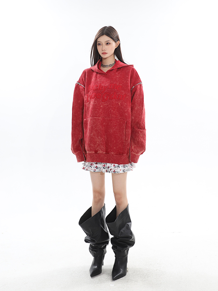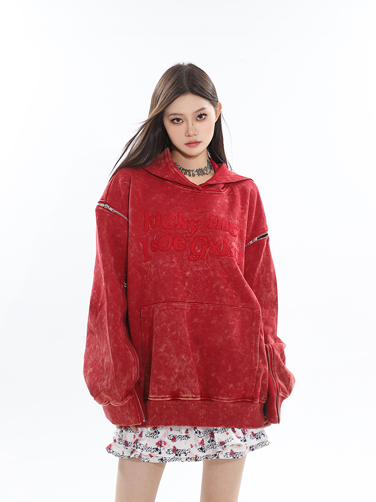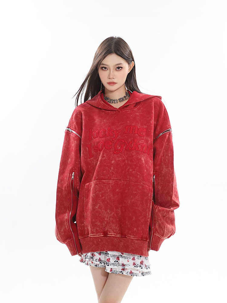 CCUP SAPCE 2023秋冬新款美式復古做舊上衣刺繡帽衫拉鍊連帽運動衫