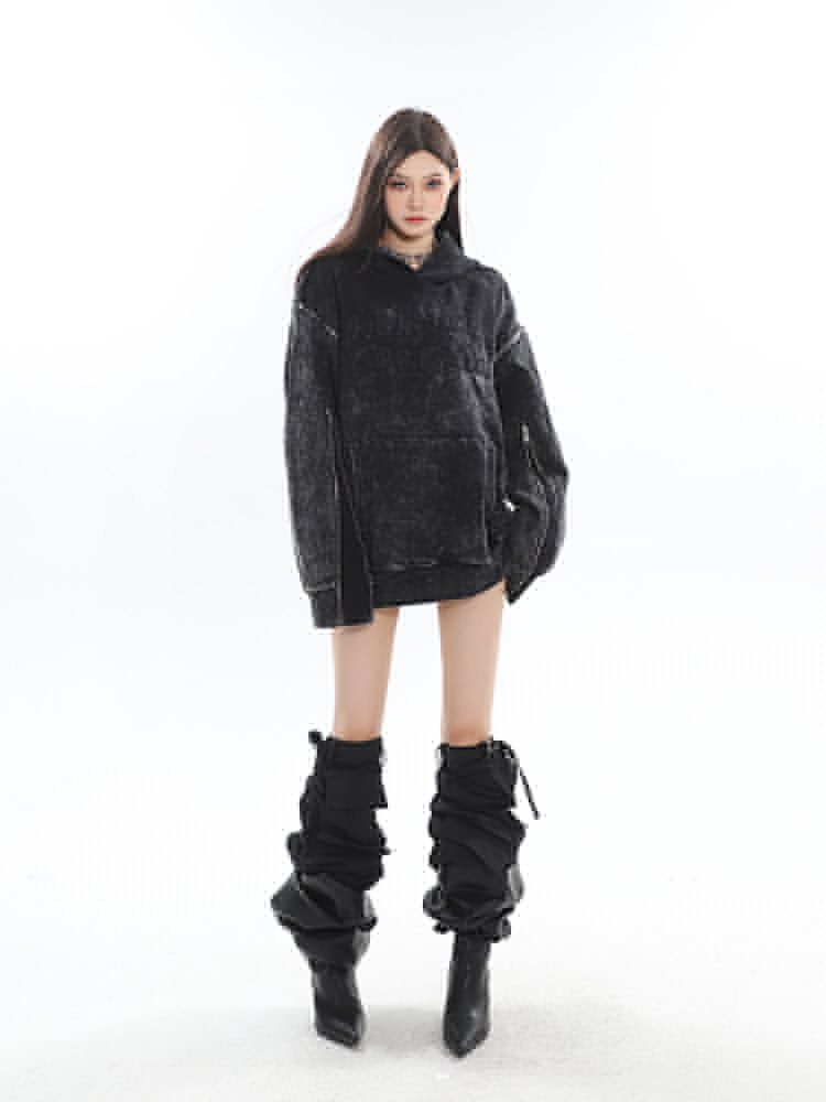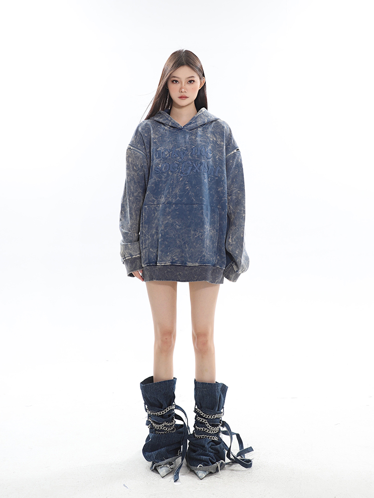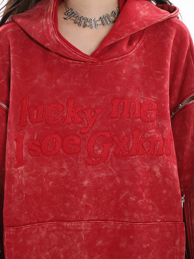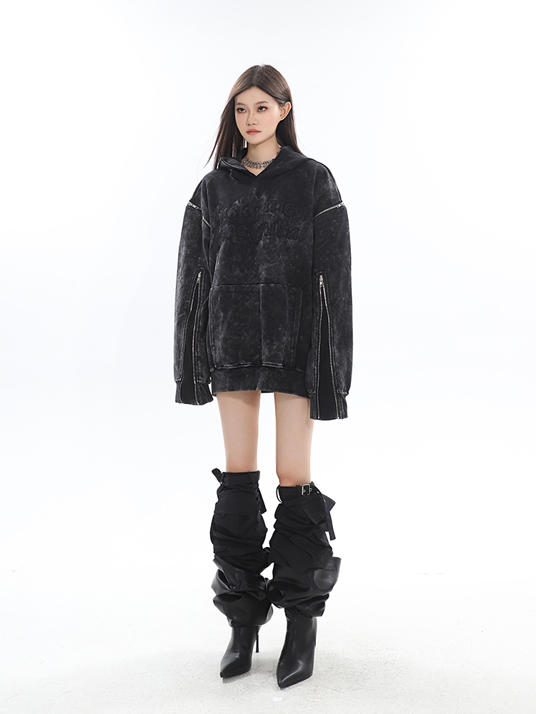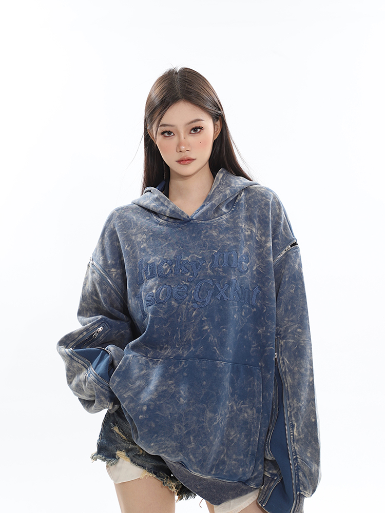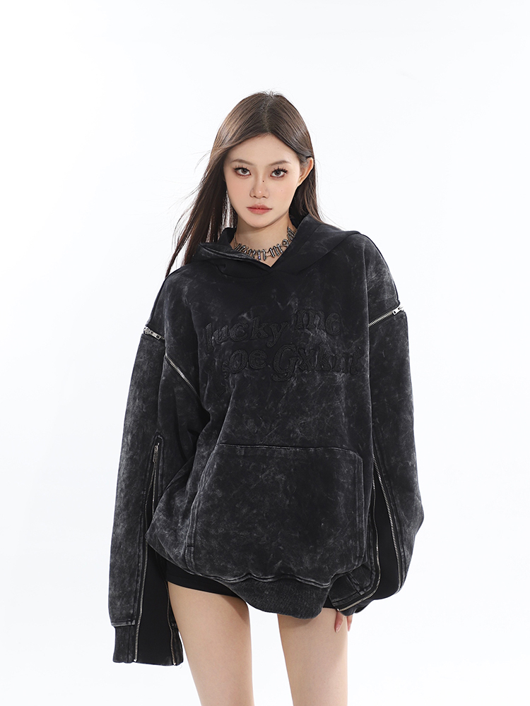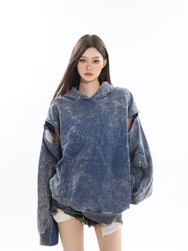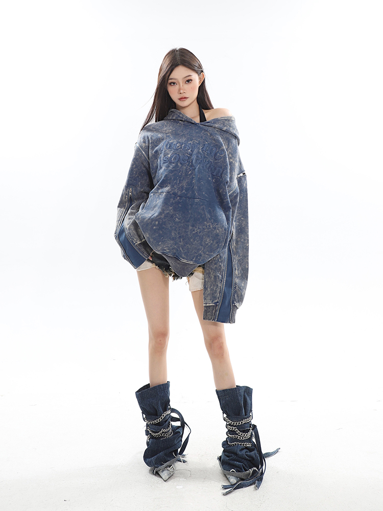 CCUP SAPCE 2023秋冬新款美式復古做舊上衣刺繡帽衫拉鍊連帽運動衫